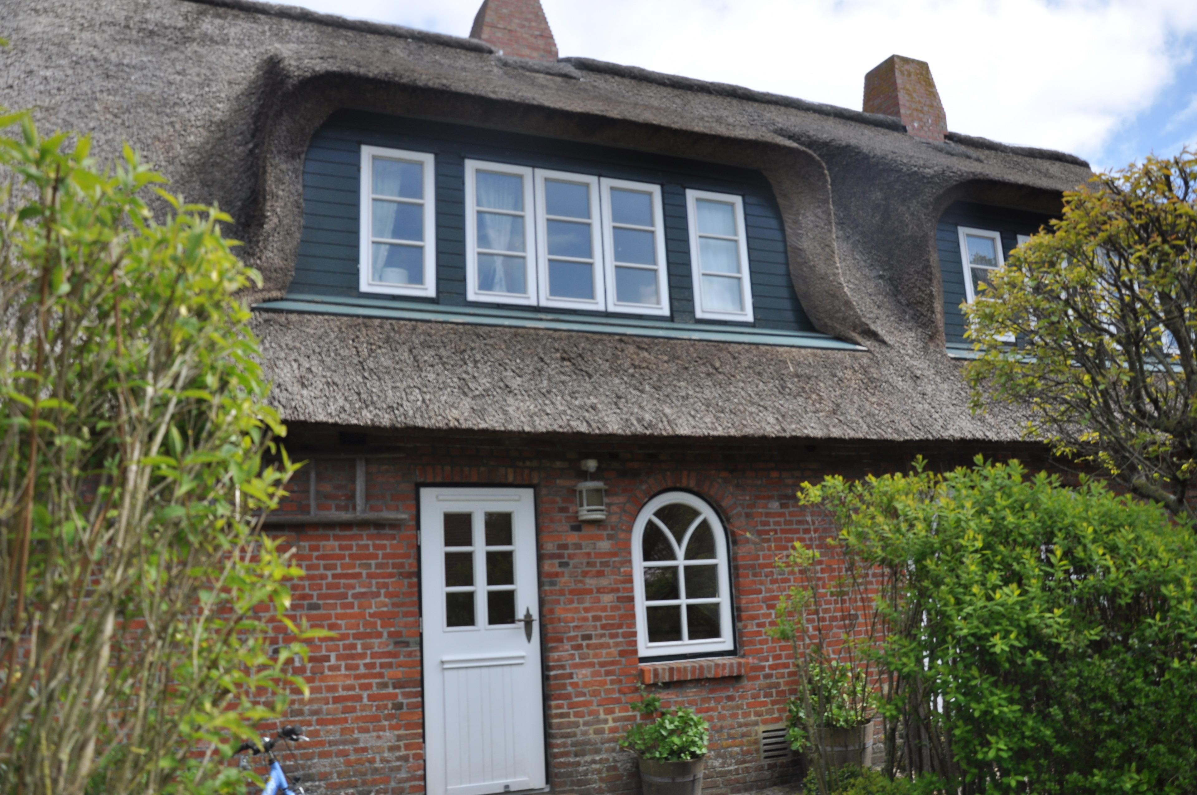 Das reetgedeckte Ferienhaus mit seinen 3 Wohnungen liegt im Ortsteil Toftum des Dorfes Oldsum. Oldsum ist ein schönes, kleines Künstlerdorf an der Marsch. Hier gibt es einen Supermarkt, diverse kleine Restaurants, gemütliche Cafes und verschiedene nette Läden. Toftum ist noch sehr dörflich geprägt und auch in der Hochsaison ist es hier ruhig und entspannt.