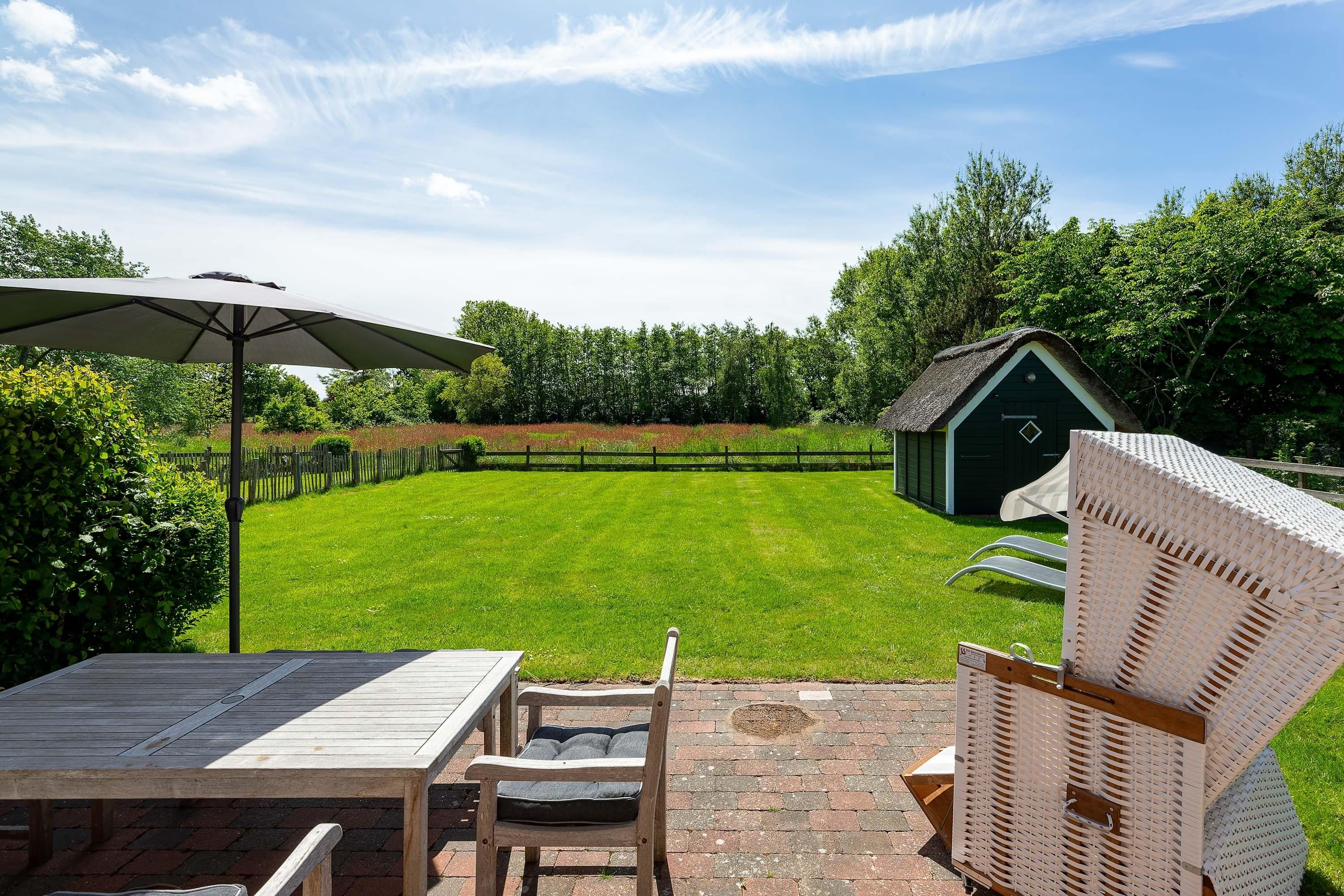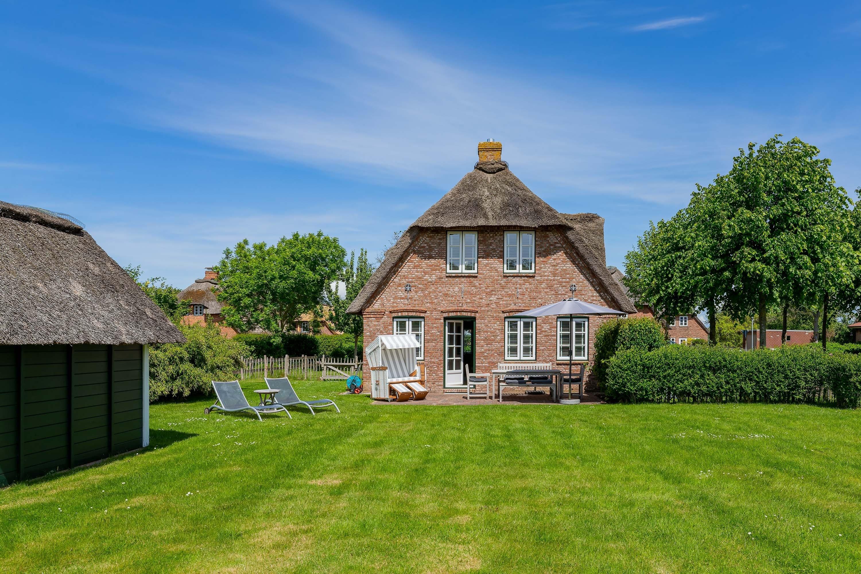 Herzlich willkommen in unserem neuem Feriendomizil in ländlicher Idylle von Oldsum. Das Friesenhaus ist mit viel Liebe im traditionellen inseltypischen Baustil direkt am gewachsenen Ortskern entstanden. Ein typischer Friesenwall, Linden und Obstbäume rahmen das Kleinod ein und lassen jede Hektik und Stress vergessen. Auch im Haus zeigt sich die alte friesische Bauweise mit Balkendecken, schönen Holzarbeiten und traditionellen Details, jedoch mit neuester Technik wie Fußbodenheizung und großzügiger, exklusiver Ausstattung. Genießen Sie den Aufenthalt in der 130 qm großen Fischer-Kate ebenerdig und unter dem gemütlichen Dach des Hauses mit bis zu 5 Personen. Nutzen Sie den großen, eingezäunten Sommergarten mit Blick in die herrliche Natur und auf das Reet gedeckte Friesendorf.