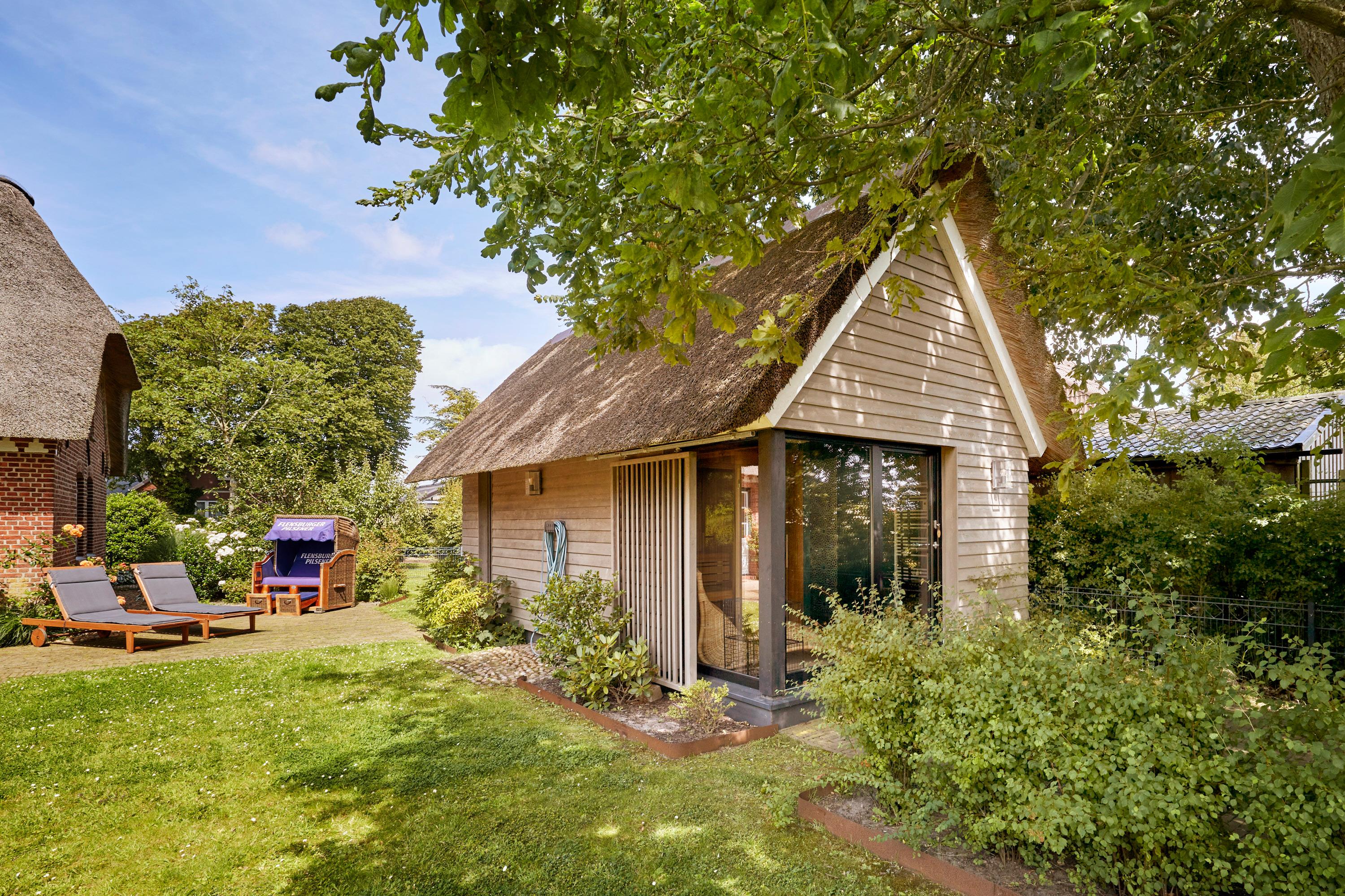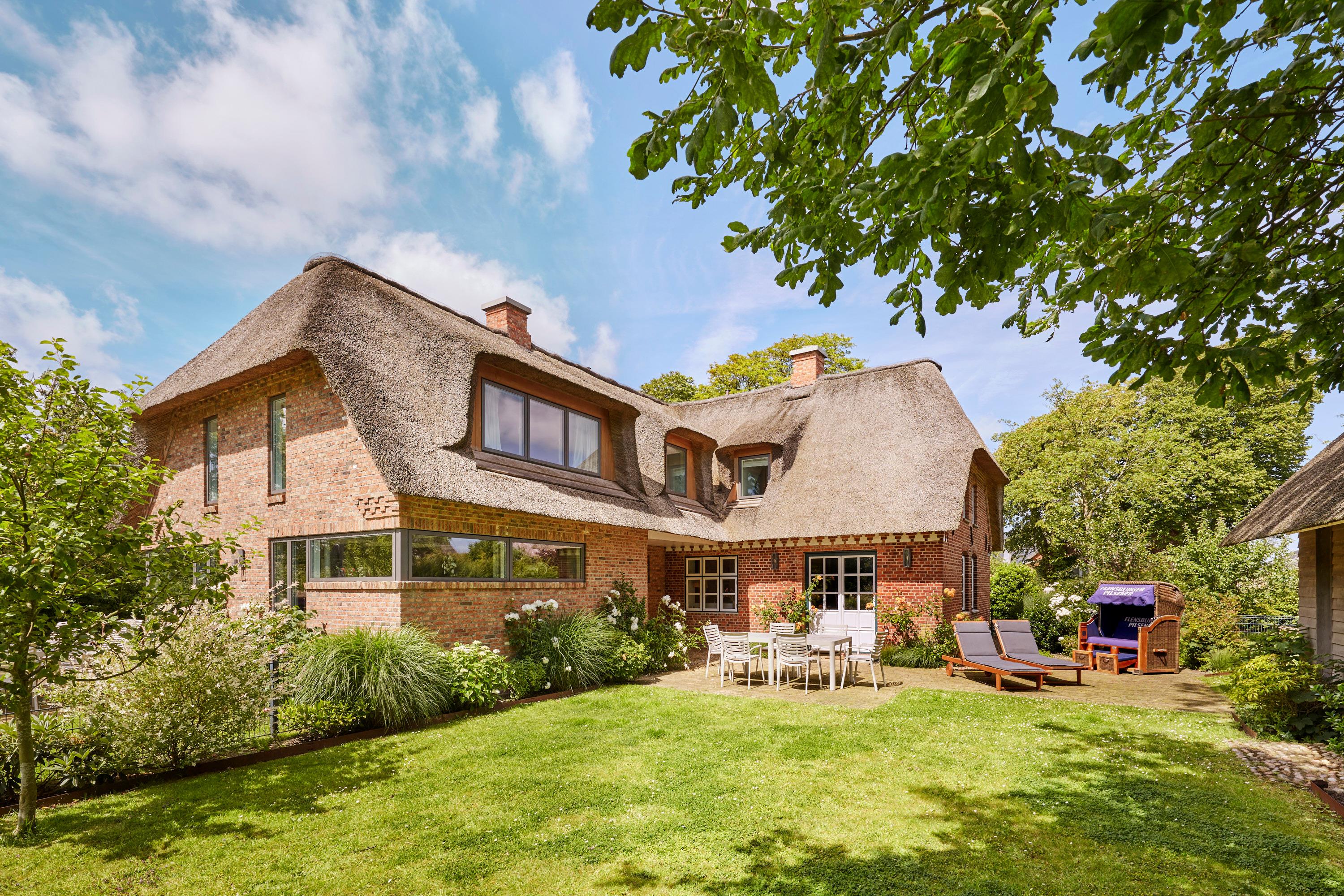 Verlieben Sie sich auf den ersten Blick in das über 100 Jahre alte friesische Bauernhaus „Maria Gardina 1903" mit dickem Reetdach. (Die Nachbarhälfte heißt "Maria Gardina 1530"). Dieses Kleinod liegt[nbsp] in wundervoller Lage mit traumhaftem Blick auf die freie Geestlandschaft und den sonnigen Bauerngarten. In der Atmosphäre eines großzügigen Privathauses mit Kunst, außergewöhnlicher Einrichtung und hochwertiger Haustechnik werden alle individuellen Wünsche nach Inspiration, Kreativität und Komfort erfüllt. Im Rahmen der denkmalgerechten Restaurierung wurde Wert auf den konsequenten Einsatz nachhaltiger und ökologischer Baustoffe gelegt. Die klare Abgrenzung von neu zu alt als spannender Kontrast zieht sich- immer wieder sichtbar- durch das Konzept des gesamten Objektes. Im besonderen Ambiente der exklusiven Außensauna mit Raindance- Dusche und marokkanischen Fliesen finden Sie Ruhe und Entspannung nach einem besonderen Urlaubstag auf Föhr. Der Wohn- und Essbereich bietet einmalige Blicke in den sonnigen Garten mit hochwertigen Outdoormöbeln.