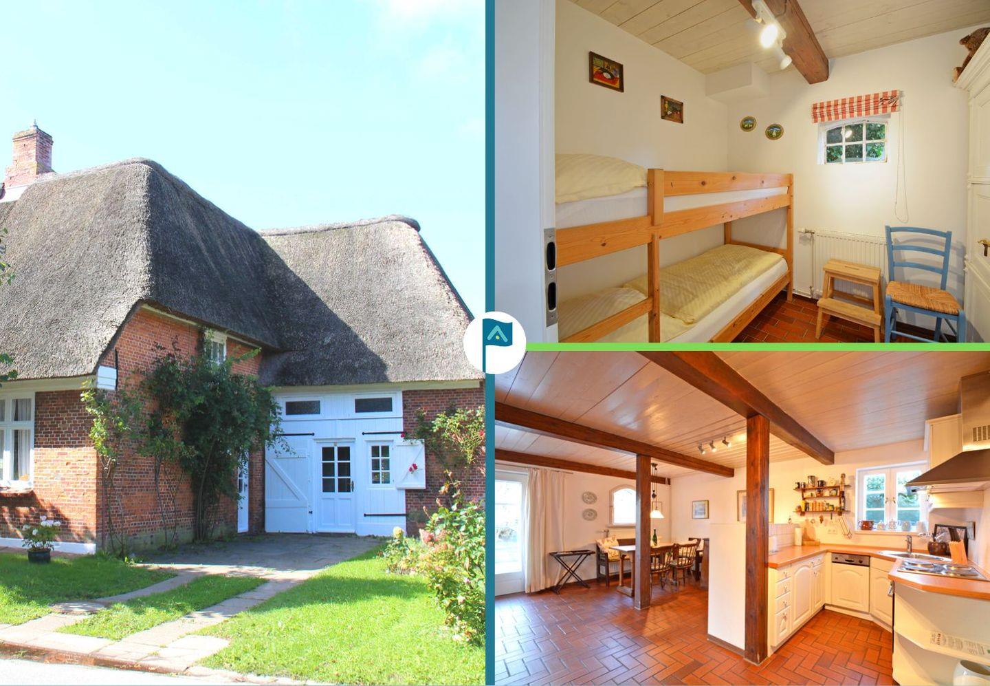 In diesem Reetdachhaus befinden sich zwei mit sehr viel Liebe zum Detail eingerichtete Ferienwohnungen.Oldsum war lange Zeit geprägt durch Seefahrt, Walfang und Landwirtschaft. Noch viele alte Reetdachhäuser aus dieser Zeit können sie in Oldsum bestaunen.Hier finden Sie und Ihre Familie Ruhe und Gemütlichkeit, um mal richtig auszuspannen. Man hört die friesische Sprache, sieht die alten Kapitänshäuser, sowie diereetgedeckten Bauernhöfe. Neben Kunst, Kultur und Handwerk verfügt Oldsum über einen Kaufmann, Bäcker, Restaurant und Café.