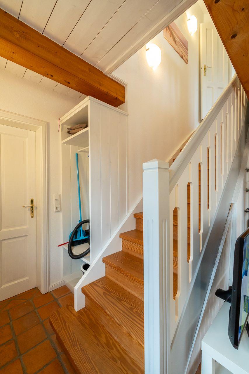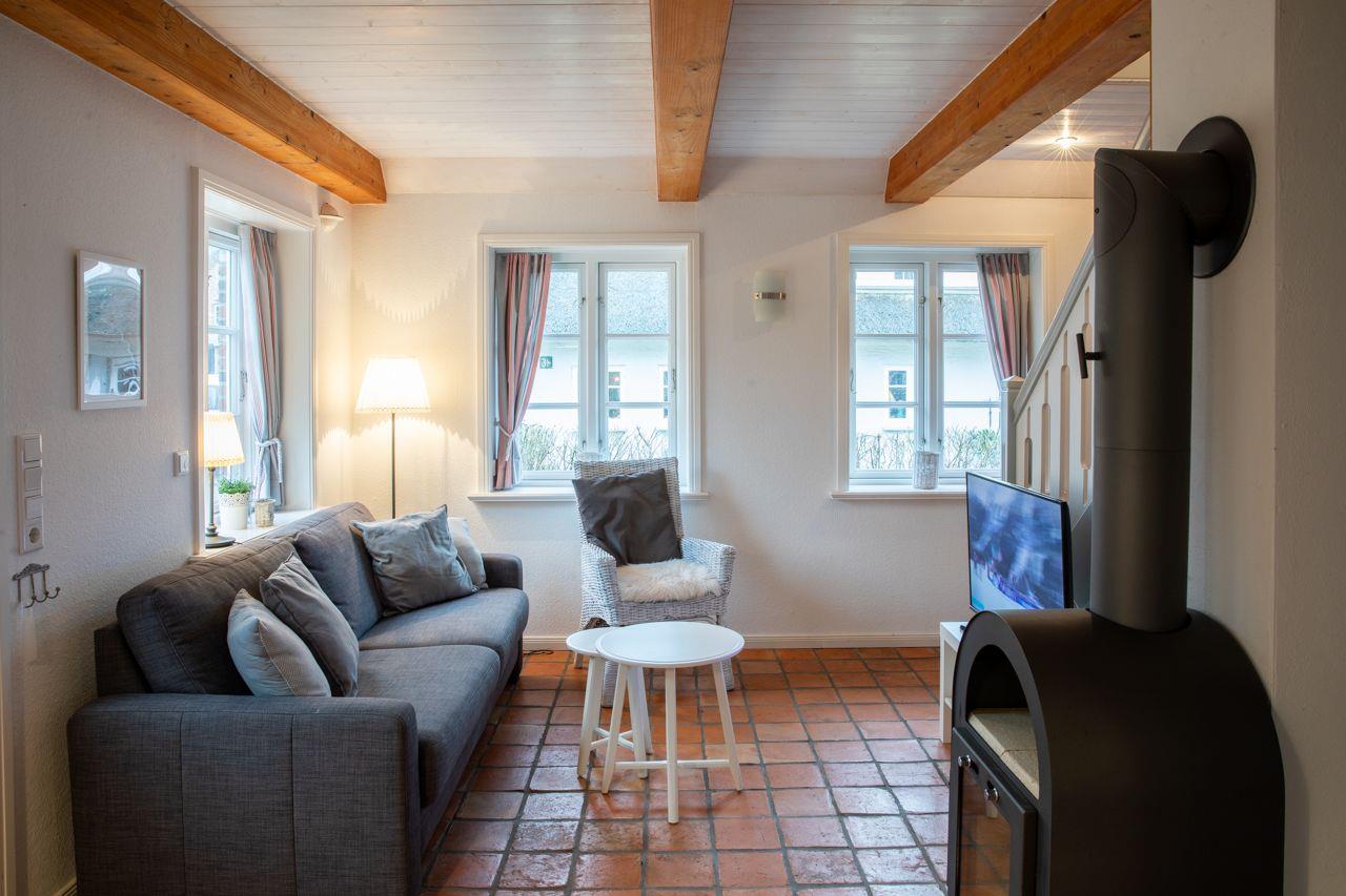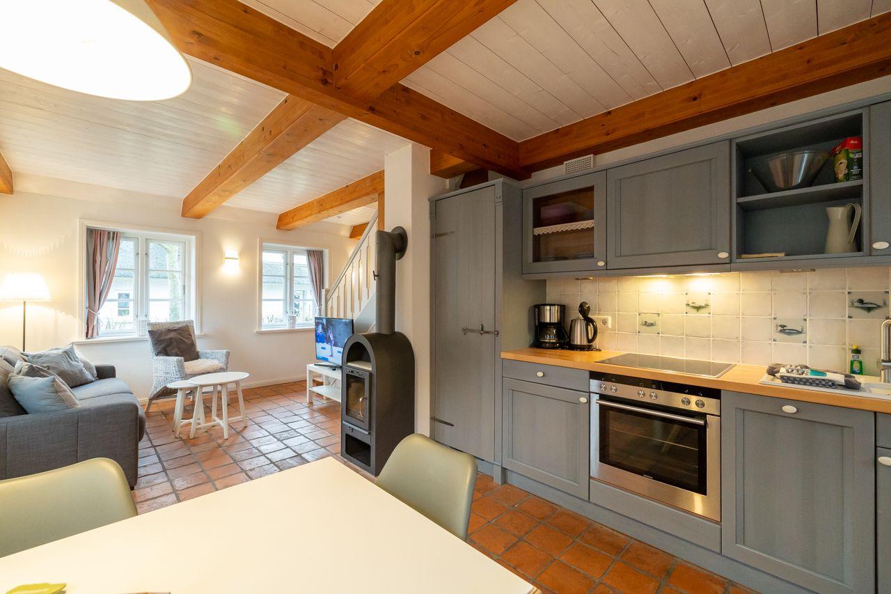 Im Künstlerdorf Oldsum erwartet Sie eine mit viel Liebe zum Detail eingerichtete Maisonettewohnung. Über einen separaten Eingang gelangen Sie in den Wohn-Essbereich, der die friesische Tradtion mit der Modernen perfekt verbindet. Selbstverständlich darf der große Flachbildfernseher nicht fehlen. An kühleren Tagen wird Sie der gemütliche Kamin wärmen. Über die breite Treppe gelangen Sie ins Obergeschoss, in dem sich das moderne Duschbad mit Fenster sowie das große Doppelbett (180x200) befindet. Abgerundet wird das Angebot mit einem kleinen Außensitz. Quasi direkt vor der Tür beginnen die Wander- und Radwege zum sportlichen Erkunden der Insel. Ein kleiner Hund ist ebenfalls herzlich Willkommen.