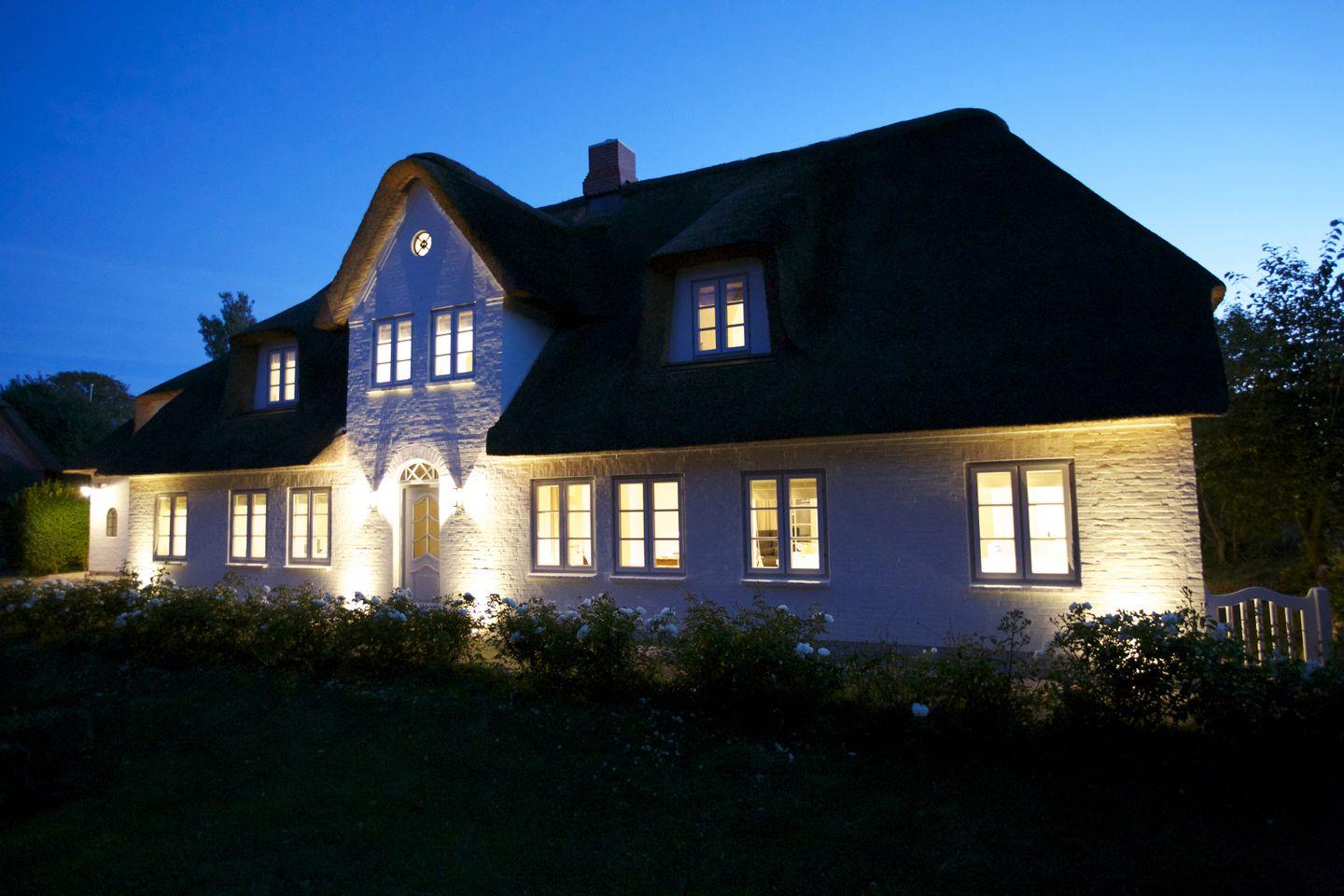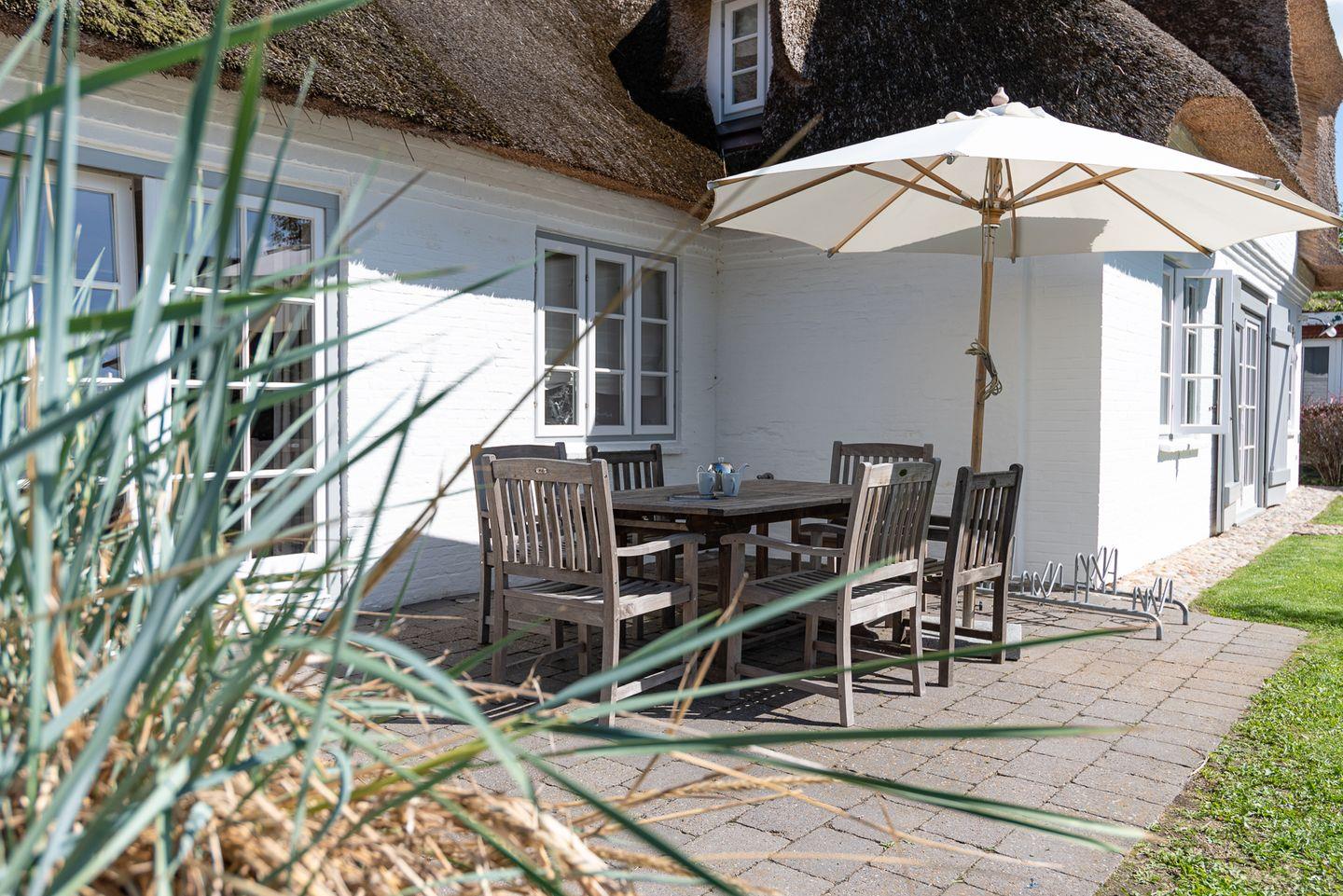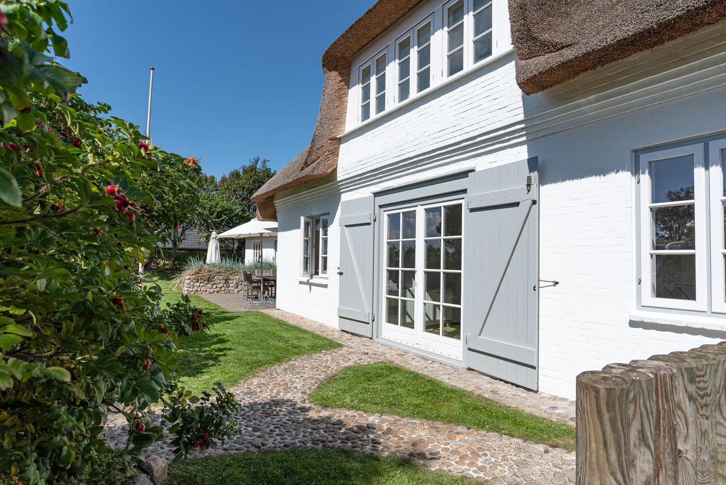 Die reetgedeckte Doppelhaushälfte Kapitänshaus Ost verfügt über 3 Schlafzimmer und 2 Bäder und bietet somit komfortabel Platz für bis zu 6 Personen zuzüglich einer Kleinkinderaufbettung. Auch bis zu 2 Hunde sind herzlich willkommen.