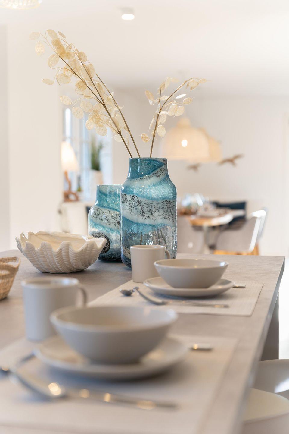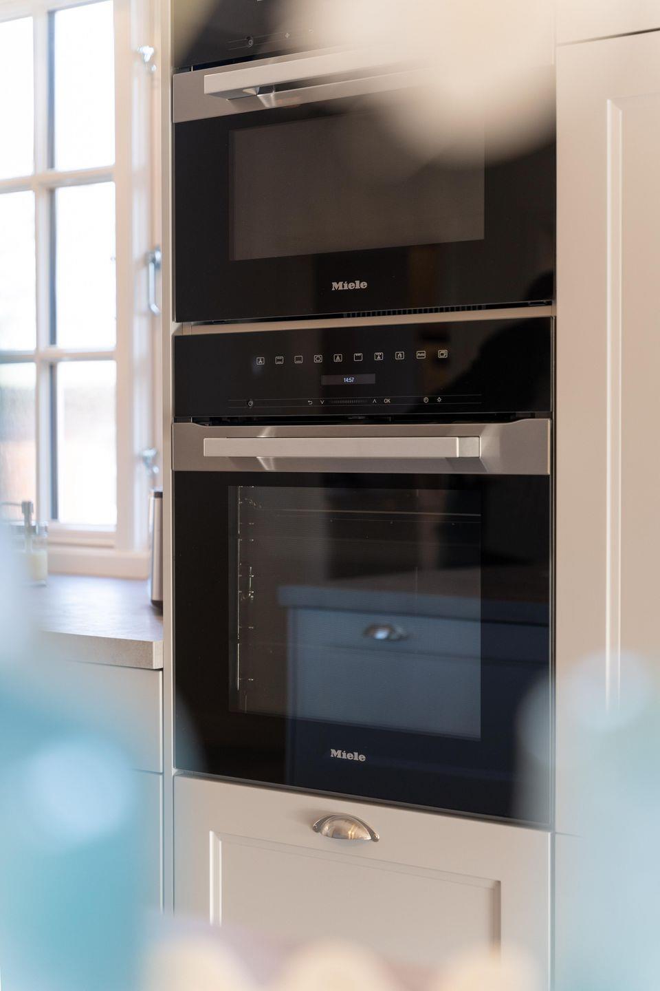 Im Erdgeschoss befinden sich der großzügige Wohn- und Essbereich mit offener Küche, ein Gäste-WC sowie ein Hauswirtschaftsraum mit Waschmaschine und Trockner. An kühleren Abenden sorgt der Original Mylin-Kachelofen für eine angenehme Atmosphäre.