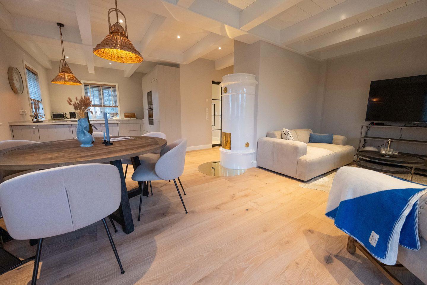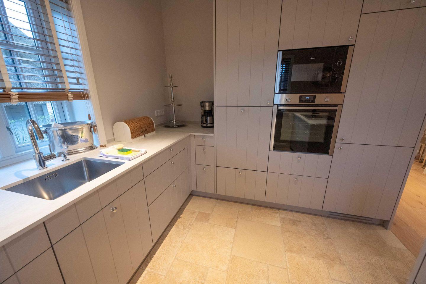 Exklusive Doppelhaushälfte unter Reet mit Original Mylin-Kachelofen und eigener Terrasse im Garten.