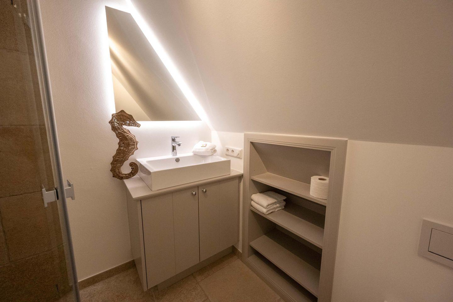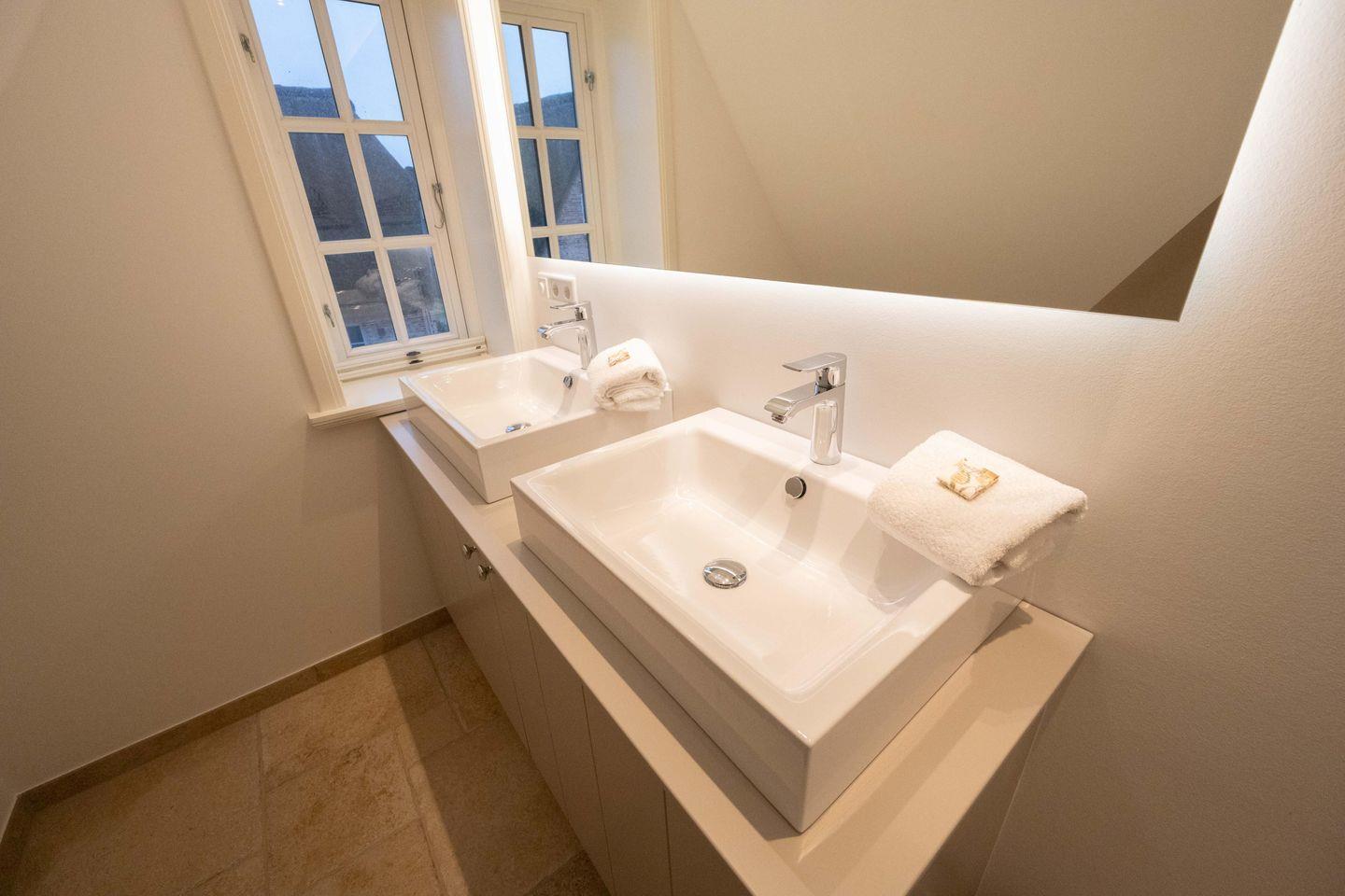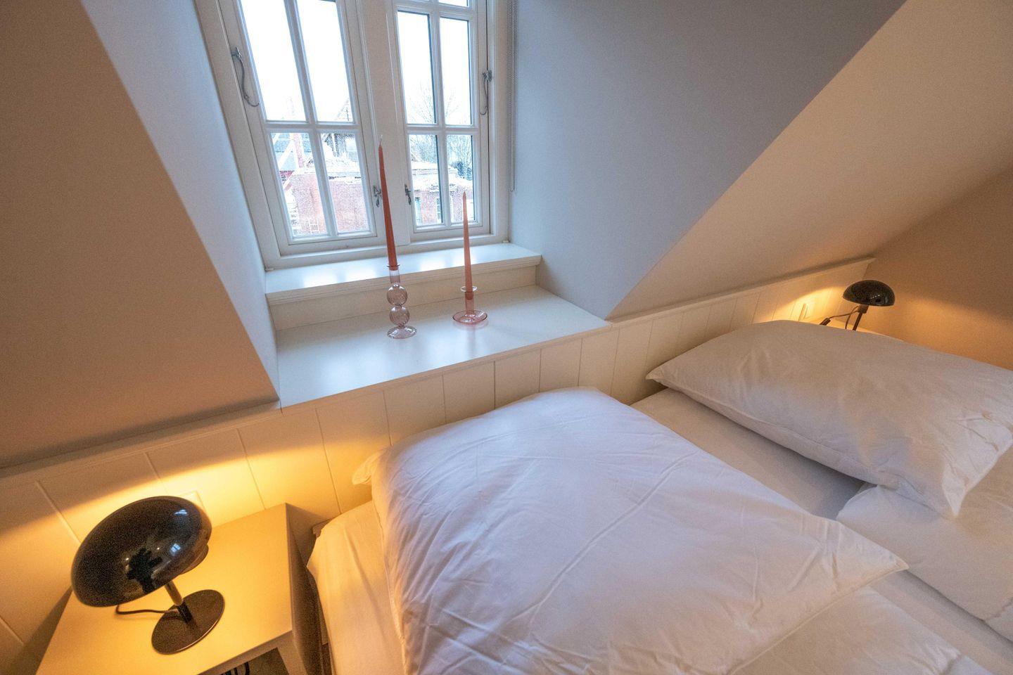 Im Obergeschoss sind die beiden Schlafzimmer - jeweils mit einem Doppelbett und einem Smart-TV ausgestattet - und die beiden Duschbäder gelegen. Im Dachgeschoss steht Ihnen ein weiteres Schlafzimmer mit Doppelbett zur Verfügung.
