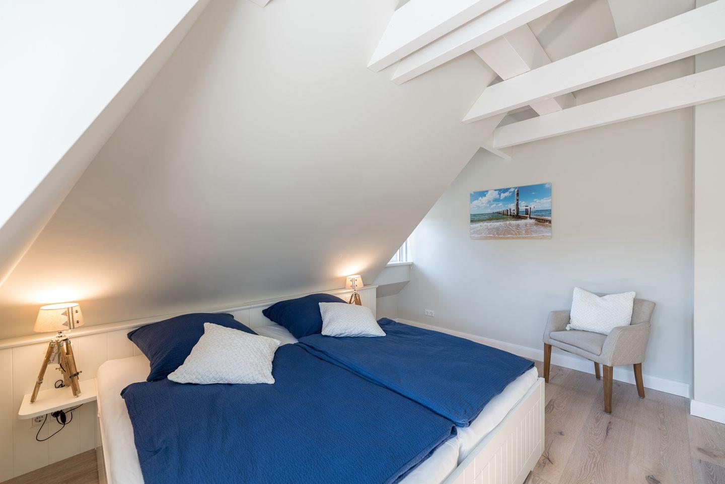 Im Obergeschoss sind zwei weitere Schlafzimmer - jeweils mit einem Doppelbett und einem Smart-TV ausgestattet - und das zweite Duschbad, ein Vollbad gelegen. Alle Bäder im Ferienhaus verfügen über eine Regen-Dusche.