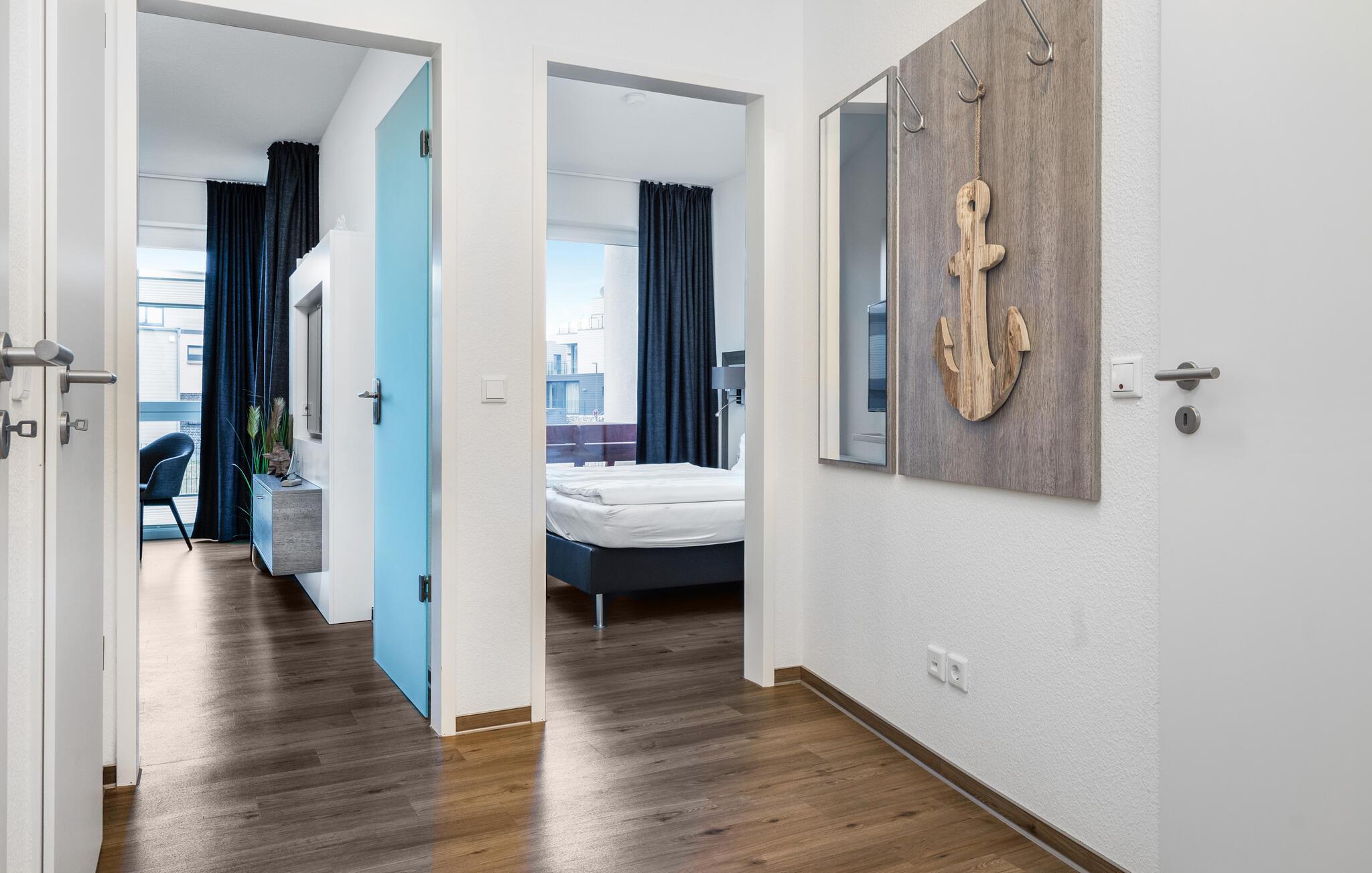 Slap af nær havet i denne komfortable ferielejlighed med adgang til indendørspool og sauna. Læg hverdagen bag jer og nyd en afslappende ferie i denne moderne lejlighed, der byder gæster velkommen i en fantastisk beliggenhed ved vandet. Hyg jer sammen i den stilfulde atmosfære, lad blikket vandre over vandet, og glæd jer til hyggelige aftener med fælles måltider, afslapning i saunaen (delt med andre gæster) og gode samtaler. Tilbring dejlige timer udenfor på terrassen, det ideelle sted at nyde en lækker grillmad om aftenen. Slentr langs havnen, se sejlbådene og lad jer inspirere af den maritime atmosfære. Tag en cykeltur gennem det charmerende landskab i Slien og indånd den friske Østersøluft. Besøg den nærliggende by Kappeln, slentr gennem den charmerende gamle bydel, kig i små butikker og prøv friskfanget fisk i en af de hyggelige restauranter ved havnen. Slap af på de vidtstrakte sandstrande, byg sandslotte med børnene eller dyk ned i Østersøens klare vand.