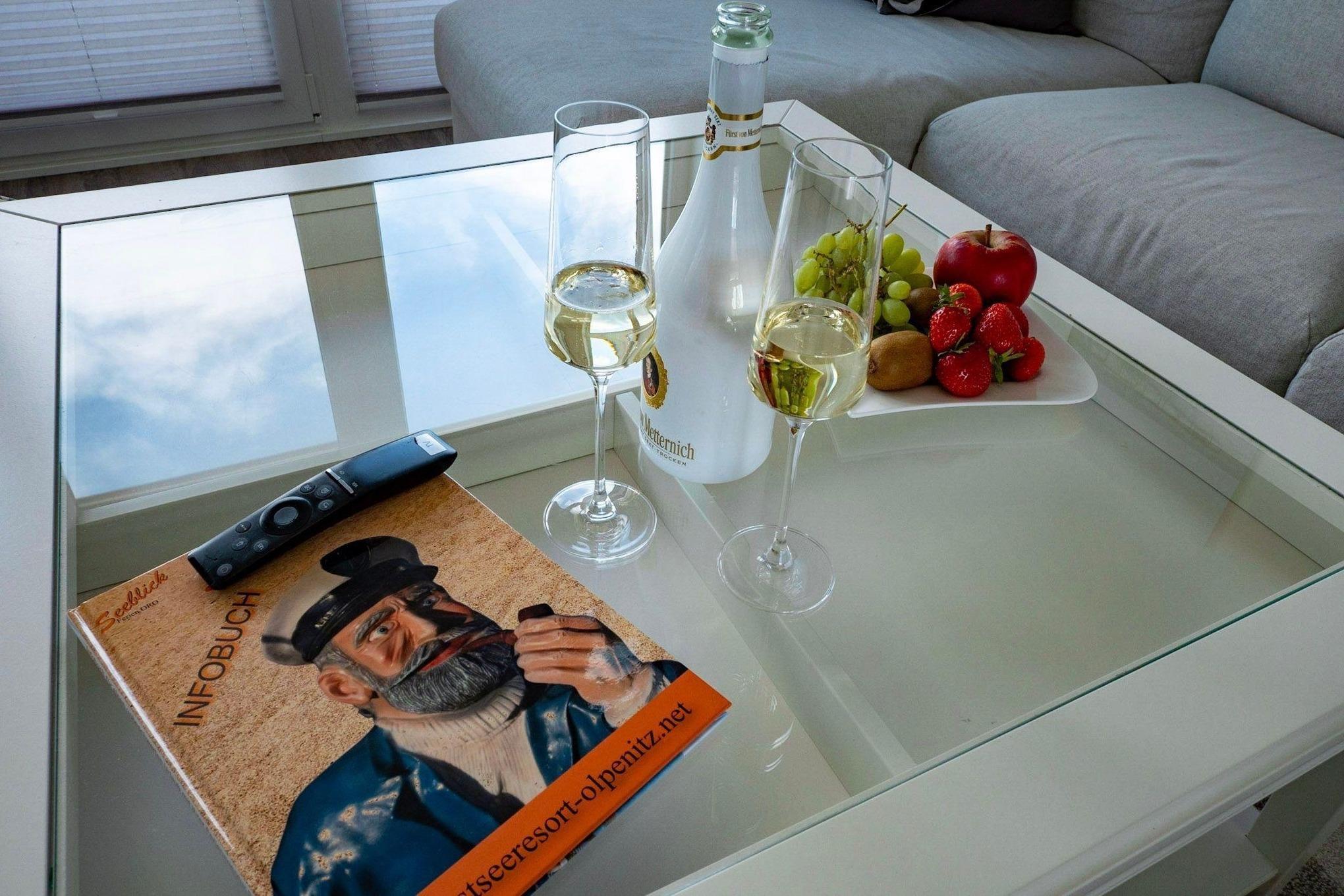 Die gesamte Ferienwohnung lässt sich über die Fußbodenheizung einfach temperieren und bietet dank des Kaminofens und der Sauna das ganze Jahr über eine angenehme Wärme und eine gemütlich-wohlige Atmosphäre. Für Unterhaltung sorgen im Wohnbereich ein 55 Zoll Smart TV mit Bluetooth und Samsung Soundbar, eine Playstation, Blu-ray-Player, ein separates Internet Radio sowie eine Spielesammlung.