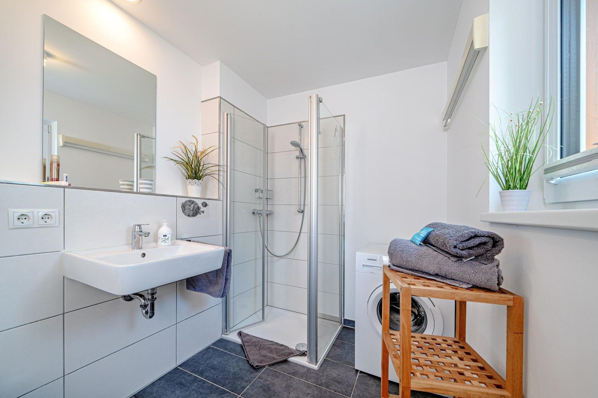 Das Ferienhaus bietet Ihnen den Luxus von zwei Badezimmern, jeweils auf einer Wohnebene. Entspannen Sie in der Infrarot-Sauna oder der großzügigen Badewanne mit Whirlpoolfunktionen und genießen Sie dabei den Blick auf das Wasser im ersten Obergeschoss.