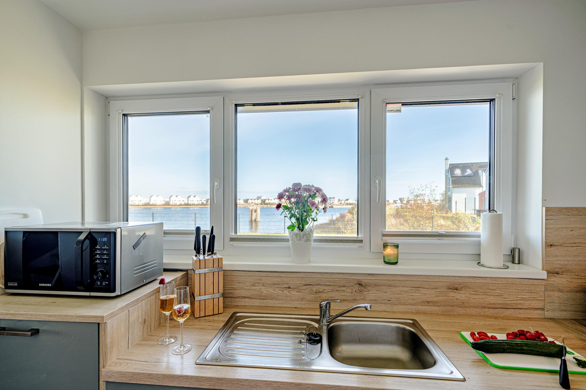 Das Ferienhaus Am MEER verfügt über eine Terrasse vor und hinter dem Haus. Von hier aus können Sie das "Hafenkino" mit vorbeifahrenden Segel- und Sportbooten hautnah erleben. Die eigene riesige exklusive Rasenfläche direkt am Haus lädt zum Verweilen und Spielen ein - der perfekte Ort für erholsame Stunden im Freien.