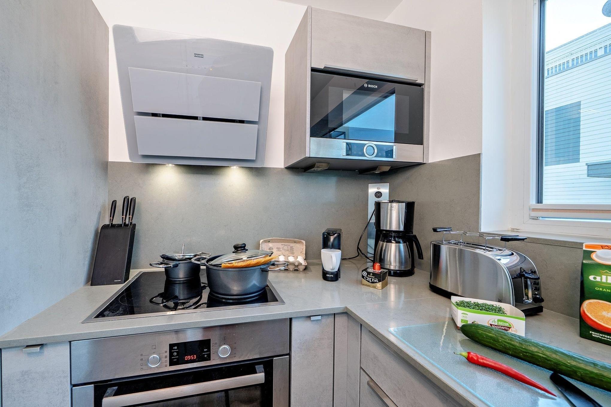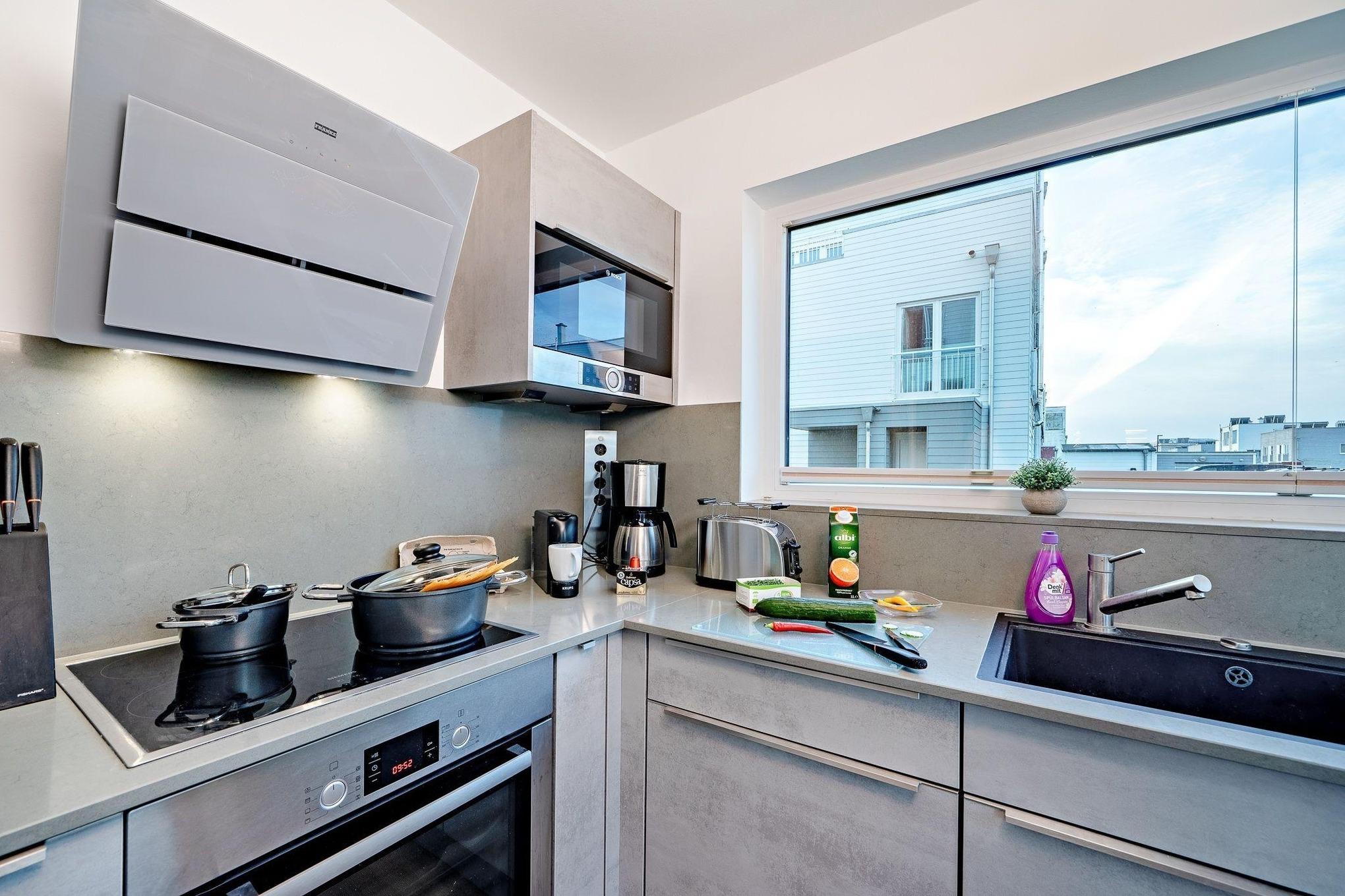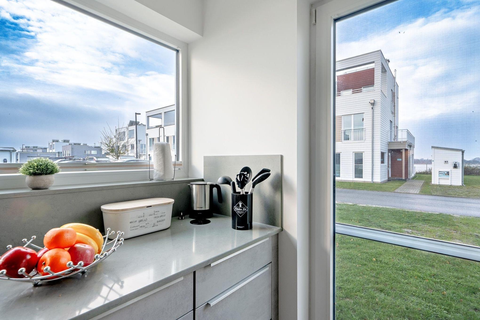 Die Schleivilla Ahoi by Seeblick Ferien ORO bietet auf 146 m² großzügigen Platz für bis zu sechs Personen. Der offene Wohn- und Essbereich ist mit einem gemütlichen Kaminofen, einem 75 Zoll Fernseher sowie einer Nintendo Wii U und LEGO ausgestattet. Die moderne Einbauküche lädt zum Kochen ein, während ein Gäste-WC mit Waschmaschine den Aufenthalt erleichtert. Im ersten Obergeschoss befinden sich zwei helle Schlafzimmer und ein größeres Badezimmer mit Badewanne und Dusche. Das Masterbedroom im zweiten Obergeschoss verfügt über ein Boxspringbett, einen Fernseher und ein modernes Duschbad mit bodengleicher Dusche. Eine finnische Sauna sorgt für Entspannung nach einem Tag am Strand. Bettwäsche und Handtücher können gegen Gebühr dazugebucht werden. Haustiere sind nicht erlaubt, was die Unterkunft besonders für Allergiker attraktiv macht.