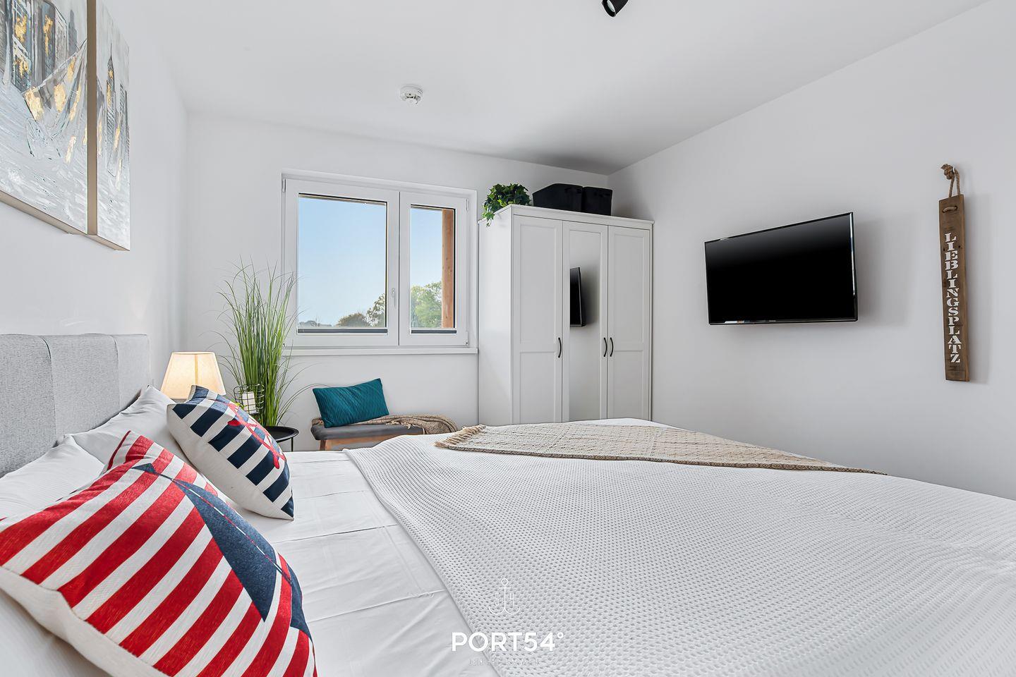 Willkommen in der faszinierenden Welt der "Hafenmelodie" – einer exklusiven Ferienwohnung, die nur wenige Meter vom Wasser entfernt liegt und auf großzügigen 53m² einen atemberaubenden Blick auf den Hafen und die Schlei bietet. Der loftartige Wohn- und Essbereich der "Hafenmelodie" beeindruckt mit bodentiefen Fenstern, die den Raum in helles Tageslicht tauchen und eine freundliche Atmosphäre schaffen. Dieser einladende Bereich lädt zu jeder Tageszeit zum Verweilen ein, sei es bei einem gemütlichen Frühstück am Morgen oder einem entspannten Abendessen mit Blick auf den malerischen Hafen. Die offene Küche ist nicht nur vollständig ausgestattet, sondern auch der perfekte Ort für gemeinsame Kochabenteuer. Das Schlafzimmer ist mit einem hochwertigen Doppelbett (180x200cm) ausgestattet, um Ihnen erholsame Nächte in stilvollem Ambiente zu bieten. Für eine weitere Person steht im Wohnzimmer ein gemütliches Schlafsofa bereit, das zum Träumen und Entspannen einlädt. Das geräumige Badezimmer begeistert mit einer großen ebenerdigen Dusche, die Ihnen ein Gefühl von Luxus und Komfort vermittelt. Der Balkon, ein weiteres Highlight der Wohnung, bietet einen herrlichen Ausblick und lädt dazu ein, den Tag bei einem Glas Wein oder einem erfrischenden Getränk ausklingen zu lassen.