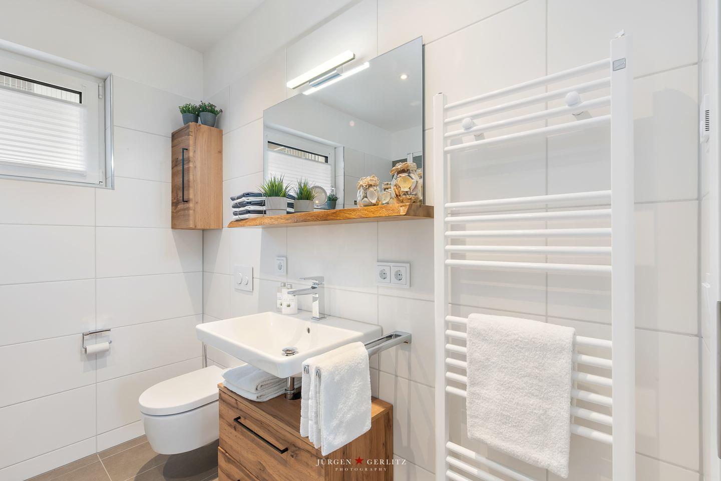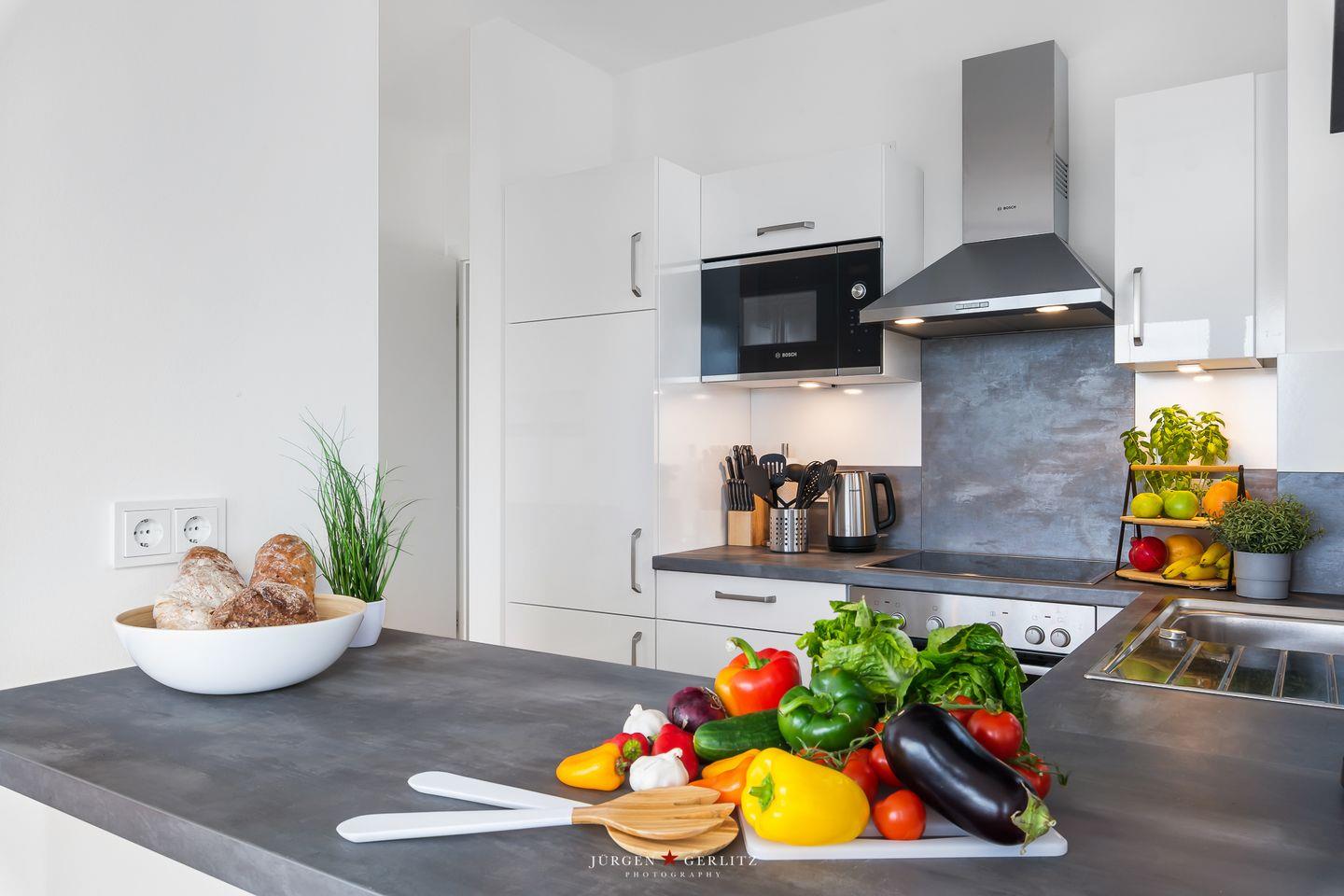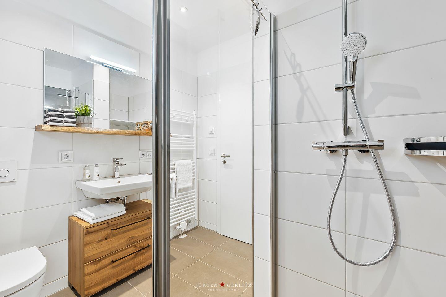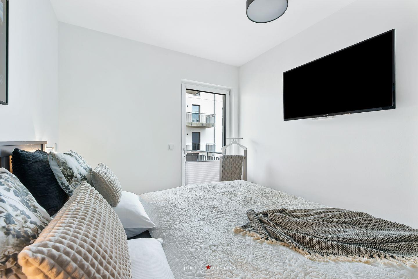Tauchen Sie ein in das einzigartige Urlaubsfeeling der Ferienwohnung "Ocean's 16", die auf großzügigen 78m² pure Erholung verspricht. Das gesamte Apartment ist barrierearm gestaltet und mit hochwertigem Echtholz-Parkett ausgestattet, das eine warme und gemütliche Atmosphäre schafft. Der offene Wohn-/Essbereich ist nicht nur modern, sondern dank bodentiefer Fenster auch lichtdurchflutet und bietet Zugang zu gleich zwei Balkonen. Hier können Sie entspannte Momente genießen und die frische Meeresbrise auf sich wirken lassen. Ein weiteres Highlight in diesem Bereich ist der einladende Kamin, der für gemütliche Abende sorgt, perfekt zum Zurücklehnen und Entspannen. Die hochwertige Küche ist mit allem ausgestattet, was das Herz begehrt, um gemeinsam mit Ihren Liebsten leckere Gerichte zu zaubern. Das Apartment beherbergt zwei moderne Schlafzimmer: In einem erwartet Sie ein komfortables Doppelbett, im anderen zwei Einzelbetten, die bei Bedarf zu einem weiteren Doppelbett arrangiert werden können. Beide Schlafzimmer sind mit Plissees ausgestattet. Das moderne Badezimmer beeindruckt mit einer großzügigen, ebenerdigen Dusche, die den Morgen erfrischend starten lässt. Eine Waschmaschine steht ebenfalls zur Verfügung, sodass auch längeren Aufenthalten nichts im Wege steht. Und das Beste: Auch Ihr Vierbeiner ist hier herzlich willkommen! Das absolute Highlight des Apartments sind zweifellos die beiden Balkone, von denen aus Sie eine atemberaubende Aussicht auf das Wasser, die Kapitänsinsel und den Hafen genießen können. Hier erleben Sie Sonnenaufgänge und -untergänge in einer Kulisse, die Ihre Sinne verzaubern wird.