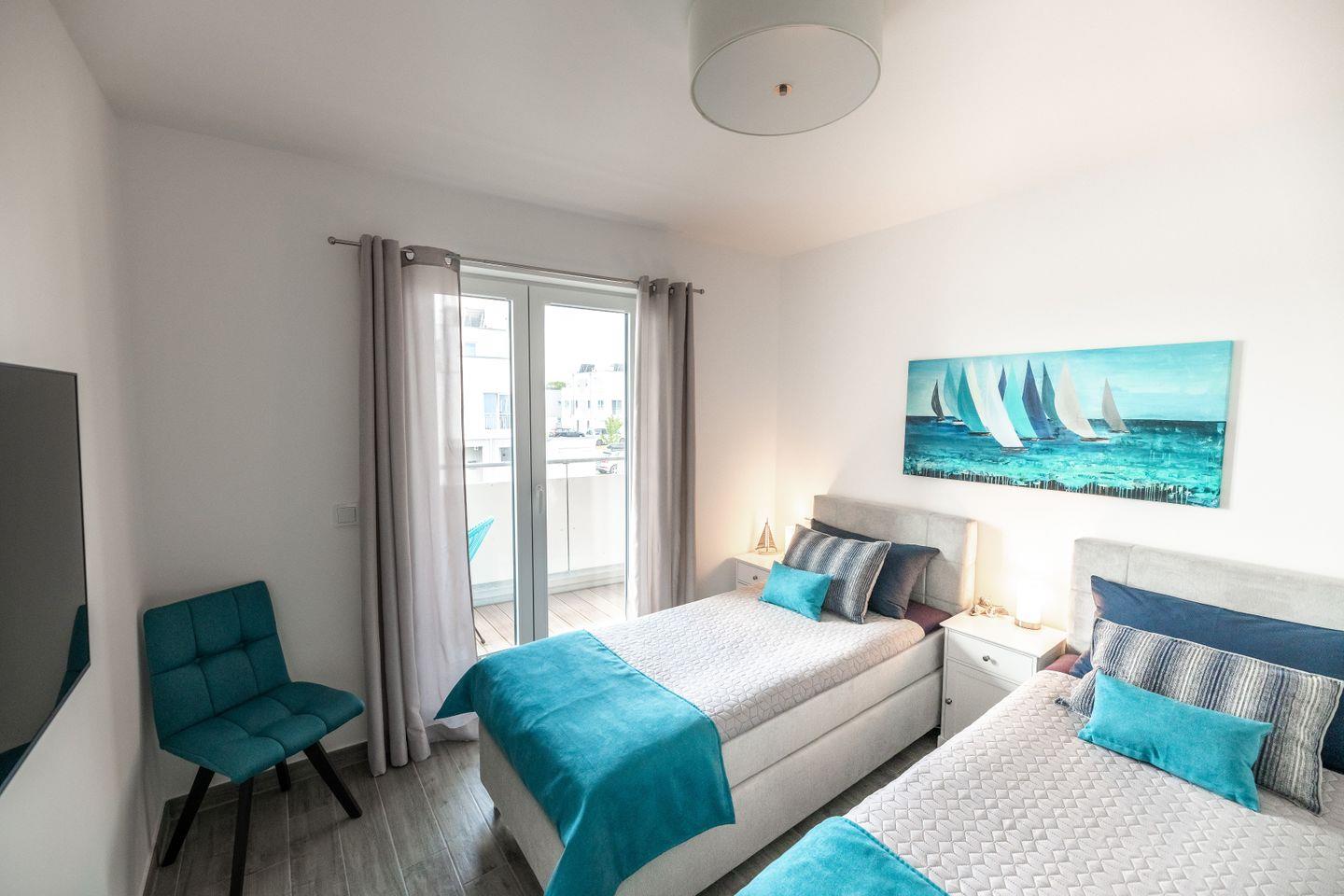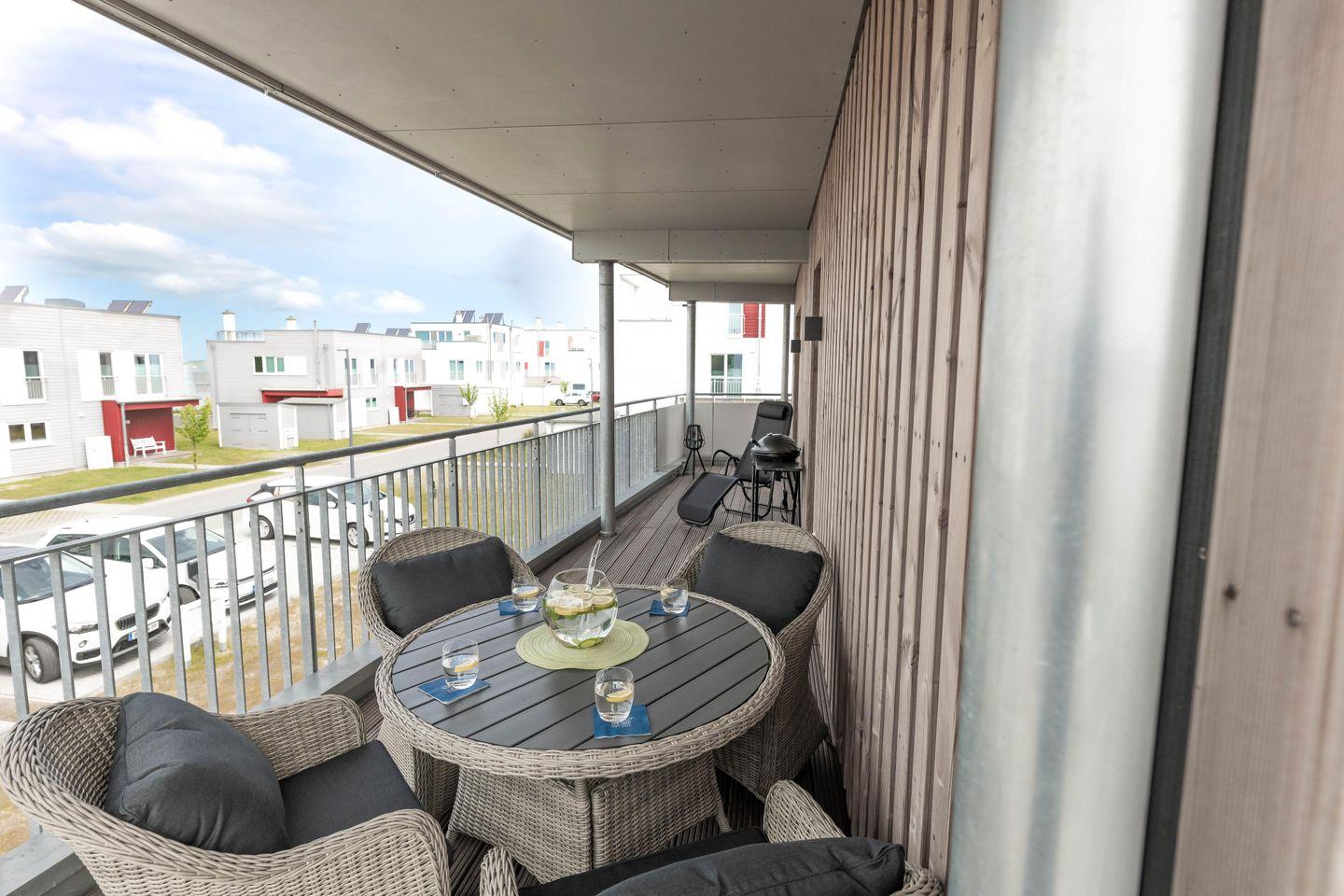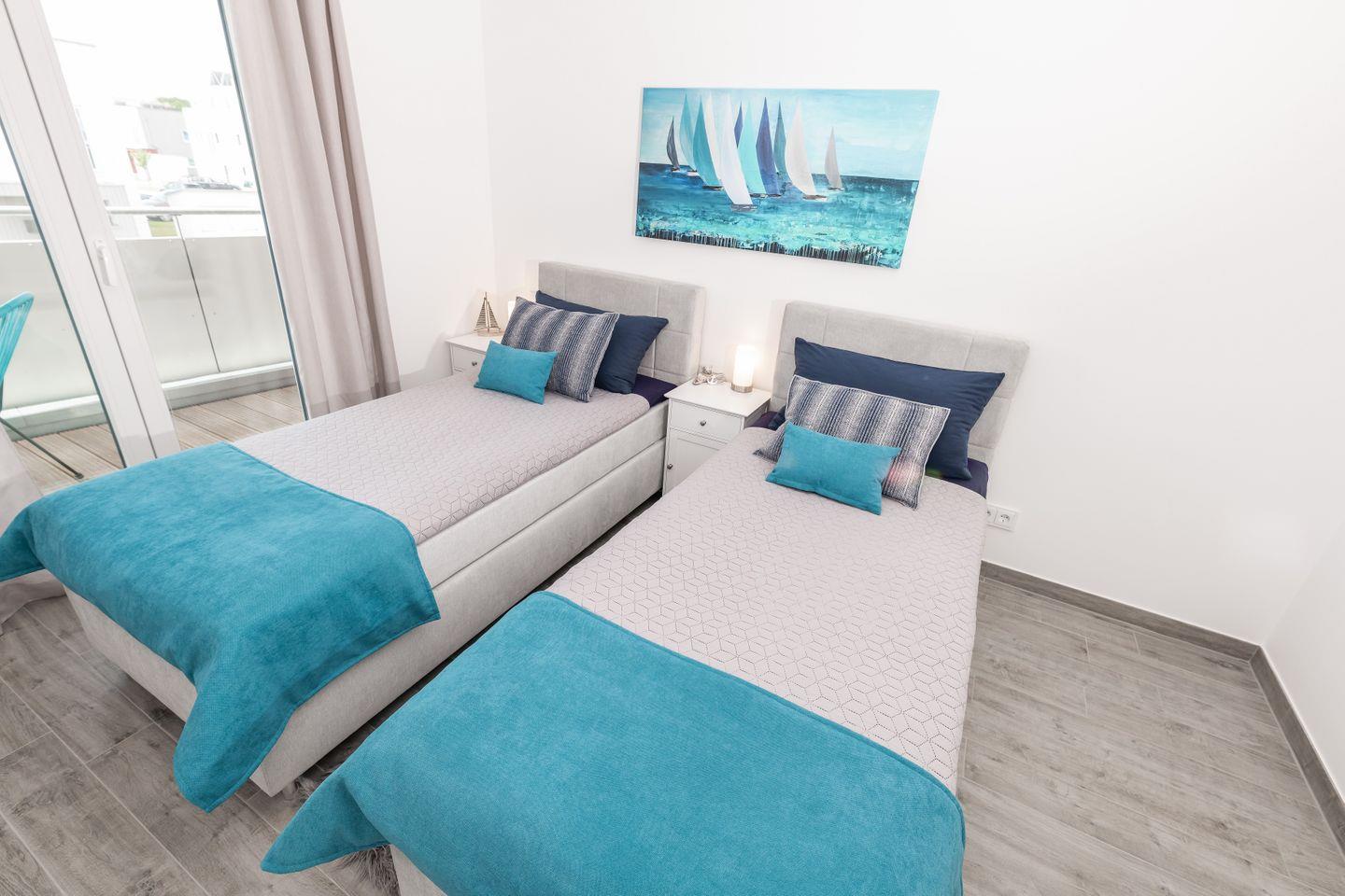 Herzlich Willkommen in der exquisiten Ferienwohnung "Katamaran''! Auf 98m² können Sie Ihren Urlaub mit bis zu 4 Personen genießen. Verbringen Sie Ihren Urlaub in 1a-Lage bei uns im OsteseeResort Olpenitz. Der offene Wohn- & Essbereich mit integrierter Küche bietet dank der bodentiefen Panoramafenster viel Helligkeit und lädt zum Verweilen ein. Von hier haben Sie einen direkten Zugang zum möblierten Balkon. Lehnen Sie sich zurück, genießen den Ausblick und die frische Ostseeluft. Die gesamte Einrichtung ist stilvoll und hochwertig. Die Wohnküche bietet Ihnen alles, um gemeinsam zu kochen oder aber um in gemütlicher Runde am Esstisch einen Spieleabend zu veranstalten. An regnerischen Tagen können Sie es sich vor dem Kamin gemütlich machen. Das Hauptschlafzimmer verfügt über ein Boxspringbett, das zweite Schlafzimmer ist mit zwei Einzelbetten ausgestattet. Beide Schlafzimmer sind hochwertig und geschmackvoll eingerichtet und verfügen über einen Flachbild-TV und Verdunkelungsmöglichkeiten. Erholsamer Schlaf ist hier garantiert und wer wird nicht gerne mit Meerblick wach? Das große Duschbad bietet eine ebenerdige Dusche, sowie eine Infrarot-Sauna. So können Sie nach einem langen Spaziergang an einem kälteren Tag perfekt entspannen und einfach mal die Seele baumeln lassen. Unser Lieblingsplatz ist der Balkon im "Katamaran'' - hier können Sie dank des Elektrogrills im Sommer wunderbare Grillabende verbringen. Ihren PKW können Sie direkt vor der Unterkunft parken.