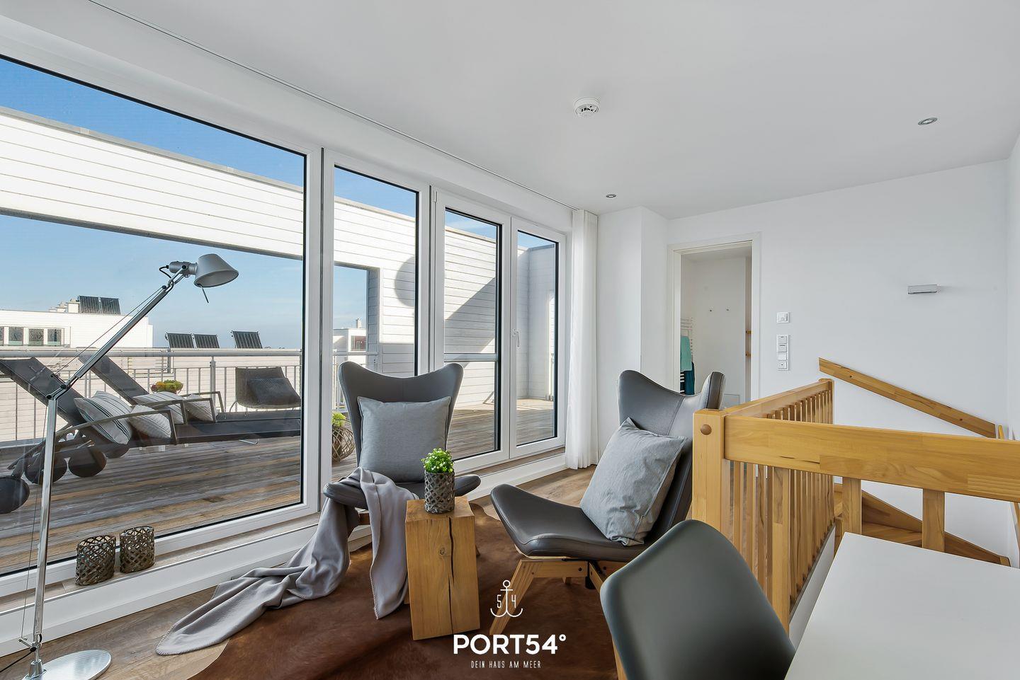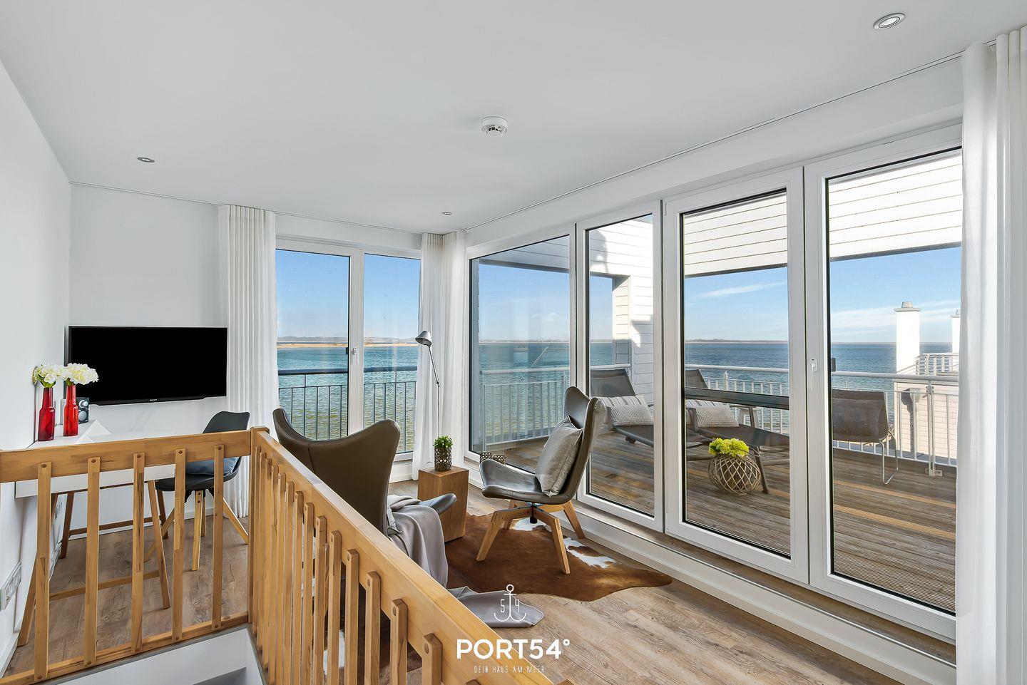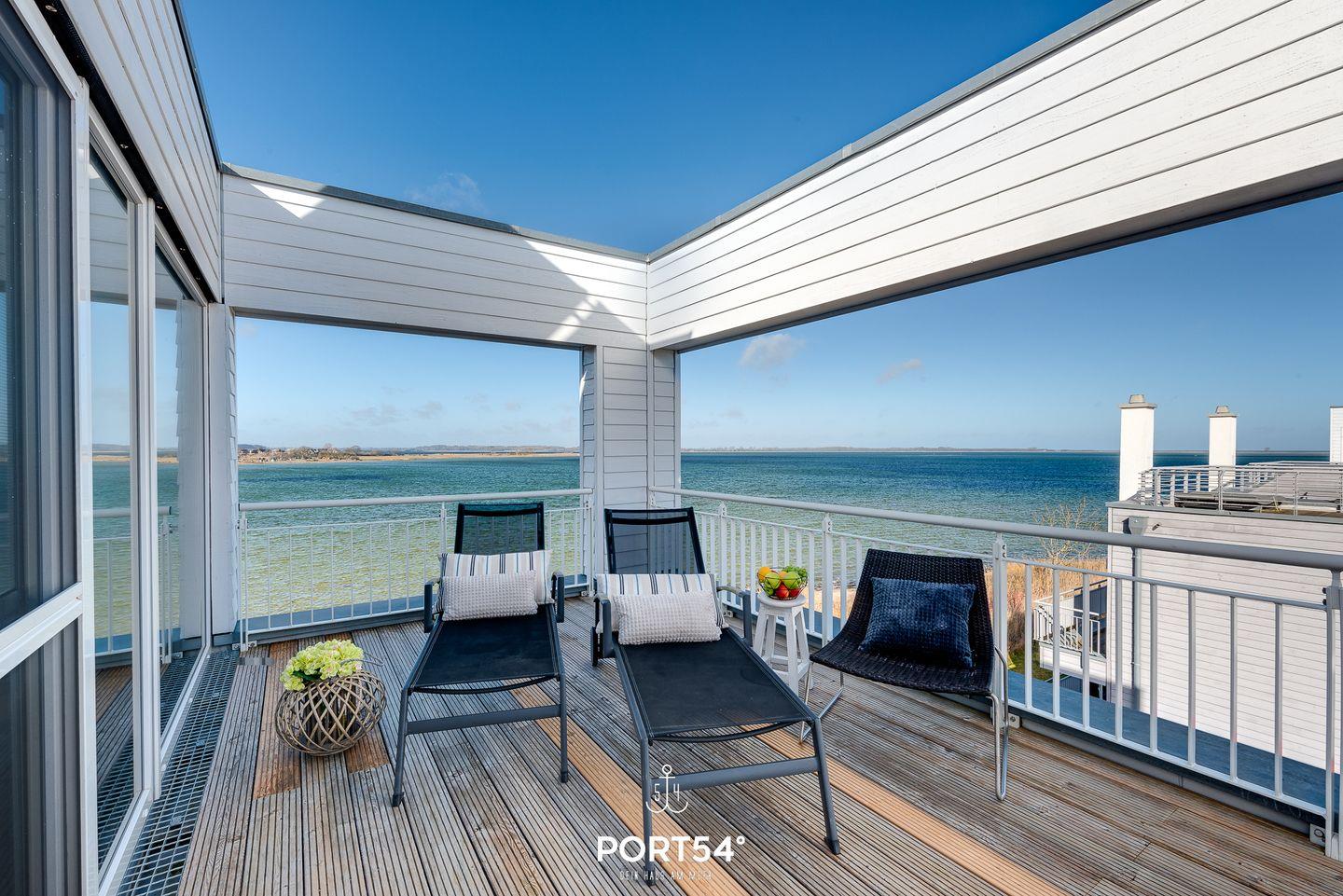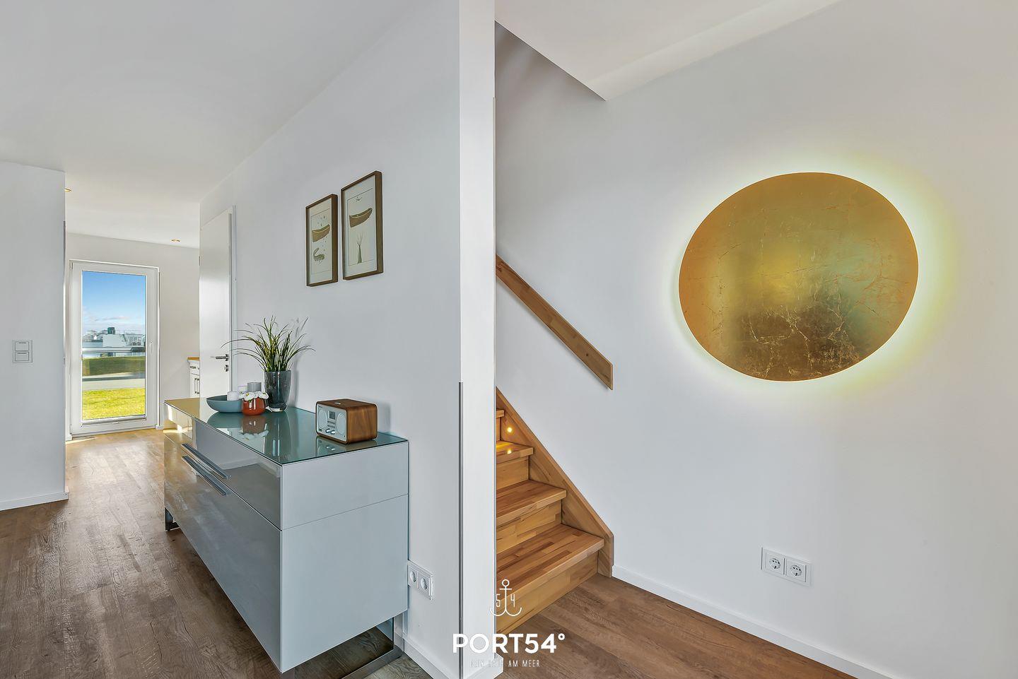 Das stilvoll und modern eingerichtete Ferienhaus "Lütthoorn" bietet auf ca. 128m² viel Platz für Ihren Ostsee-Traumurlaub. "Lütthoorn" liegt auf der Westmole des Ostseeresorts Olpenitz, direkt an der Schlei mit Blick auf den Hafen und die Ostsee. Die gesamte Einrichtung ist in modernen Naturtönen gehalten. Durch die maritimen Werke des Künstlers Detlef Kellermann bietet das Haus Kunst und Urlaub auf hohem Niveau. Über den Eingangsbereich gelangen Sie in den großzügigen Wohn-/Essbereich. Die bodentiefen Fenster bieten Ihnen einen hervorragenden Blick auf die Schlei. Auf der Terrasse können Sie bei dieser traumhaften Aussicht Ihren Kaffee genießen. Der Kamin lädt zu gemütlichen Stunden ein. In der vollausgestatteten und modernen Küche kann nach Lust & Laune gekocht werden. Das Gäste-WC rundet das Raumangebot im Erdgeschoss ab. Im ersten Obergeschoss finden Sie zwei Schlafzimmer mit Blick auf die Marina des Resorts oder mit Blick auf die Schlei. Hier können Sie Ruhe vom Tag finden und angenehm träumen. Das Bad hat eine sehr geräumige Raindance-Dusche, die zur Entspannung beiträgt. Das absolute Highlight wartet im zweiten Obergeschoss auf Sie - dort befindet sich eine finnische Sauna mit angrenzender Dusche. Das Studio lädt zum Verweilen ein und von der atemberaubenden Dachterrasse haben Sie einen weitläufigen Blick auf die Schlei und Ostsee. Vor dem Haus sind zwei Stellplätze und ein Fahrradschuppen.
