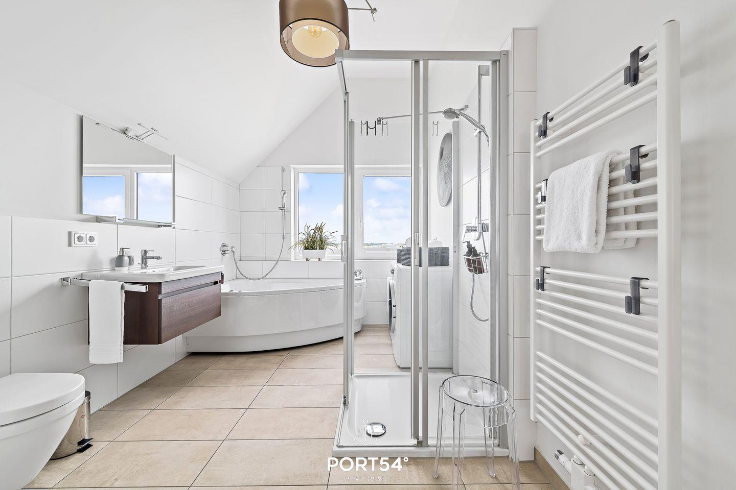 Die exklusive, allergikerfreundliche Nichtraucher-Ferienwohnung "Meerhaus 18" bietet Ihnen auf zwei Etagen 2 Schlafzimmer, einen Wohn-/Essbereich, eine vollausgestattete Küchenzeile, zwei Badezimmer und eine Terrasse. Das Badezimmer bietet eine Infrarot-Sauna und eine Eck-Whirlwanne. Die Terrasse bietet einen wunderschönen Blick auf das Wasser und lädt zu schönen Sonnenstunden ein. Ein Stellplatz und ein abschließbarer Fahrradschuppen sind vorhanden.
