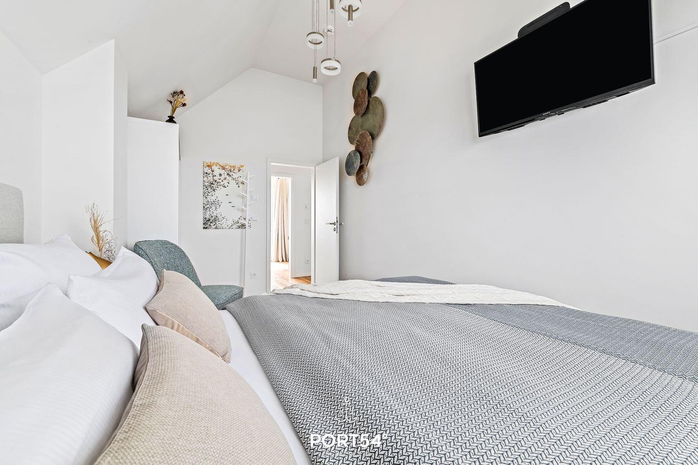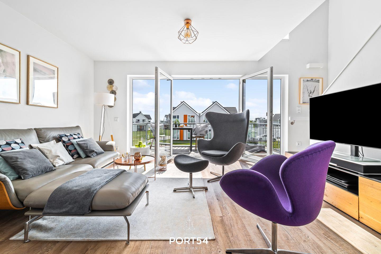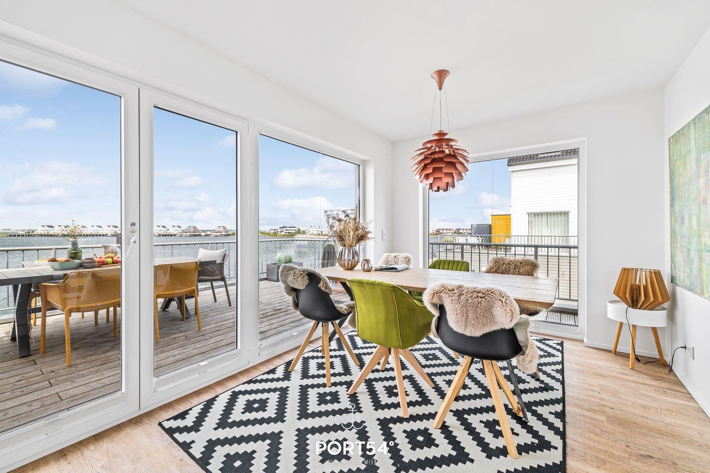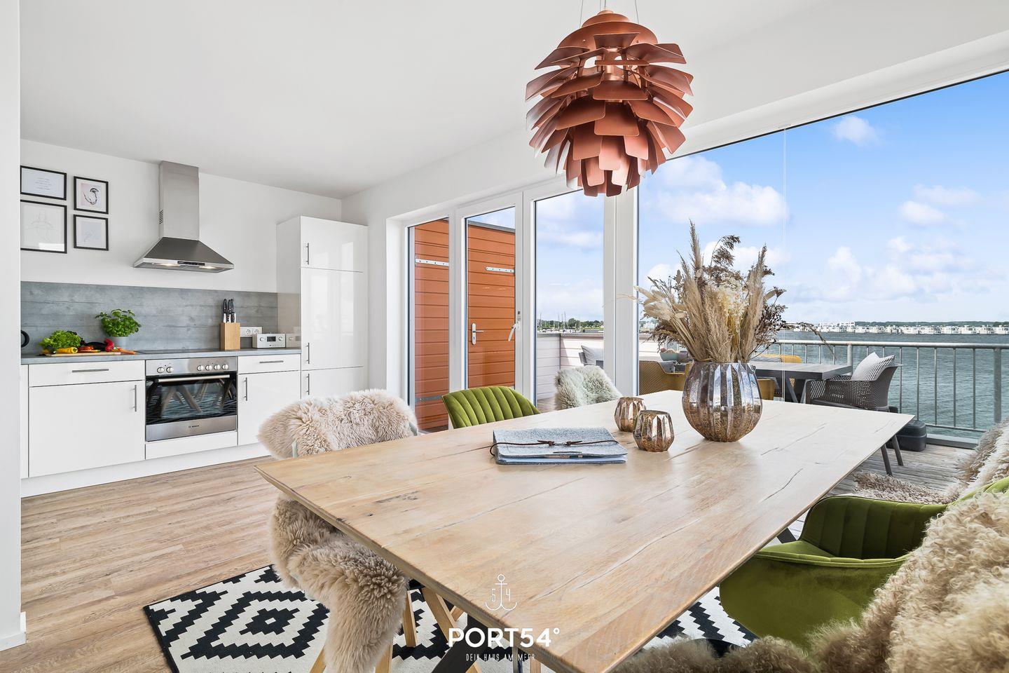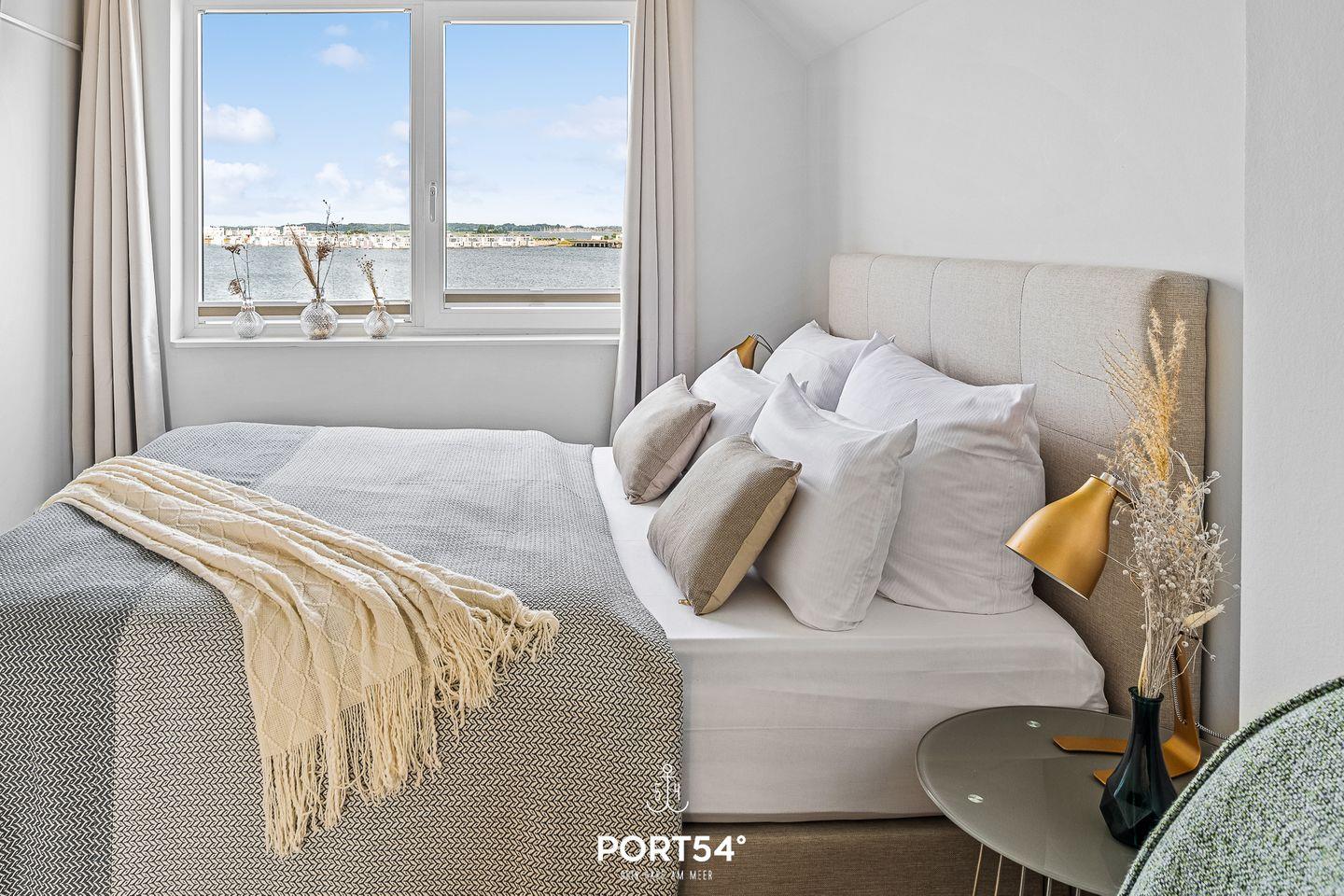 Lassen Sie sich den feinen Sand der Ostsee durch die Finger rieseln und eine milde Brise um die Nase wehen. In unserem "Meerhaus 18“, unmittelbar am Segel- und Sportboothafen des OstseeResorts Olpenitz gelegen, erleben Sie Hafenpanorama, Schlei und Ostsee so malerisch wie auf einer Postkarte. Die exklusive Nichtraucher-Ferienwohnung bietet Ihnen auf zwei Etagen modernen Komfort kombiniert mit stilvoller Einrichtung - faszinierender Wasserblick inklusive! Nach Betreten der Doppelhaushälfte im 1. Obergeschoss finden Sie sich im lichtdurchfluteten, einladend gestaltetem Wohn- und Essbereich wieder, der dank seiner bodentiefen Panoramafenster einen atemberaubenden Ausblick über die Marina und den Ostseefjord Schlei bietet. Hafenkino garantiert! Von hier aus gelangen Sie auf die zwei großzügig ausladenden Terrassen mit traumhaftem Wasserblick. Egal ob Sie im eigenen Strandkorb Sonne tanken, gemütlich grillen oder die Sonnenaufgänge über dem Meer genießen möchten – hier findet sich garantiert ein neuer Lieblingsplatz! Gemeinsames Kochen in der voll ausgestatteten Küche lässt keine Wünsche offen und so können Sie sich, Ihre Familie und Freunde kulinarisch verwöhnen. Im zweiten Obergeschoss befindet sich der Ruhebereich der Wohnung mit zwei Schlafzimmern und dem Wellnessbadezimmer. Schlafzimmer 1 ist mit einem Boxspring-Doppelbett (160 × 200 cm), einem Kleiderschrank, Verdunkelungsvorhänge einem Flatscreen-TV und einem traumhaften Wasserblick ausgestattet. Schlafzimmer 2 verfügt über ein modernes Etagenbett mit Liegefläche unten 140 × 200 cm (Platz für 2 Personen) und Liegefläche oben 90 x 200 cm (Platz für 1 Person), Verdunkelungsvorhänge und einem Kleiderschrank. Erwähnenswert ist das große, helle Wellnessbadezimmer mit Eck-Whirlwanne und bodengleicher Dusche. Highlight ist die Infrarot-Sauna für 2 Personen, in der man nach einem schönen Urlaubstag zu jeder Jahreszeit wunderbar entspannen kann. Für zusätzlichen Komfort sorgt ein weiteres Badezimmer mit bodengleicher Dusche auf der ersten Ebene. Die Ferienwohnung ist ausgestattet mit Fußbodenheizung, WLAN und (gerade für längere Aufhalte wichtig) Waschmaschine und Trockner. Sollte das Wetter einmal nicht mitspielen, machen Sie es sich vor dem Kamin im Wohnzimmer gemütlich und genießen Smart-TV mit Telekom Home Entertainment oder erleben Filme und Serien. Auch unsere kleinen Gäste kommen nicht zu kurz. Hier finden Sie Gesellschaftsspiele, Spielzeug für drinnen und draußen, sowie einen Bollerwagen. Dank der zentralen Lage erreichen Sie den weitläufigen Weidefelder Strand sowie den Supermarkt mit Bäckerei in wenigen Gehminuten. Ein Parkplatz und ein eigener abschließbarer Fahrradraum stehen vor dem Haus zu Ihrer Verfügung. Ungestört im Strandkorb ein Buch lesen, gemütlich kochen, am Strand spazieren gehen oder relaxen - all das ist mit der Ferienwohnung "Meerhaus 18“ möglich. Erleben Sie Ruhe und Erholung, das Hafenpanorama hautnah, den wunderschönen Ostseefjord Schlei und das Meer. Wir freuen uns, Sie bald bei uns begrüßen zu dürfen! Eine neue Ferienwohnung in einer der schönsten Ferienregionen Deutschlands wartet auf seine Gäste. Im reizvollen OstseeResort Olpenitz direkt zwischen Schleimündung und Ostsee gelegen, öffnet das "Meerhaus 18“ seit Februar 2020 seine Türen und heißt alle seine Gäste herzlich willkommen, die direkt am Meer tolle Urlaubstage mit frischer Seeluft satt genießen wollen.