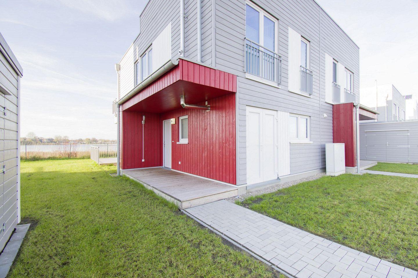 Diese traumhafte Doppelhaushälfte bietet auf 102m² allen Luxus, den man sich wünschen kann! Nach Betreten dieser befinden Sie sich im lichtdurchfluteten Wohn- und Essbereich wieder, der modern und exklusiv eingerichtet ist. Dank der bodentiefen Panoramafenster haben Sie einen atemberaubenden Ausblick über die Schleimündung und die Ostsee. Auch der Kamin trägt zu einer Wohlfühlatmosphäre bei. Die Küche ist hervorragend ausgestattet und ermöglicht Ihnen vielfältige Möglichkeiten Ihre Speisen zuzubereiten. Ein Gäste-WC rundet das Raumangebot im Erdgeschoss ab. Vom Wohnzimmer aus führt eine Treppe in das 1. Obergeschoss. Hier befinden sich die beiden Schlafzimmer, die jeweils mit einem gemütlichen Boxspringbett ausgestattet sind. Das große Wellnessbad mit eigener finnischer Sauna ist ein absolutes Highlight! Mit Blick auf den Hafen des Resorts können Sie sich hier vom Alltagsstress erholen. Besonders erwähnenswert ist die Dachterrasse, von der Sie einen atemberaubenden 360° Rundumblick haben und sicherlich viel Zeit verbringen werden. Ein eigener PKW-Stellplatz für zwei Fahrzeuge und ein Fahrradschuppen sind vorhanden.