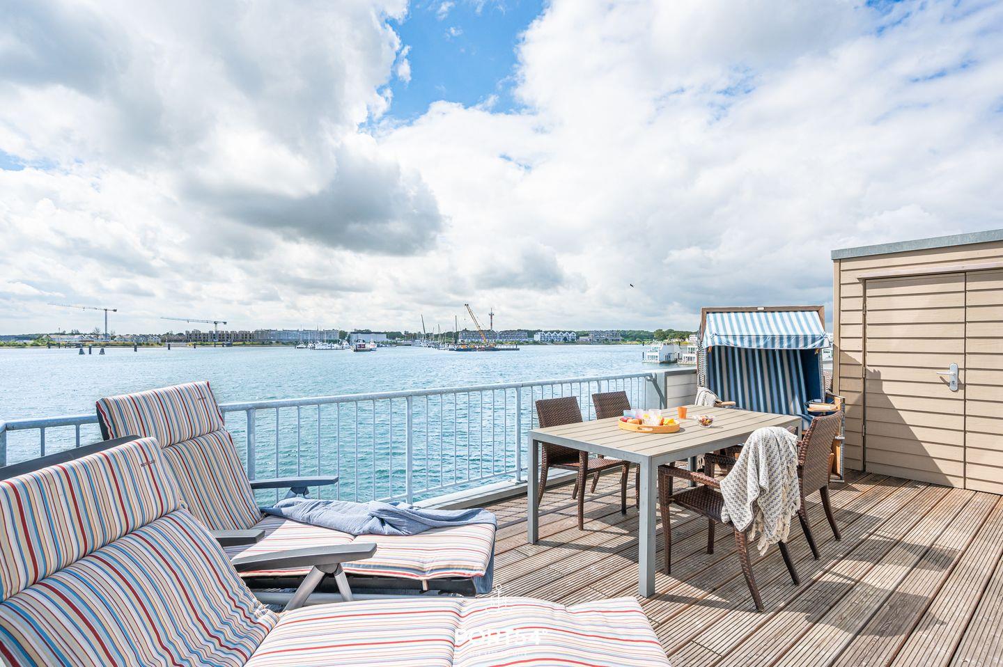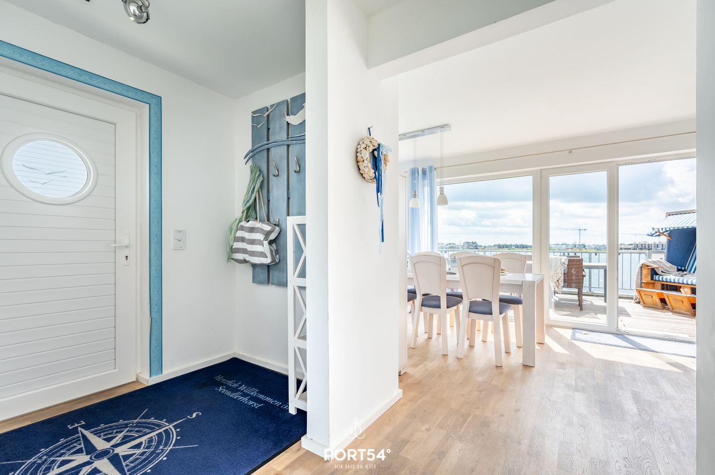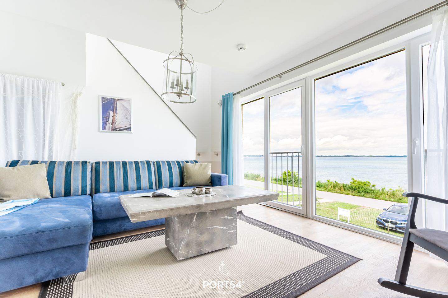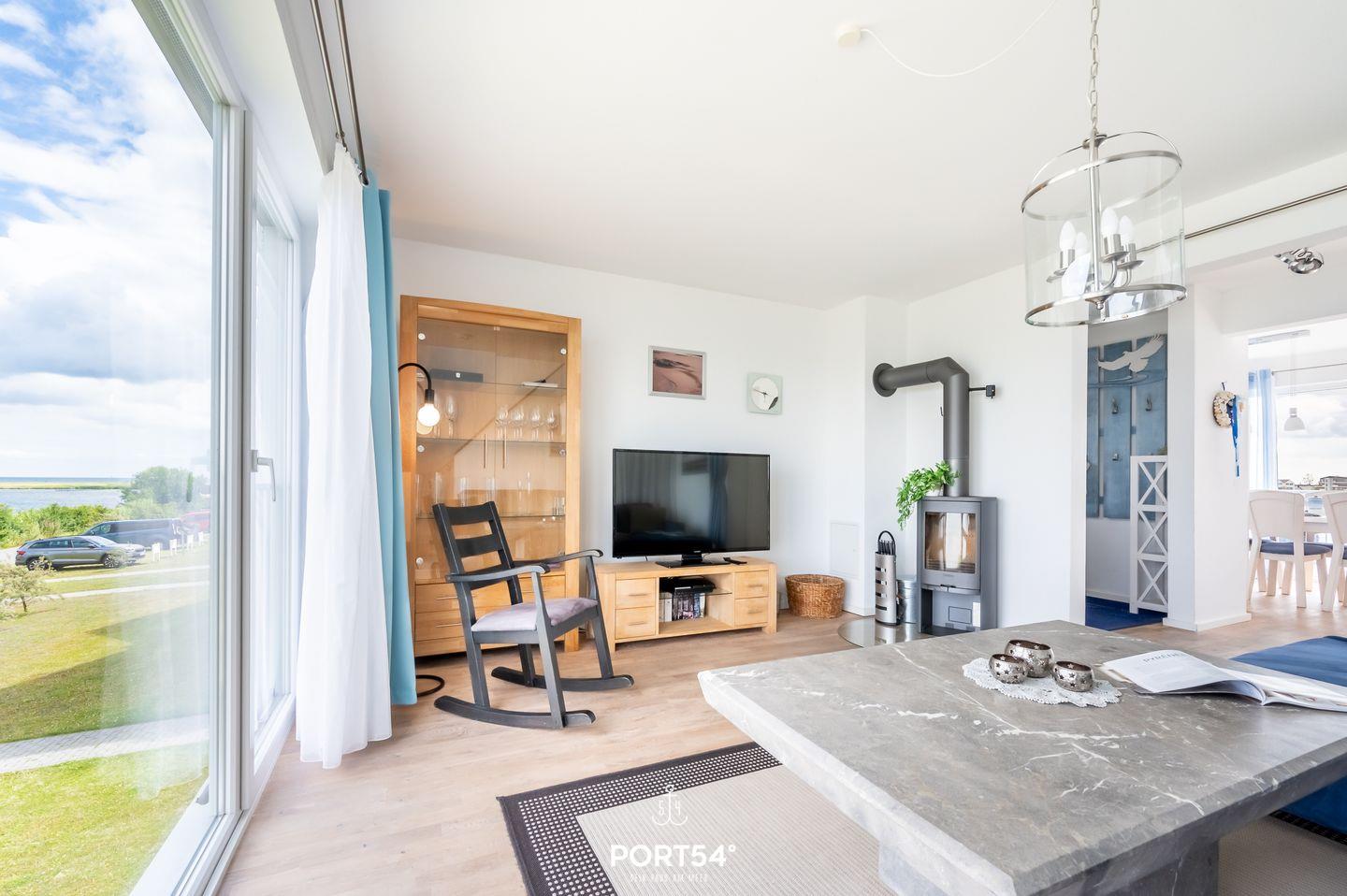 Herzlich willkommen in der Ferienwohnung "Seeadlerhorst" – einem idyllischen Rückzugsort mit atemberaubendem Blick auf das glitzernde Wasser! Tauchen Sie ein in eine Welt des Komforts und der Entspannung, die diese gemütliche Unterkunft im malerischen Olpenitz zu bieten hat. Der Essbereich der Wohnung erstrahlt in wunderbarem Tageslicht, das durch die großzügigen Panoramafenster strömt. Auf dem angrenzenden Balkon, der den Hafen von Olpenitz überblickt, können Sie leckere Köstlichkeiten aus der vollausgestatteten Küche oder vom Grill genießen. Der Wohnbereich lädt mit einem einladenden Kamin zum Entspannen ein, perfekt für gemütliche Abende nach ausgedehnten Spaziergängen. Die Fußbodenheizung und eine behagliche Einrichtung sorgen für zusätzlichen Komfort. Ein modernes Duschbad rundet das Angebot im Erdgeschoss ab. Im zweiten Obergeschoss erwarten Sie die beiden Schlafzimmer. Das eine ist mit einem großzügigen Doppelbett (180x200cm) ausgestattet, während das andere mit zwei komfortablen Einzelbetten (je 90x200cm) aufwartet. Gönnen Sie sich ein entspannendes Bad in der Whirlwanne mit Blick auf das Meer – ein wahrer Genuss für die Sinne. Das Badezimmer verfügt zudem über eine geräumige Dusche und eine Infrarot-Sauna für das ultimative Wellnesserlebnis. Zwei weitere Schlafplätze bietet die bequeme Schlafcouch im Wohnbereich. Auch Ihre vierbeinigen Begleiter sind gegen eine Gebühr herzlich willkommen, denn auch sie sollen die Ostsee in vollen Zügen genießen können.