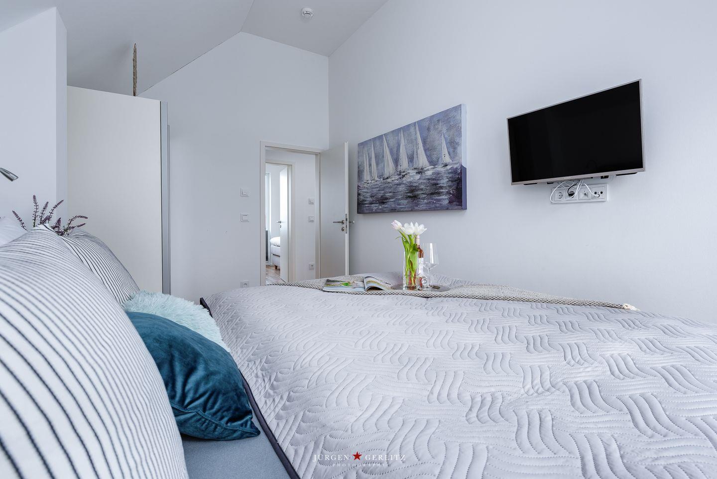 Erleben Sie jetzt die Geschichten, von denen Sie später gerne erzählen möchten! Die exklusive Ferienwohnung "Ab ans Meer" im OstseeResort Olpenitz liegt nur wenige Meter vom Wasser entfernt. Der lichtdurchflutete Wohnbereich lädt mit seiner gemütlichen Sitzlandschaft an kalten Abenden zu einem Kaminabend ein. Die großzügige Wohnküche mit Essplatz für 6 Personen, ist mit allem was das Herz begehrt ausgestattet. Das Hauptschlafzimmer ist ausgestattet mit einem Doppel-Boxspringbett und verfügt über einen traumhaften Hafenblick. Das zweite Schlafzimmer schaut auf den Ostseefjord Schlei und bietet Ihnen zwei Boxspring-Einzelbetten. Beide Schlafzimmer sind verdunkelbar und verfügen über Flatscreen TVs. Die fünfte Schlafmöglichkeit befindet sich auf dem bequemen Schlafsofa. Das Wellnessbad lädt zum Entspannen ein. Eine Infrarot Wärmekabine mit HiFi-Sound-System und LED-Farblichttherapie, sowie eine große Relax-Badewanne mit Wasserblick stehen nach dem Strandspaziergang zum Wohlfühlprogramm bereit. Von der großen Terrasse haben Sie einen fantastischen Blick über den Segel-und Sportboothafen. Ein kostenfreier Parkplatz befindet sich direkt vor der Unterkunft.
