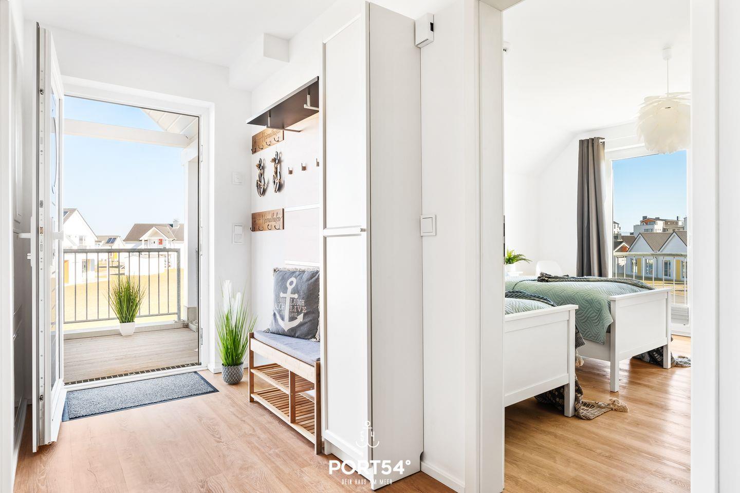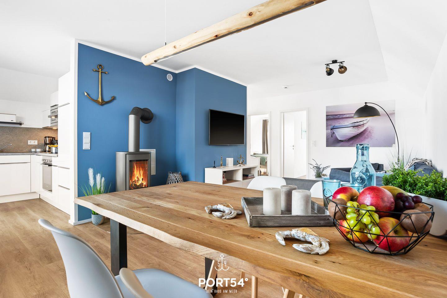 In dieser modernen und gemütlich eingerichteten Wohnung fühlen Sie sich schnell wie im Urlaub! Mit zwei Schlafzimmern und einem Wohnzimmer bietet reichlich Platz zur Entfaltung für bis zu 4 Erwachsene und zwei Kinder. Das Wohnzimmer ist ausgestattet mit einem Kamin, TV und Musik mit Sonos. Die offene Küche mit großzügigem Essbereich lädt zum Kochen und Genießen ein. Das Appartment verfügt über ein Badezimmer mit Whirlwanne und Infrarot-Sauna zum Entspannen und Relaxen. Die beiden Schlafzimmer sind mit einem Doppelbett und zwei Einzelbetten ausgestattet. Das Schlafsofa im Wohnzimmer lässt sich ausziehen und bietet zwei Kindern Platz. Auch die Kleinen kommen nicht zu kurz: Hier finden Sie Gesellschaftsspiele, Spielzeug, Strandspielzeug, einen Kinderroller sowie einen Bollerwagen. Die exzellente Lage mit Hafenblick bringt sofort Entspannung pur, sodass der Alltag schnell in Vergessenheit gerät. Auch der Strand ist fußläufig in wenigen Minuten erreichbar und in den Sommermonaten DLRG überwacht. Hier können die Kinder baden, buddeln und toben. Die Natur lädt mit ihrer ländlichen Weite und wundervollen Ausblicke auf die Schlei und Ostsee zum Wandern und Radfahren ein. Das OstseeResort Olpenitz bietet viel Platz zum Entdecken und Erkunden. Abends kann man wunderbar den Tag mit einem Glas Wein auf dem großen Balkon ausklingen lassen und die Sonne am Horizont untergehen sehen. Ein Stellplatz und ein abschließbarer Fahrradschuppen sind vorhanden.