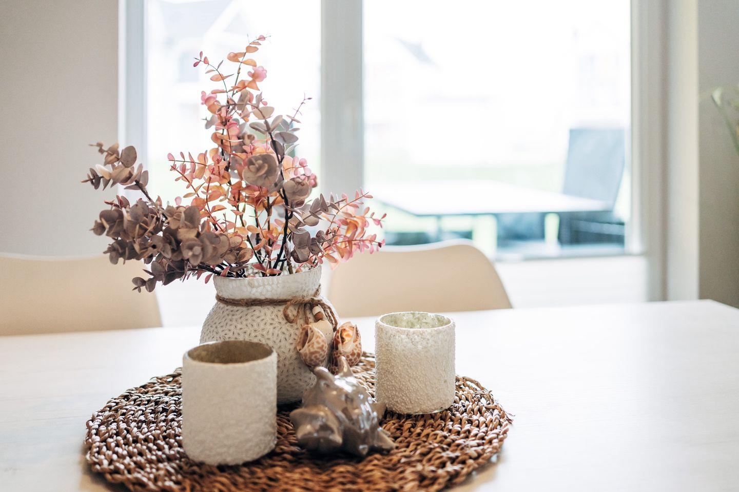 Der große Wohn- und Essbereich ist modern eingerichtet und durch bodentiefe Fenster besonders hell. In der kalten Jahreszeit kannst Du es Dir dank der Fußbodenheizung in allen Räumen sowie vor dem Kamin im Wohnzimmer gemütlich machen.