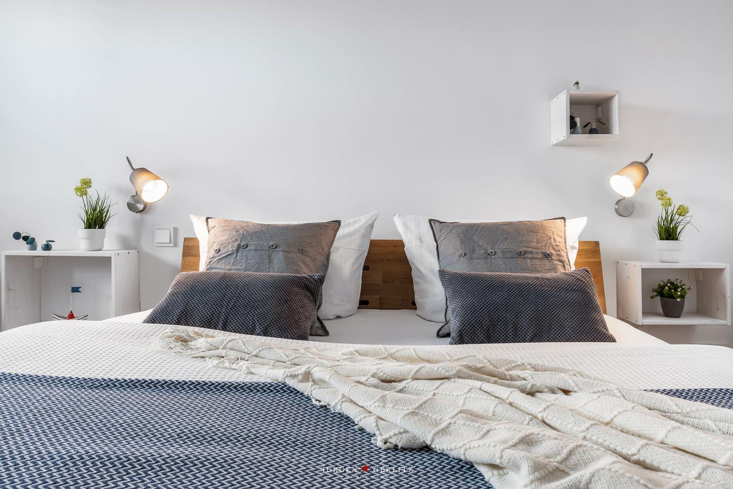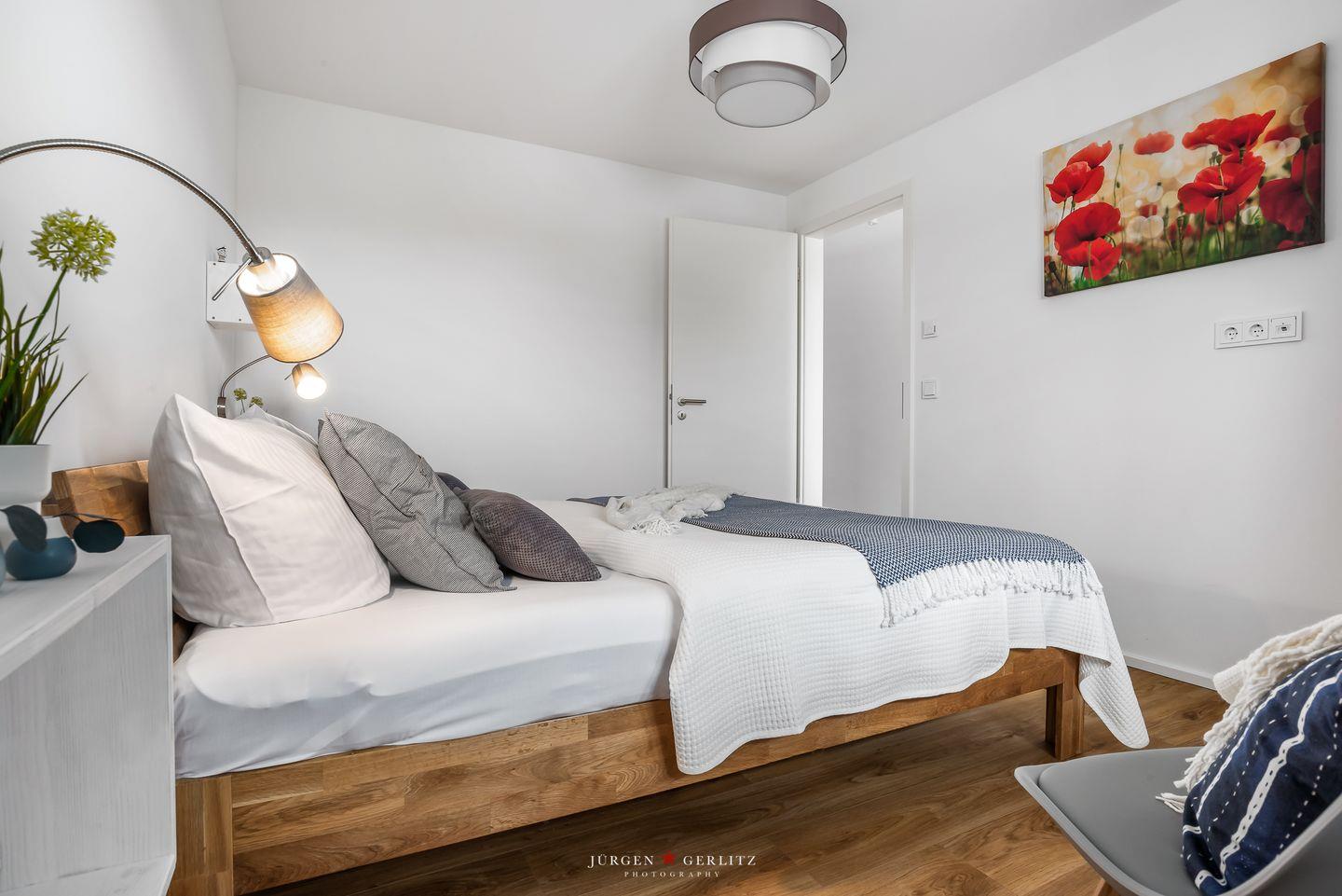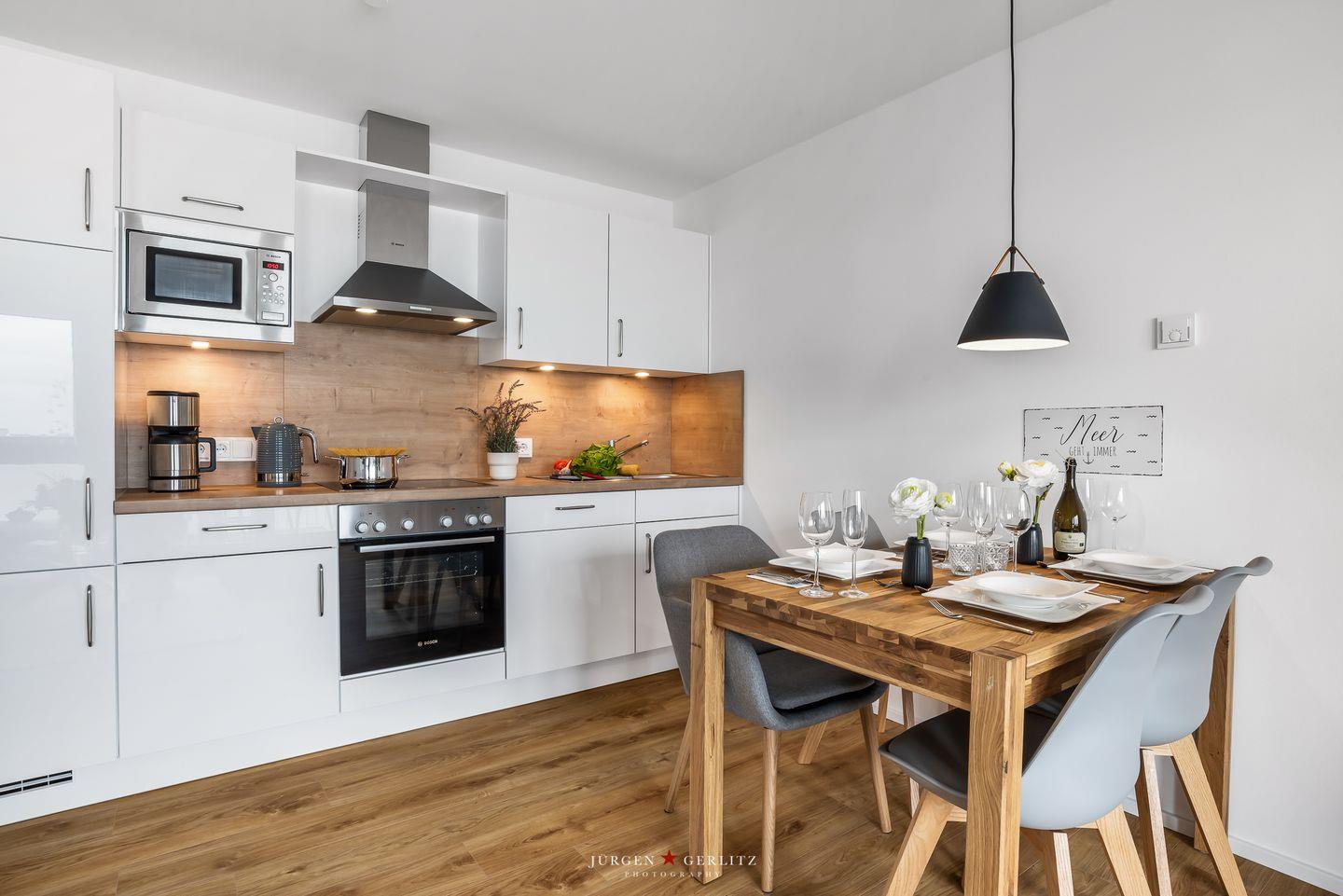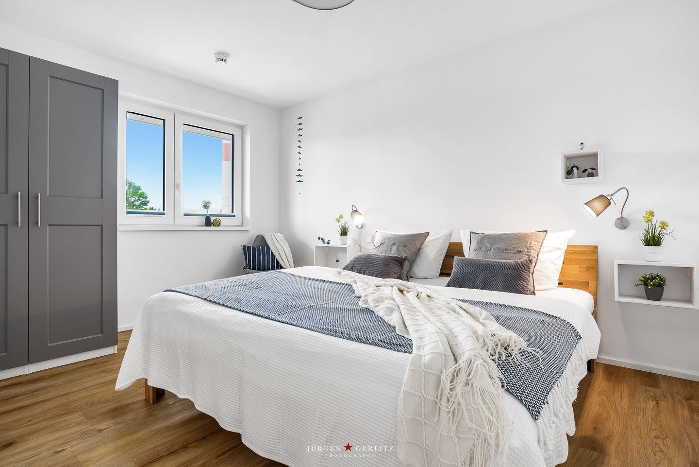 Willkommen im bezaubernden "Seeräubernest" – einer Oase der Entspannung und Eleganz im OstseeResort Olpenitz! Auf knapp 55m² bietet die Ferienwohnung einen atemberaubenden Blick auf den Hafen und die malerische Schlei. Der loftartig gestaltete Wohnbereich, lichtdurchflutet durch bodentiefe Fenster, verspricht eine einladende Atmosphäre. Hier erwartet Sie nicht nur eine gemütliche Couch, sondern auch eine moderne Küche und ein stilvoller Essbereich, die perfekt ineinander übergehen. Die komplett ausgestattete Küche lädt dazu ein, leckere Gerichte zu zaubern. In jedem Zimmer gibt es ein Fenster mit Fliegengitter, sodass Sie einen erholsamen Urlaub erleben können. Das Schlafzimmer ist ein wahrer Ruhepol, ausgestattet mit einem großzügigen Doppelbett (180x200cm), das himmlische Nächte verspricht. Für zusätzlichen Komfort bietet das bequeme Schlafsofa im Wohnzimmer eine weitere Schlafmöglichkeit. Verdunklungsmöglichkeiten in beiden Räumen sorgen für angenehme Nachtruhe. Im modernen Badezimmer erwartet Sie eine großzügige bodengleiche Dusche – eine wahre Wellnessoase. Das Highlight der Wohnung ist zweifellos der Balkon, der Ihnen einen malerischen Blick auf das Wasser bietet. Hier können Sie den Tag bei einem Glas Wein ausklingen lassen und die maritime Atmosphäre in vollen Zügen genießen.