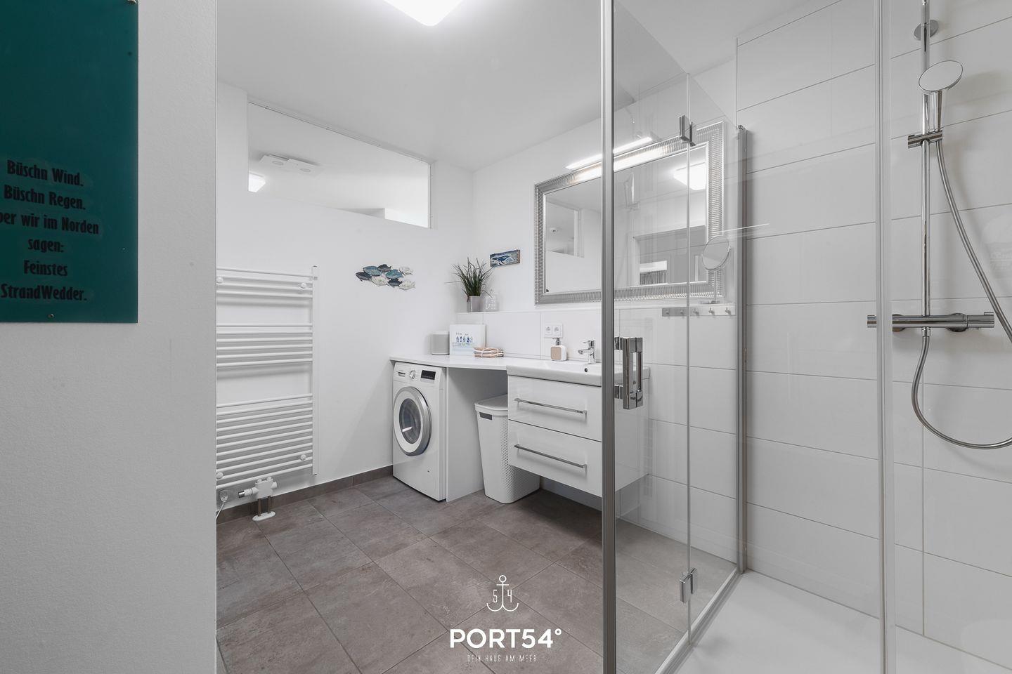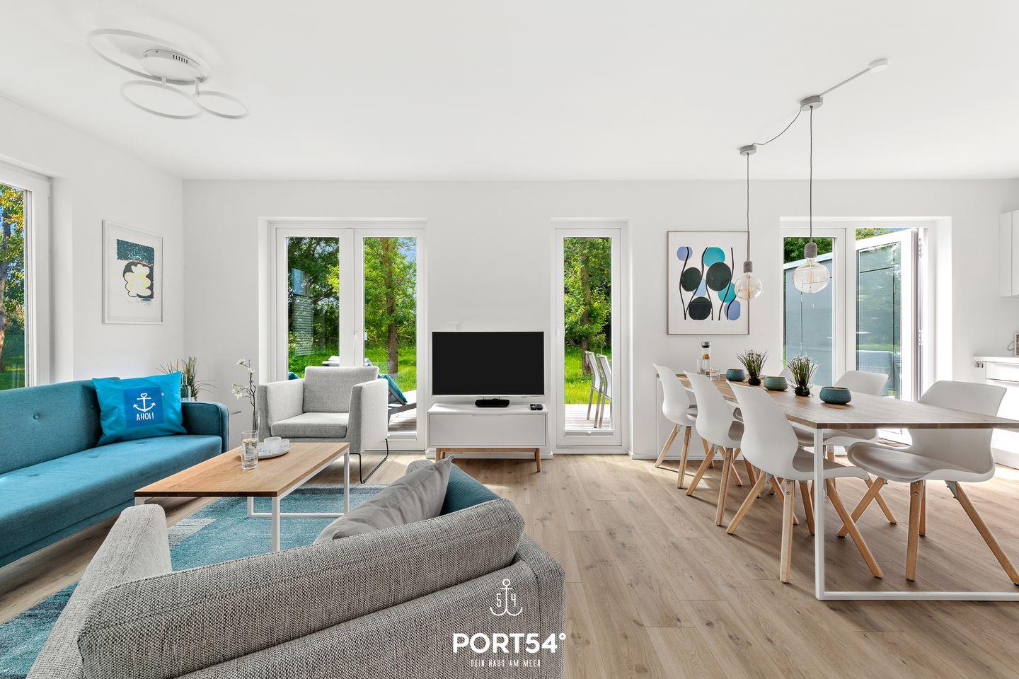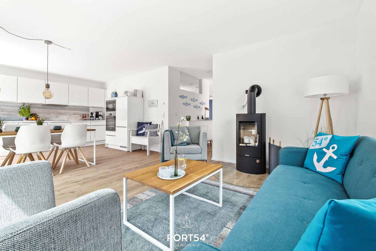 Die im Erdgeschoss gelegene "OstseeLounge 44" wurde 2022 fertiggestellt und ist liebevoll mit maritimen Details eingerichtet. Neben zwei Schlafzimmern bietet die Wohnung eine offene, vollausgestattete Küche, ein großes Badezimmer sowie einen gemütlichen Wohnbereich. Sie befindet sich in ruhiger Feldrandlage des Ostseeresorts, sodass Sie einen schönen Ausblick ins Grüne genießen und das Rauschen der Ostsee hören können. Kurze Spaziergänge durch das OstseeResort führen Sie zur Hafenpromenade oder zum wunderschönen, kilometerlangen Weidefelder Sandstrand. Eines der Highlights ist neben der finnischen Sauna der Kaminofen im Wohnbereich, vor welchem Sie es sich in der kalten Jahreszeit gemütlich machen können. Beide Schlafzimmer sind mit großen Doppelbetten (180×200cm) ausgestattet; eines der Schlafzimmer verfügt über einen weiteren Flatscreen-TV. Im Badezimmer erwartet Sie eine extragroße, ebenerdige Dusche und die finnische Sauna. Nach langen Strandspaziergängen kann man dort herrlich entspannen & sich ausruhen. Über die vorhandene Bluetooth-Box können Sie auch hier Ihre Lieblingsmusik genießen. Kostenfreies W-LAN ist selbstverständlich vorhanden. Über den Wohnbereich kommen Sie auf die große, möblierte Terrasse mit Südausrichtung. Hier haben Sie einen freien Blick ins Grüne und können auf den Liegen und Sitzmöglichkeiten die Sonne genießen und herrlich entspannen. Dank des Elektrogrills können Grillabende veranstaltet werden. Ein PKW-Stellplatz ist direkt vor der Unterkunft vorhanden.