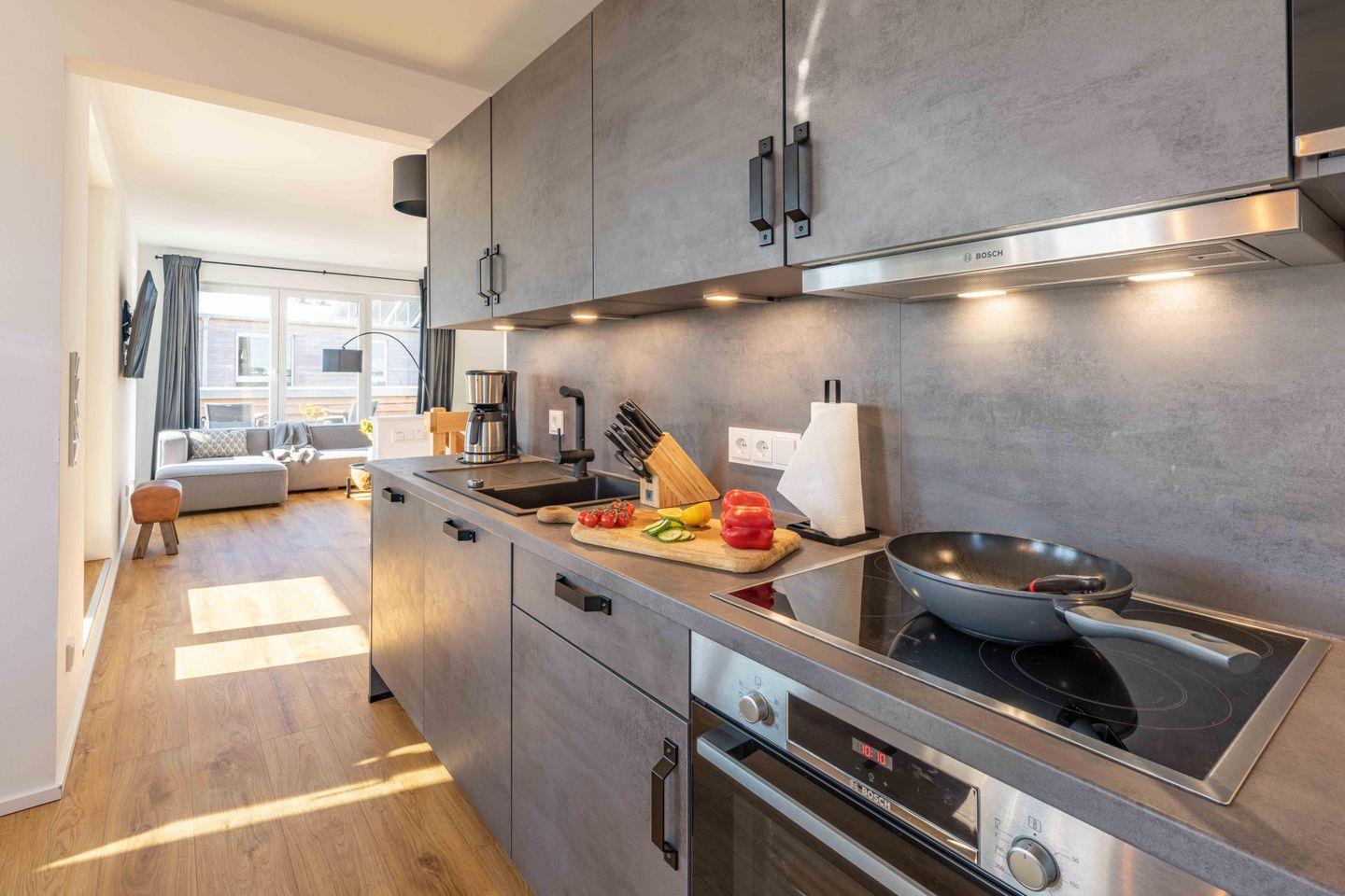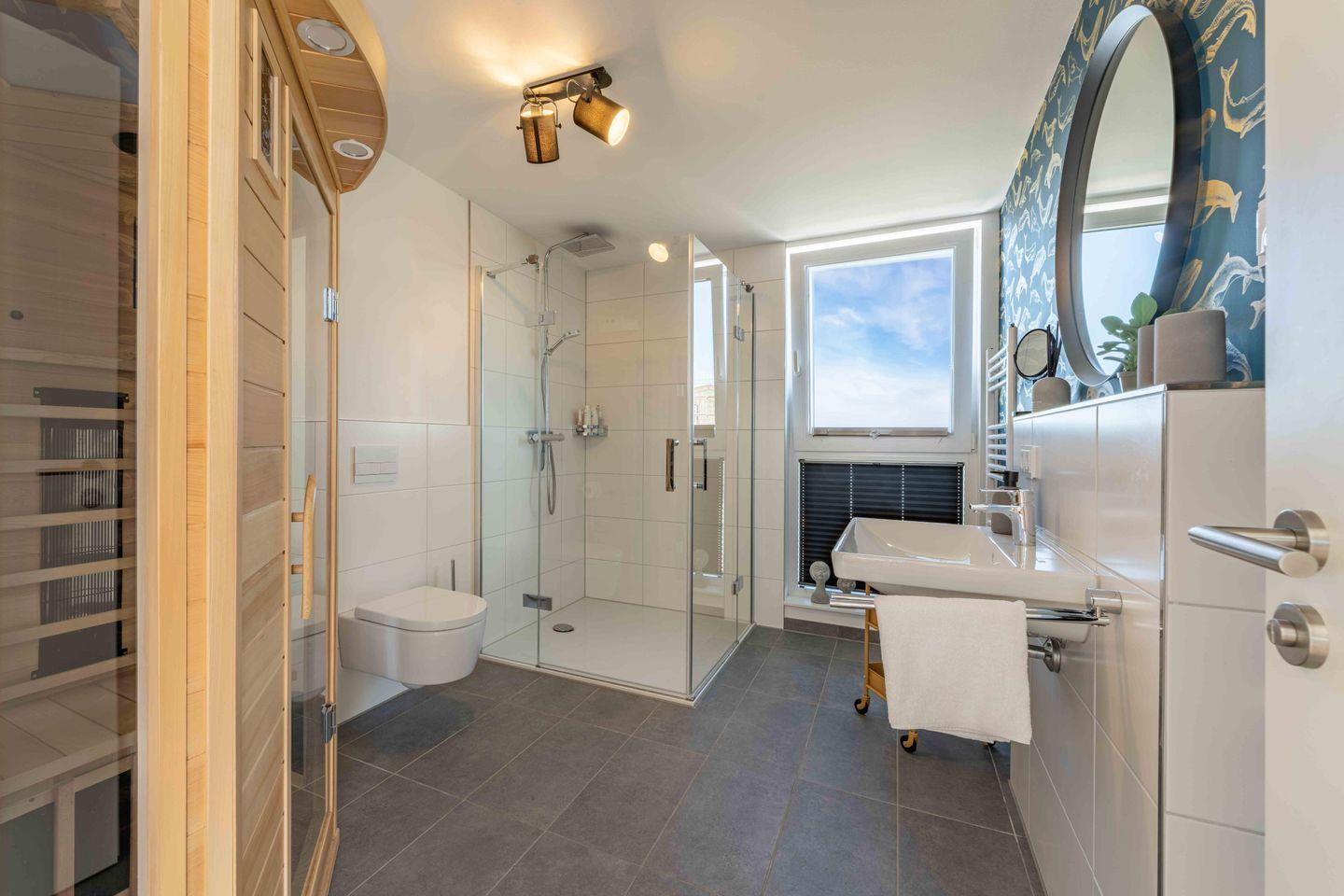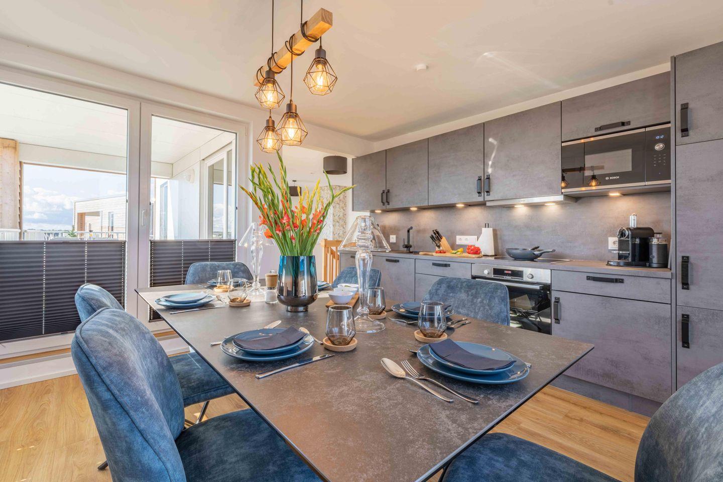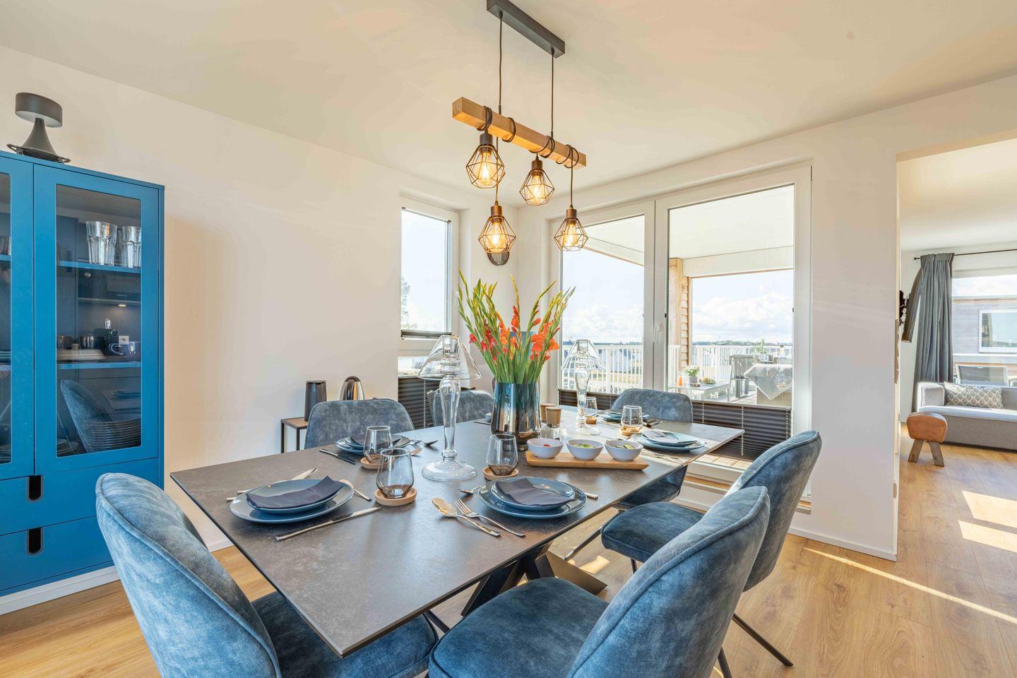 Die Ferienwohnung "Gode Tied" befindet sich im neuerbauten OstseeResort Olpenitz. Starten Sie Ihren wohlverdienten Urlaub in der exklusiven Ferienwohnung "Gode Tied" mit ca. 120m² auf zwei Ebenen für bis zu 6 Personen. Der Hafen Olpenitz auf der einen – die ruhige Ostsee auf der anderen Seite. Somit ist die "Gode Tied" der perfekte Ort zum Abschalten: alleine, zu zweit, mit Freunden oder mit der gesamten Familie. Das große, stilvolle Wohn-/Esszimmer verführt mit einem Kamin und einem gemütlichen Sofa & direktem Zugang zur großen Terrasse mit Ostseeblick. Ein moderner Esstisch mit 6 Stühlen und Kinderhochstuhl laden zu gemütlichen Abenden und Beisammensein ein. Die Wohnung ist exklusiv und geschmackvoll ausgestattet und doch alltagstauglich für die ganze Familie. Der Kamin lädt Sie an kalten Tagen ein, es sich gemeinsam gemütlich zu machen und den atemberaubenden Wasserblick zu bestaunen. Auf den beiden Balkonen (einer davon teilüberdacht), können Sie den tollen Ausblick, die frische Ostseeluft und Sonnenuntergänge genießen. Beide Balkone sind mit Außenmöbeln ausgestattet und ein Grill der Firma "Weber" lädt zu gemütlichen Grillabenden ein. Die offen und modern gehaltene Küche ist hochwertig und voll ausgestattet und verfügt ebenso über einen tollen Ausblick direkt auf den Hafen. Das Appartment verfügt über 3 Schlafzimmer mit Boxspringbetten (180x200cm). Außerdem gibt es Smart-TV's in allen Schlafzimmern, ebenso im Wohnzimmer. Die Ferienwohnung verfügt über zwei moderne und helle Badezimmer. Das eine Badezimmer verfügt über eine Infrarot-Sauna, hier können Sie dem Alltagsstress entfliehen und sich entspannen. Zudem gibt es eine ebenerdige Dusche. Das andere Badezimmer verfügt über eine Badewanne und ebenso über eine Waschmaschine. Ein PKW-Stellplatz ist neben dem Haus vorhanden.