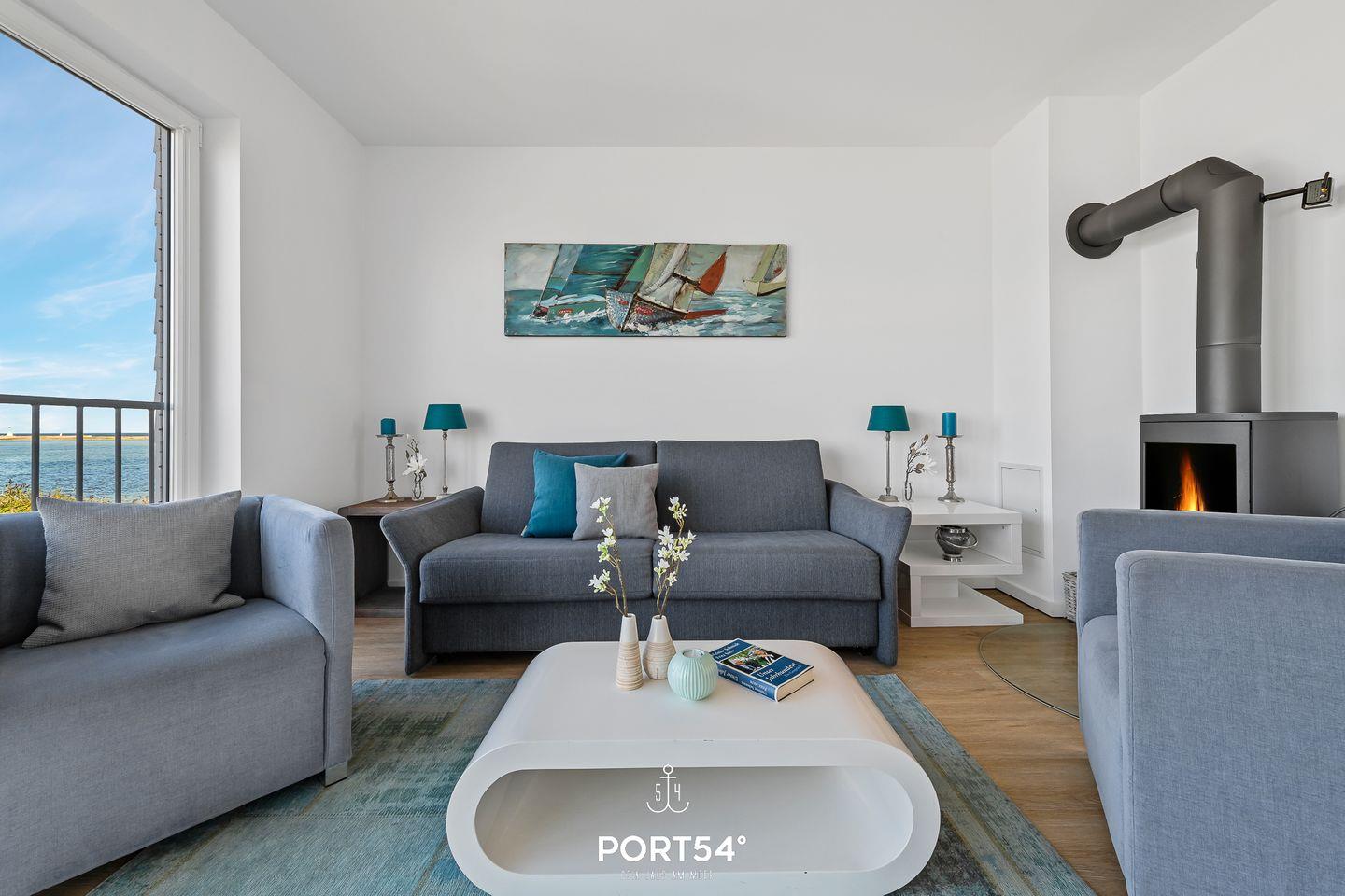 Eine Ferienwohnung - zwei atemberaubende Aussichten mit Wasserblick! Im ersten OG erwartet Sie neben einem lichtdurchfluteten Wohnbereich mit Kamin auch ein Duschbad. Angrenzend ist Küche mit Essbereich und Zugang zur Terrasse. Das zweite OG verfügt über zwei Schlafzimmer, ausgestattet mit einem Doppelbett und zwei Einzelbetten. Das große Bad bietet eine Badewanne mit einem einzigartigen Blick auch mit einer Infrarot-Sauna. Ein PKW Stellplatz steht direkt vor dem Haus kostenfrei zur Verfügung.