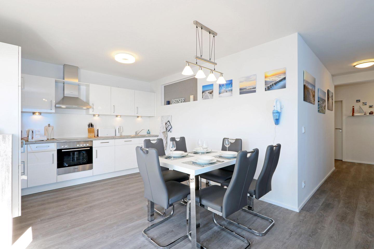 Die Ferienwohnung "Primavera" befindet sich im neuerbauten OstseeResort Olpenitz. Genießen Sie einen entspannten Urlaub direkt am Wasser! Die Erdgeschosswohnung "Primavera" besticht durch ihre bodentiefen Fenster, die zu jeder Tageszeit für eine lichtdurchflutete Atmosphäre sorgen.Im großzügigen Wohnbereich laden gemütliche Sitzgelegenheiten dazu ein, die Füße hochzulegen und die Ruhe zu genießen. Die vollausgestattete Küche wird zum Herzstück Ihrer kulinarischen Abenteuer, und dank ausreichend Platz können Sie gemeinsam mit der Familie entspannte Kochabende im Urlaub erleben. Die beiden Schlafzimmer sind nicht nur mit Verdunklungsmöglichkeiten, sondern auch mit Insektenschutzgittern ausgestattet, um Ihnen eine ungestörte Nachtruhe zu ermöglichen. Im Hauptschlafzimmer erwartet Sie ein komfortables Doppelbett (180x200cm), das zweite Schlafzimmer mit ebenfalls einem Doppelbett (160x200cm) aufwartet. Eine zusätzliche Schlafcouch im Wohnbereich bietet eine zusätzliche Schlafmöglichkeit. Das absolute Highlight befindet sich im Badezimmer! Ein eigener, kleiner Wellnessbereich mit einer Infrarot-Sauna und einer Whirlwanne. Nach langen Fahrradtouren können Sie es sich dort gut gehen lassen. Auch für unsere ganz kleinen Urlauber stellen wir gerne jeweils einen Kinderhochstuhl sowie ein Kinderreisebett bereit, welche Sie gerne nutzen dürfen. Auf der Terrasse können Sie wunderschöne genießen. Ein Elektro-Grill steht Ihnen ebenso zur Verfügung. Genießen Sie die Meerluft und den einzigartigen Blick auf das Wasser. Ein Stellplatz für Ihr Auto befindet sich vor der Unterkunft. Ihre mitgebrachten Fahrräder dürfen Sie gerne im hauseigenem abschließbaren Fahrradschuppen unterstellen.
