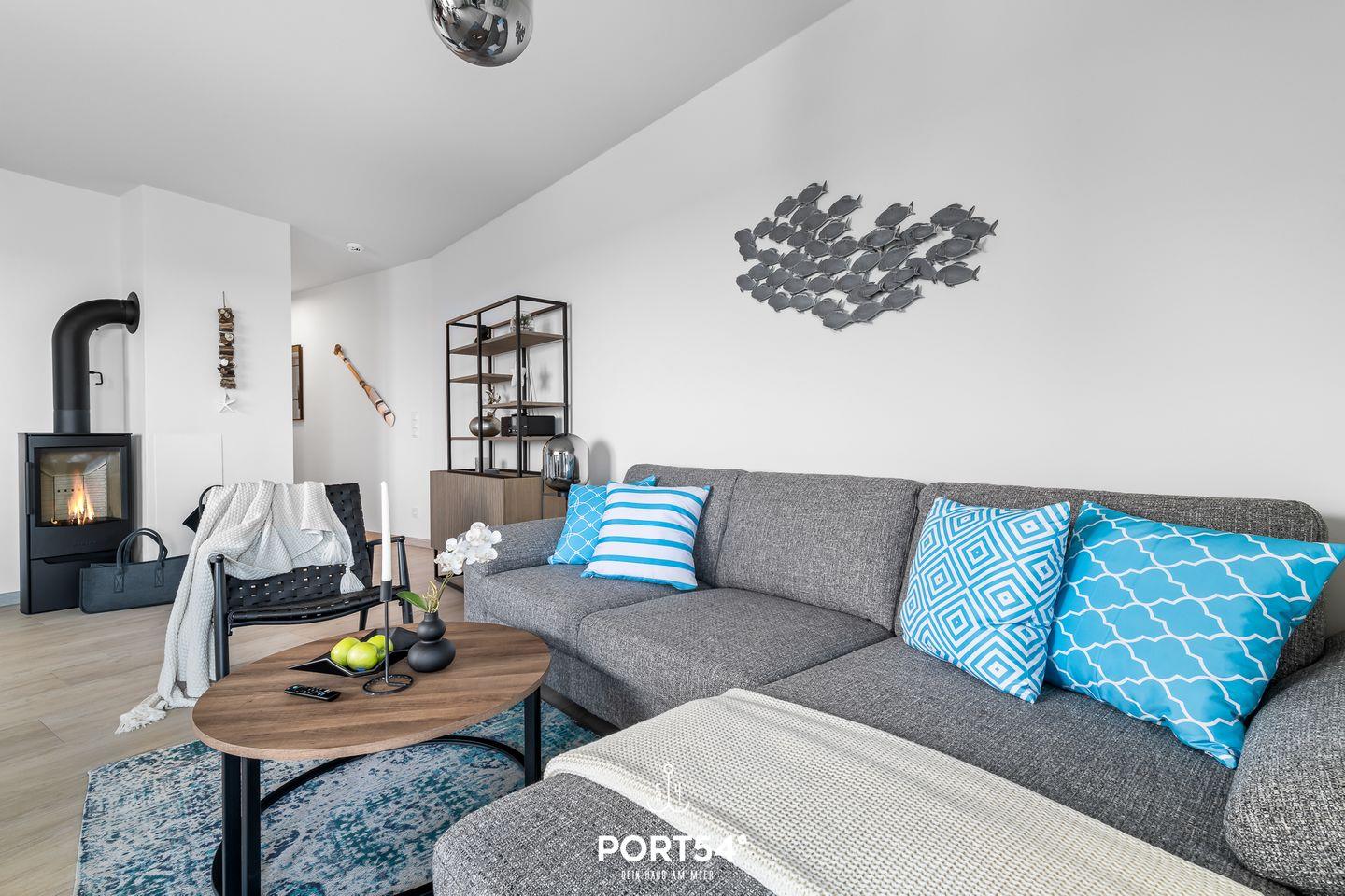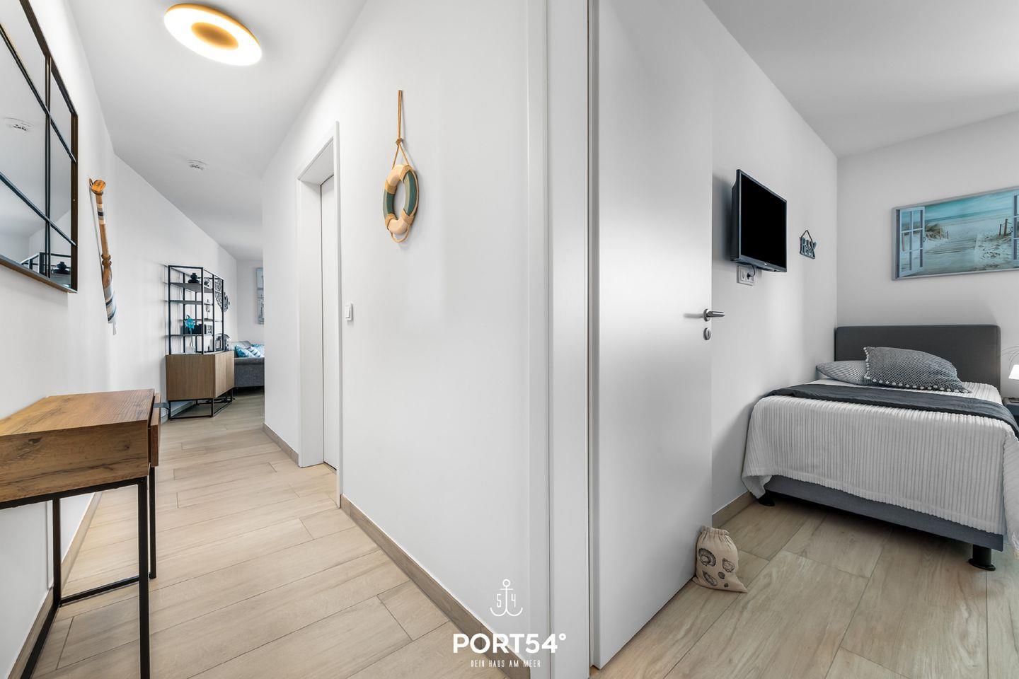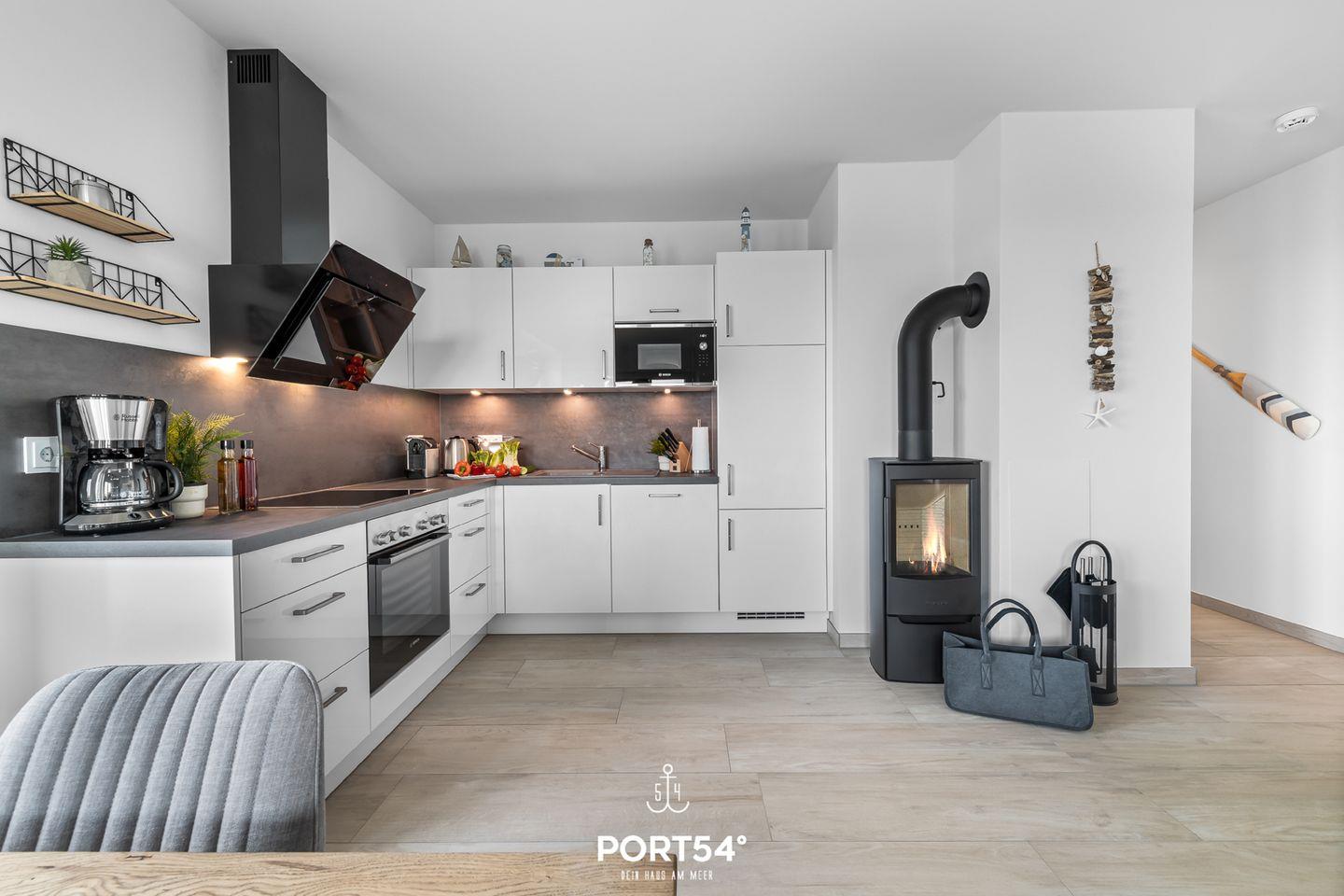 Herzlich willkommen im "Hafenglück" – Ihrer Oase mit traumhaftem Hafenblick in Olpenitz! Tauchen Sie ein in eine Ferienwohnung der Extraklasse, die in der 1. Etage mit Fahrstuhl, auf großzügigen ca. 78m² alles bietet, um Ihren Ostseeurlaub unvergesslich zu gestalten. Der lichtdurchflutete Wohn-/Essbereich lädt zum geselligen Beisammensein ein, während die vollausgestattete Küche mit allem Nötigen aufwartet, um gemeinsame Kochabende zu einem kulinarischen Erlebnis zu machen. Im Wohnzimmer erwartet Sie ein gemütliches Sofa, vor dem Sie die Urlaubstage entspannt vor dem Kamin ausklingen lassen können. Die beiden Schlafzimmer sind perfekte Rückzugsorte für erholsame Nächte. Im ersten Schlafzimmer erwartet Sie ein komfortables Doppelbett (180x200cm), während das zweite Schlafzimmer mit zwei Einzelbetten (je 90x200cm) aufwartet. Beide Schlafzimmer sind mit einem Flachbild-TV ausgestattet, um Ihnen nächtliches Entertainment zu bieten, und verfügen über Verdunkelungsmöglichkeiten für einen tiefen und erholsamen Schlaf. Das Badezimmer präsentiert sich mit einer modernen, ebenerdigen Dusche, WC, einem Handtuchtrockner und einem Föhn. Doch das Highlight für Ihr Wohlbefinden ist zweifellos die Infrarot-Sauna – ein perfekter Ort, um sich nach ausgiebigen Strandspaziergängen zu erholen und aufzuwärmen. Auch unsere kleinen Gäste werden nicht vergessen: Ein Hochstuhl und ein Reisebett stehen für die Kleinen bereit. Der möblierte Balkon bietet einen idyllischen Platz, um sonnige Tage zu genießen und laue Sommerabende bei einem Grillfest zu verbringen – alles mit einem wunderschönen Blick auf den Hafen. Ein reservierter Stellplatz vor dem Haus sorgt für bequemes Parken und rundet das Gesamtpaket ab.