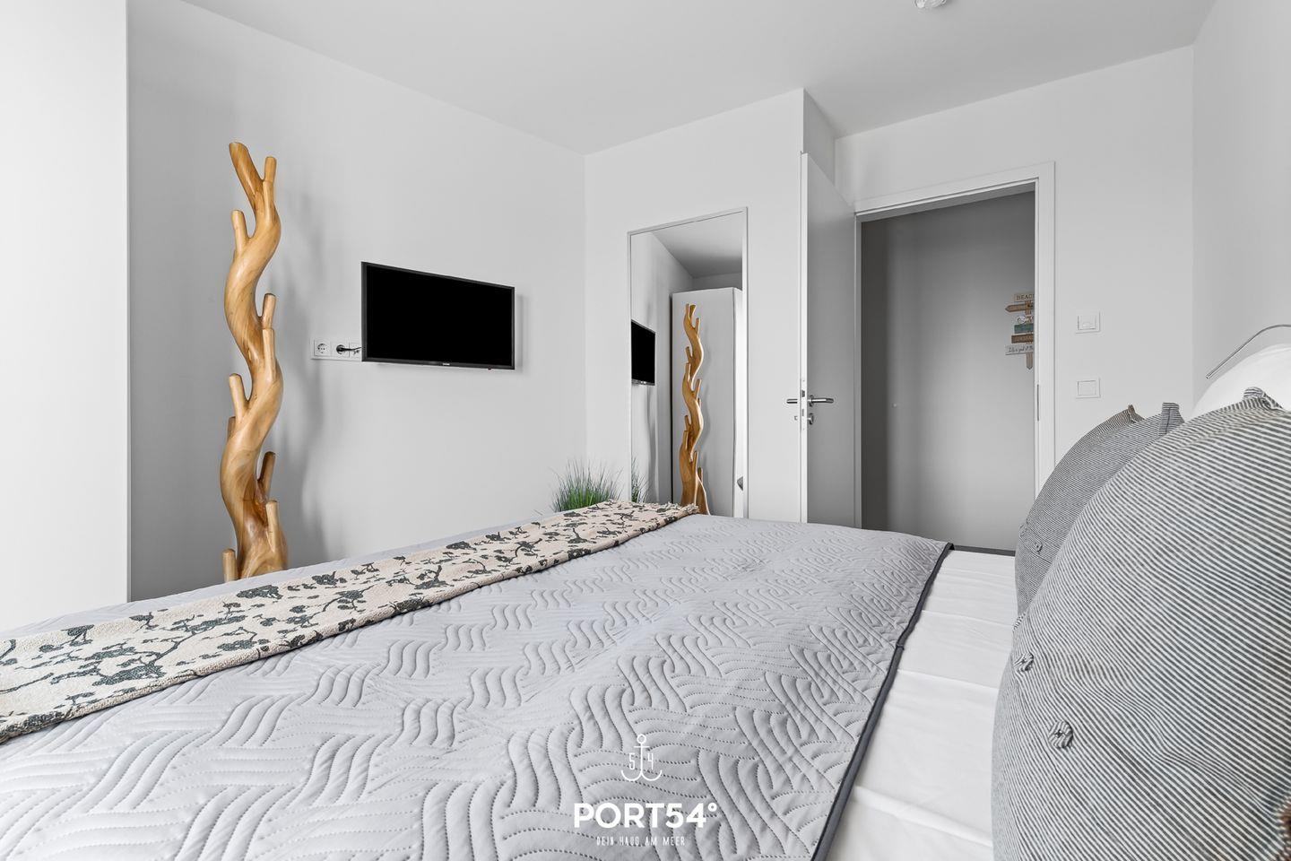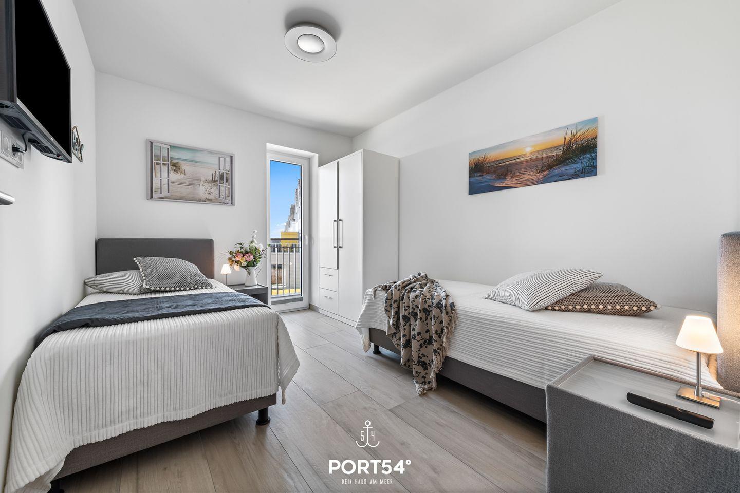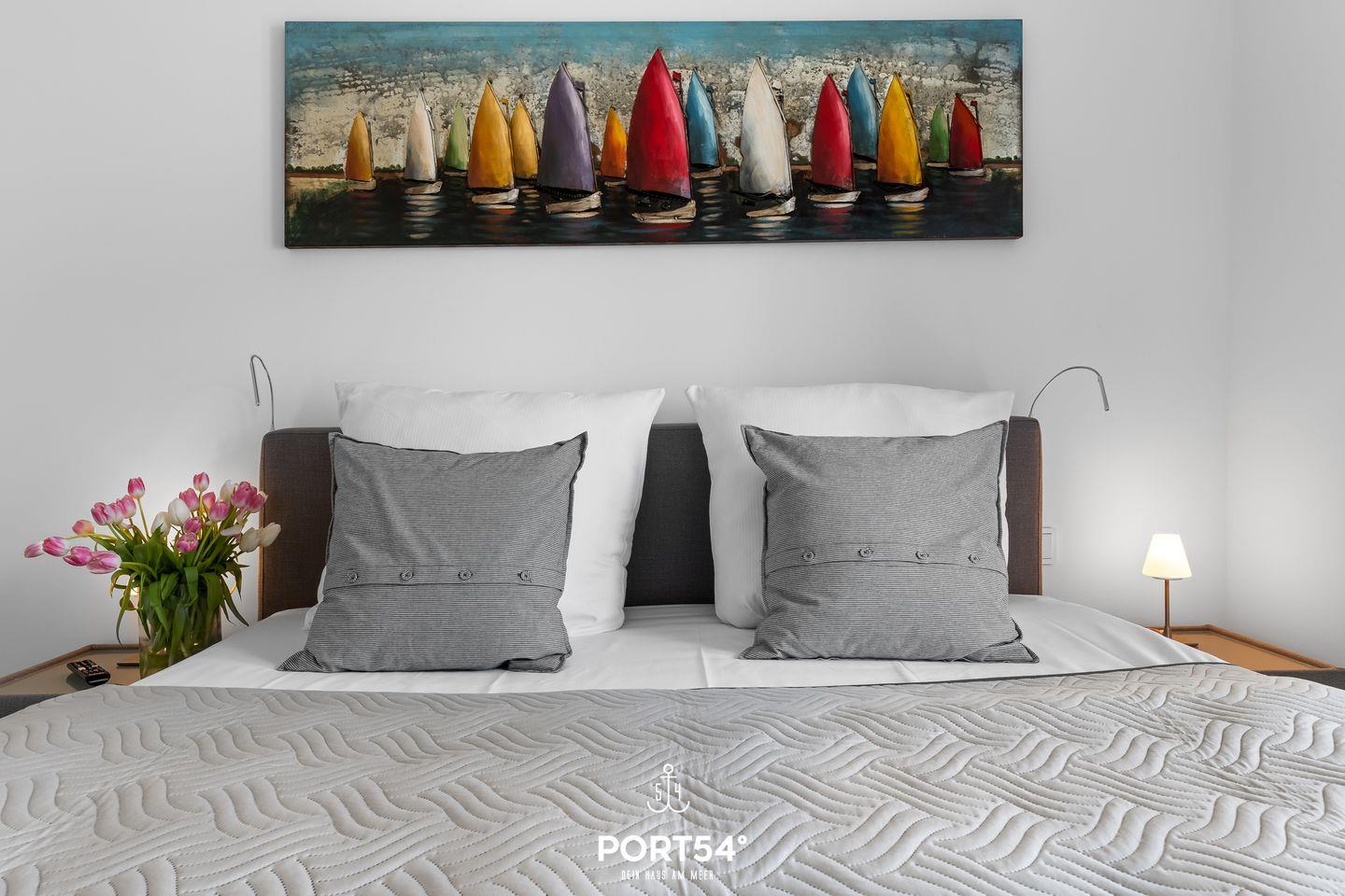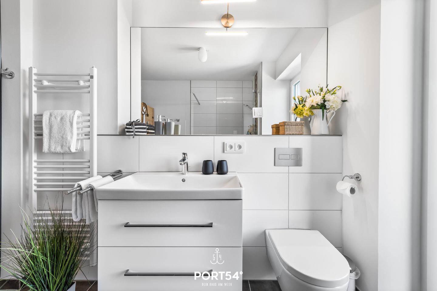 Herzlich willkommen im "Hafenglück" – Ihrer Oase mit traumhaftem Hafenblick in Olpenitz! Tauchen Sie ein in eine Ferienwohnung der Extraklasse, die in der 1. Etage mit Fahrstuhl, auf großzügigen ca. 78m² alles bietet, um Ihren Ostseeurlaub unvergesslich zu gestalten. Der lichtdurchflutete Wohn-/Essbereich lädt zum geselligen Beisammensein ein, während die vollausgestattete Küche mit allem Nötigen aufwartet, um gemeinsame Kochabende zu einem kulinarischen Erlebnis zu machen. Im Wohnzimmer erwartet Sie ein gemütliches Sofa, vor dem Sie die Urlaubstage entspannt vor dem Kamin ausklingen lassen können. Die beiden Schlafzimmer sind perfekte Rückzugsorte für erholsame Nächte. Im ersten Schlafzimmer erwartet Sie ein komfortables Doppelbett (180x200cm), während das zweite Schlafzimmer mit zwei Einzelbetten (je 90x200cm) aufwartet. Beide Schlafzimmer sind mit einem Flachbild-TV ausgestattet, um Ihnen nächtliches Entertainment zu bieten, und verfügen über Verdunkelungsmöglichkeiten für einen tiefen und erholsamen Schlaf. Das Badezimmer präsentiert sich mit einer modernen, ebenerdigen Dusche, WC, einem Handtuchtrockner und einem Föhn. Doch das Highlight für Ihr Wohlbefinden ist zweifellos die Infrarot-Sauna – ein perfekter Ort, um sich nach ausgiebigen Strandspaziergängen zu erholen und aufzuwärmen. Auch unsere kleinen Gäste werden nicht vergessen: Ein Hochstuhl und ein Reisebett stehen für die Kleinen bereit. Der möblierte Balkon bietet einen idyllischen Platz, um sonnige Tage zu genießen und laue Sommerabende bei einem Grillfest zu verbringen – alles mit einem wunderschönen Blick auf den Hafen. Ein reservierter Stellplatz vor dem Haus sorgt für bequemes Parken und rundet das Gesamtpaket ab.