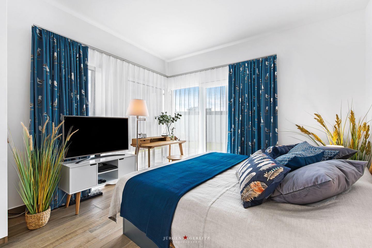 Die Villa "Seemööv" bietet 3 Schlafzimmer mit 2 Doppelbetten und 2 Einzelbetten und einen offenen Wohn- und Essbereich mit Küche. Es gibt drei Bäder mit jeweils eine ebenerdige Dusche. Eines bietet außerdem eine finnische Sauna und eine Whirlwanne. In unserer Villa sind auch Ihre Hunde herzlich willkommen. Für Ihr E-Auto steht eine Ladestation zur Verfügung.