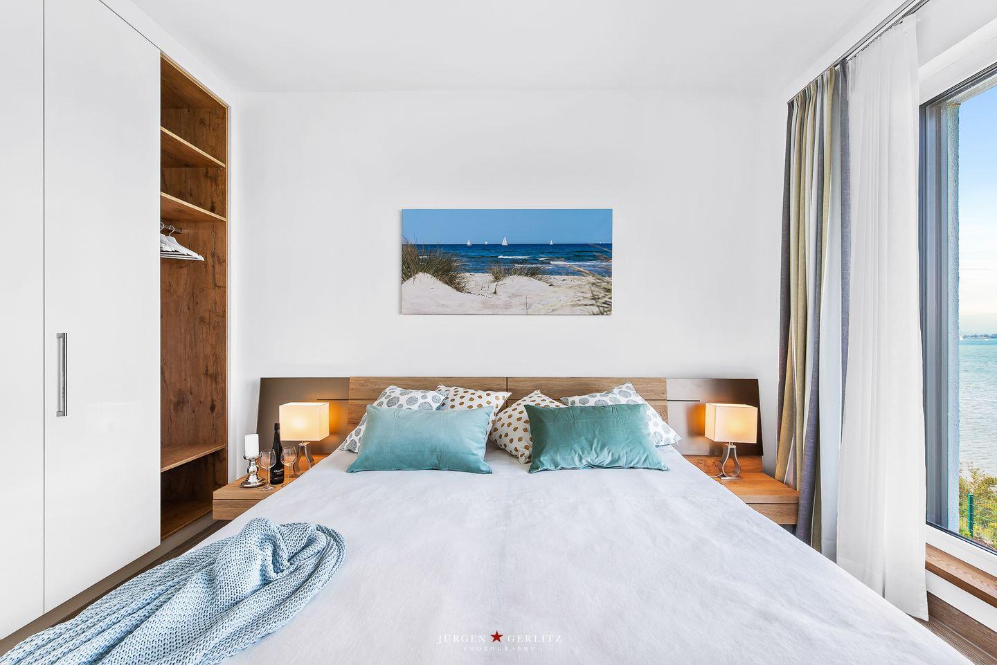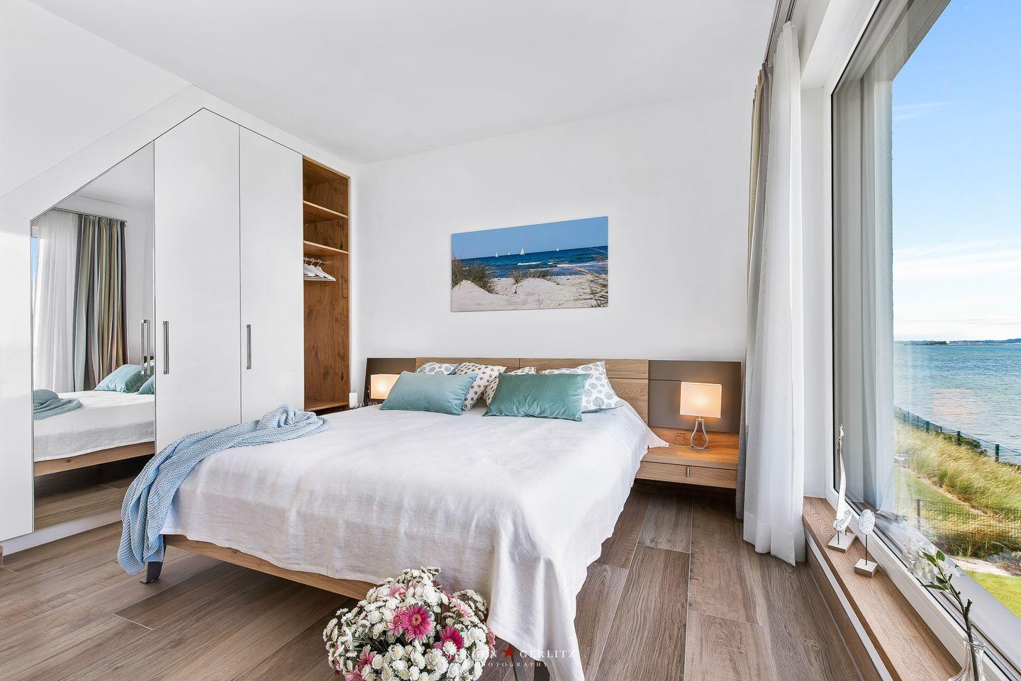 Das Ferienhaus "Villa Seemööv" befindet sich im neuerbauten Ostsee Resort Olpenitz. Die "Villa Seemööv" wurde 2020 fertig gestellt und besticht durch die Kombination von Moderne, Luxus und Gemütlichkeit. Sobald Sie durch die Haustür das Haus betreten, stehen Sie im Eingangsbereich, welcher mit einer großzügigen Garderobe, sowie genügend Verstaumöglichkeiten für Ihre Schuhe einlädt. Im Anschluss daran befindet sich ein großes Bad mit ebenerdiger Dusche. Dieses ist, so wie der größte Teil der unteren Ebene, barrierefrei gestaltet und somit auch für Rollstuhlfahrer geeignet.Der Hauswirtschaftsraum mit Waschmaschine und Trockner ist durch dieses Bad zu erreichen. Ebenfalls befindet sich ein maritim eingerichtetes Schlafzimmer auf dieser Ebene. Es wurde liebevoll gestaltet und ist mit einem Doppelbett (180x200cm) möbliert, welches mit Matratzen und Kopfkissen von Tempur ausgestattet ist. In dem Zimmer befinden sich ebenfalls ein Schreibtisch, Kleiderschrank und ein Fernseher mit Telekom-Entertain. Wie alle Schlafräume in dem Haus, ist es mit Verdunklungsvorhängen und Insektenschutzgittern ausgestattet. Schließlich gelangt man durch den Flur in den großen, lichtdurchfluteten Wohn-/Essbereich, in welchen eine offene Küche integriert ist. Dort erwartet Sie ein atemberaubender Ausblick, den Sie garantiert nicht so schnell vergessen werden! Denn die "Villa Seemööv" ist direkt an einen geschützten, nicht betretbaren Küstenstreifen errichtet worden, von wo aus man einen herrlichen Ausblick auf die Schlei hat. Vor allem an schönen Tagen kann man die Aussicht auf die vielen Segelboote genießen. Das Sofa sowie der Stressless-Sessel, laden zum Entspannen vor dem Kamin oder dem Fernseher mit Telekom Entertain ein. Zusätzlich ist der Wohnraum mit einem Blue-ray Player, sowie einer HIFI Stereoanlage mit CD und Internetradio ausgestattet. Für eine gesellige Zeit mit der Familie oder den Freunden bietet sich der Platz am Esstisch an, wo auch eines der vielen Spiele aus der umfangreichen Spielesammlung gespielt werden kann. Die sehr gut ausgestattete Küche dürfte vermutlich keine Wünsche offenlassen: mit Induktionsherd, Weinkühlfach, Mikrowellen- Herdkombination, Senseo-Kaffeepadmaschine und Filterkaffeemaschine, sowie weiteren Details wie zum Beispiel Raclette und Fondue, bietet sie unseren Gästen einen guten Komfort an. Im Obergeschoss, welches über eine Treppe zu erreichen ist, befinden sich zwei weitere Schlafräume mit Kleiderschränken und Fernseher mit Telekom Entertain. In einem der Schlafräume befinden sich zwei Boxspring-Einzelbetten (je 100x200cm), welche zu einer Liegefläche zusammengeschoben werden können. Von diesem Zimmer aus kann man einen Balkon betreten, auf welchem zwei Liegestühle für Sie bereitstehen. Der Master Bedroom besticht vor allem durch seinen traumhaften Ausblick auf die Schlei, welchen Sie in dem komfortablen Doppelbett (180x200cm) mit Matratzen und Kopfkissen von Tempur genießen können. Ebenso befinden sich zwei Badezimmer in dem Obergeschoss. Das kleine Bad enthält eine ebenerdige Dusche, Waschbecken und WC. Daneben befindet sich das große Wellnessbad. Hier können Sie in dem Whirlpool oder der Sauna entspannen und dabei den wunderschönen Blick auf die Schlei genießen. Ein kleiner betretbarer Balkon, sowie ein Doppelwaschbecken runden dieses Bad ab. Für unsere kleinen Gäste können Sie zwei Reisebetten, sowie 3 Hochstühle nutzen. Für die ganz Kleinen stellen wir einen Laufstall bereit. Treppenschutzgitter sind ebenfalls vorhanden. Das gesamte Haus wurde zudem mit Steckdosen mit Kindersicherung ausgestattet. Im Carport befinden sich zusätzlich zwei faltbare Bollerwagen. Auf ein Puppenhaus aus Holz, sowie eine Holzeisenbahn, dürfen sich unsere kleinen Gäste ebenfalls freuen. Durch zwei große Schiebetüren betritt man die große Sonnenterrasse, auf welcher Sie eine neue Sitzgruppe, 2 Liegestühle, sowie einen Strandkorb nutzen können. Der zur Straße hin offene Garten wurde mit einer großen Wiese und wunderschönen Blumenbeeten gestaltet. Ein Carport für zwei Autostellplätze, sowie ein angeschlossener, abschließbarer Anbau befinden sich auf dem Grundstück. Ihr E-Auto können Sie entspannt vor Ihrer Unterkunft an der eigenen Ladesäule laden. In dem Anbau befindet sich ein Elektrogrill und Stellmöglichkeiten für Ihre Fahrräder. Über eine weitere Treppe können Sie das Dach des Hauses betreten. Hier empfängt Sie ein herrlicher Blick auf die Schlei und die Ostsee, welchen Sie auf zwei Liegestühlen oder einer kleinen Ecklounge genießen können. Eingebettet in eine unvergleichliche Natur, ausgestattet mit allem, was den Aufenthalt das ganze Jahr über angenehm und abwechslungsreich macht. So befindet sich in ca. 300m Entfernung ein kleiner Badestrand. Ca. 3km entfernt liegt zudem der große Ostseestrand mit seinem breiten Sandstrand. Im Resort bieten Ihnen ein EDEKA-Markt sowie ein Bäcker und kleine Läden Einkaufsmöglichkeiten. Für ein Sportangebot sorgen Kanu-, Boots- und Fahrradverleihe und eine Adventure-Golf-Anlage. Außerdem lädt die Umgebung zu ausgedehnten Spaziergängen ein. Die nächstgelegene Stadt ist Kappeln, ein staatlich anerkannter Erholungsort mit ca. 10.000 Einwohnern, der viele touristische Angebote für Segler und Strandurlauber bereithält - hier können Sie nach Herzenslust bummeln. In unserer Villa sind auch vierbeinige Fellnasen herzlich willkommen. Wir freuen uns auf Ihren Besuch mit Ihrem treuen Begleiter!