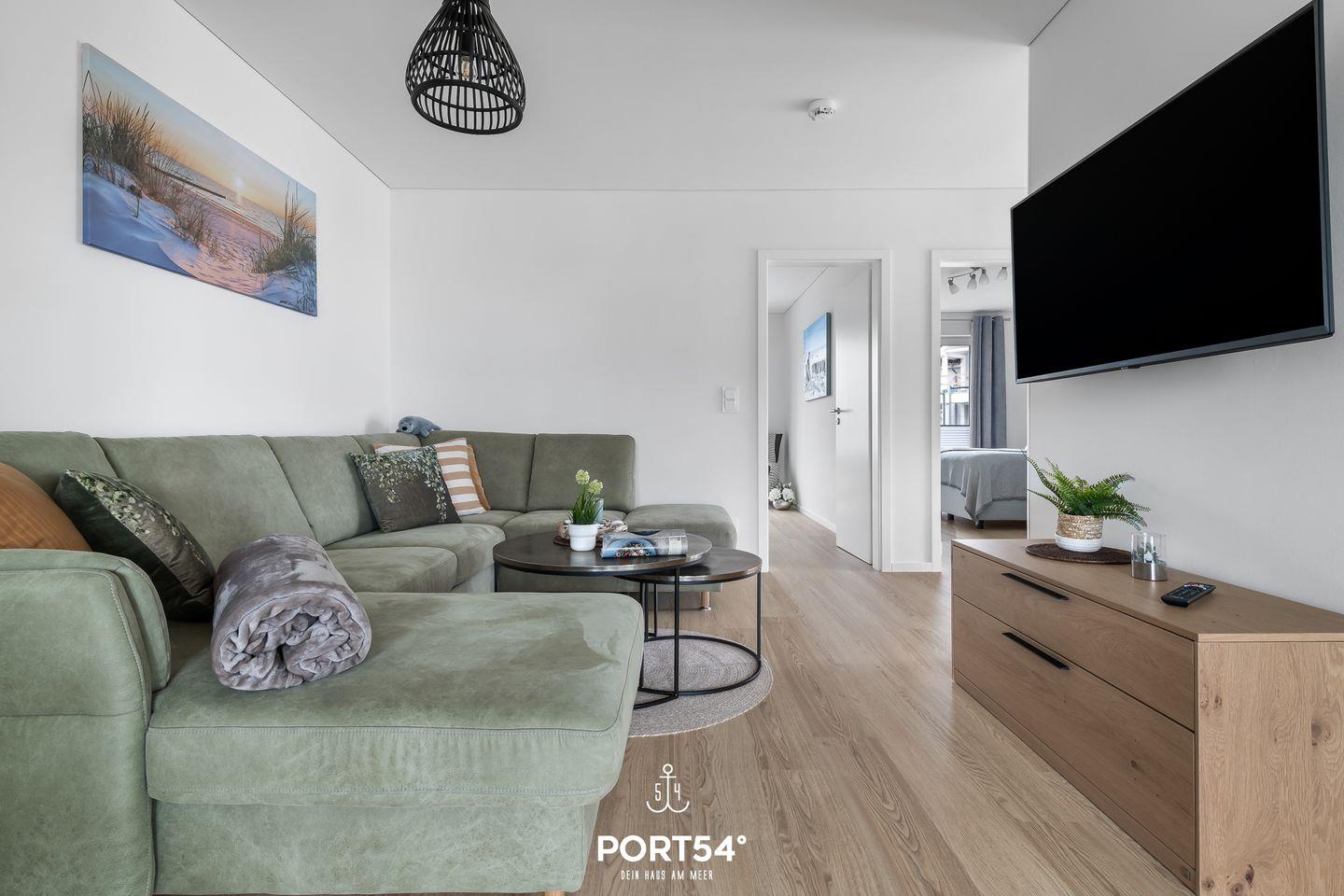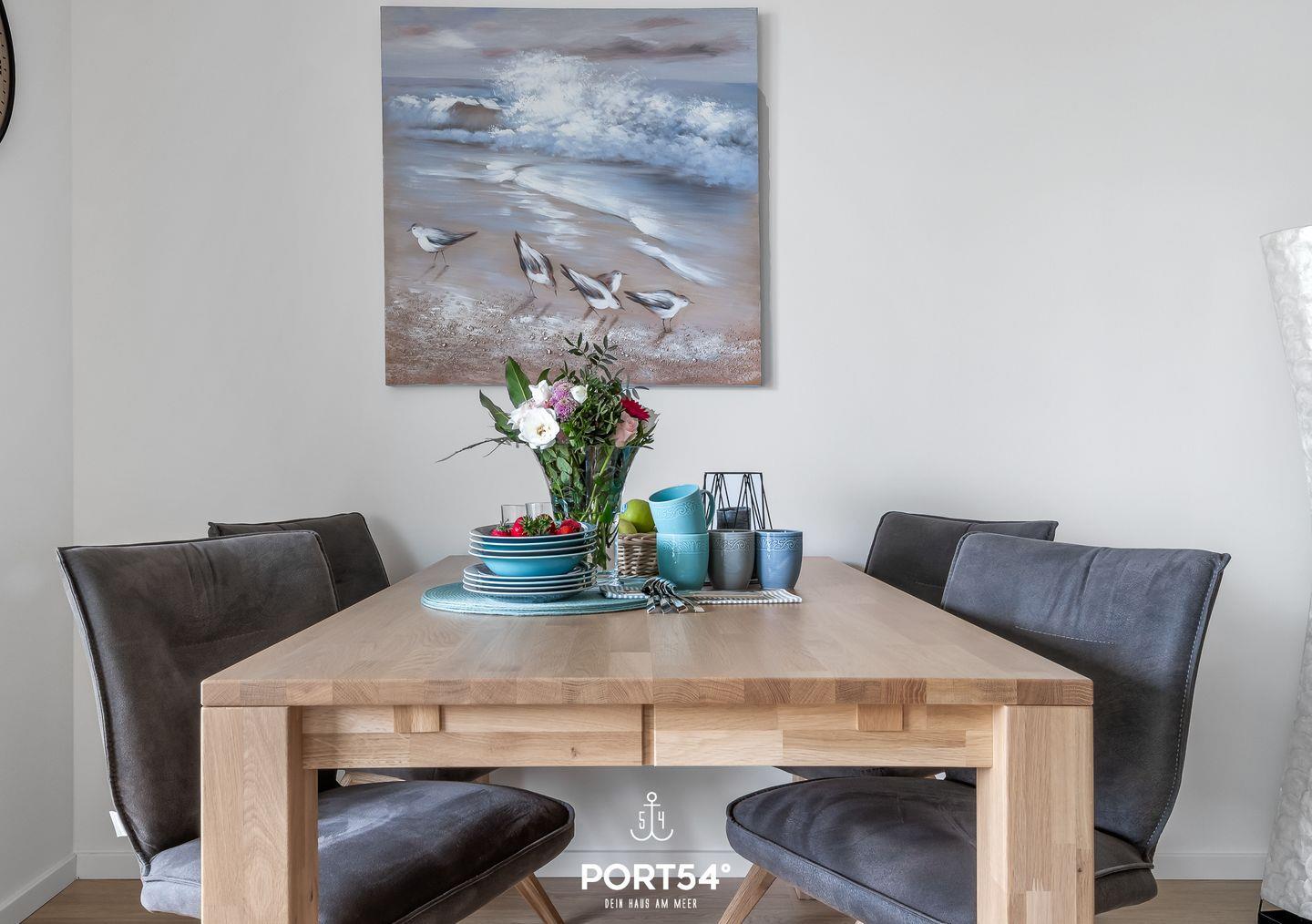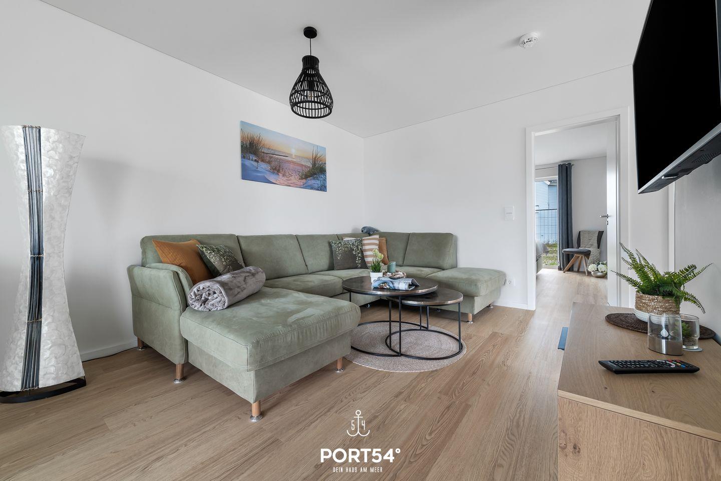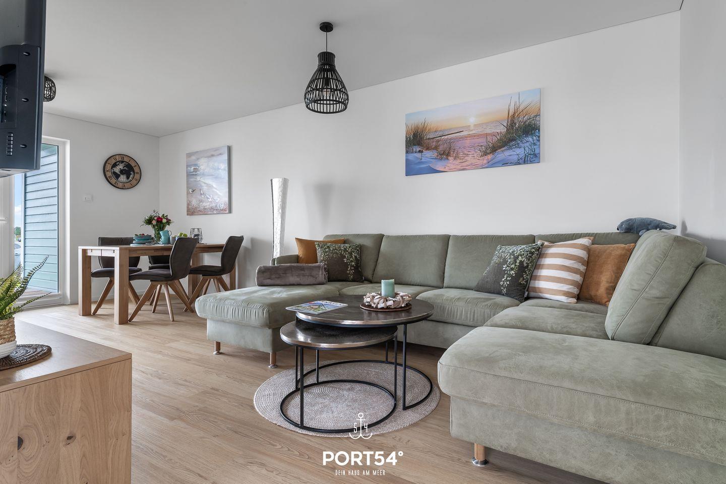 Die "Binsenoase" teilt sich auf in einen offenen Wohn- und Essbereich mit Küche, zwei Schlafzimmer, ein Badezimmer und zwei Terrassen. In der vollausgestatteten Küche können Sie sich leckere Gerichte zaubern und im Wohnzimmer anschließend auf dem Ecksofa mit Canape Ihre Lieblingsserie am Kamin schauen. Bitte beachten Sie, dass sich das OstseeResort Olpenitz derzeit noch im Aufbau befindet und es zu Bautätigkeiten in der Nähe Ihrer Unterkunft kommen kann.