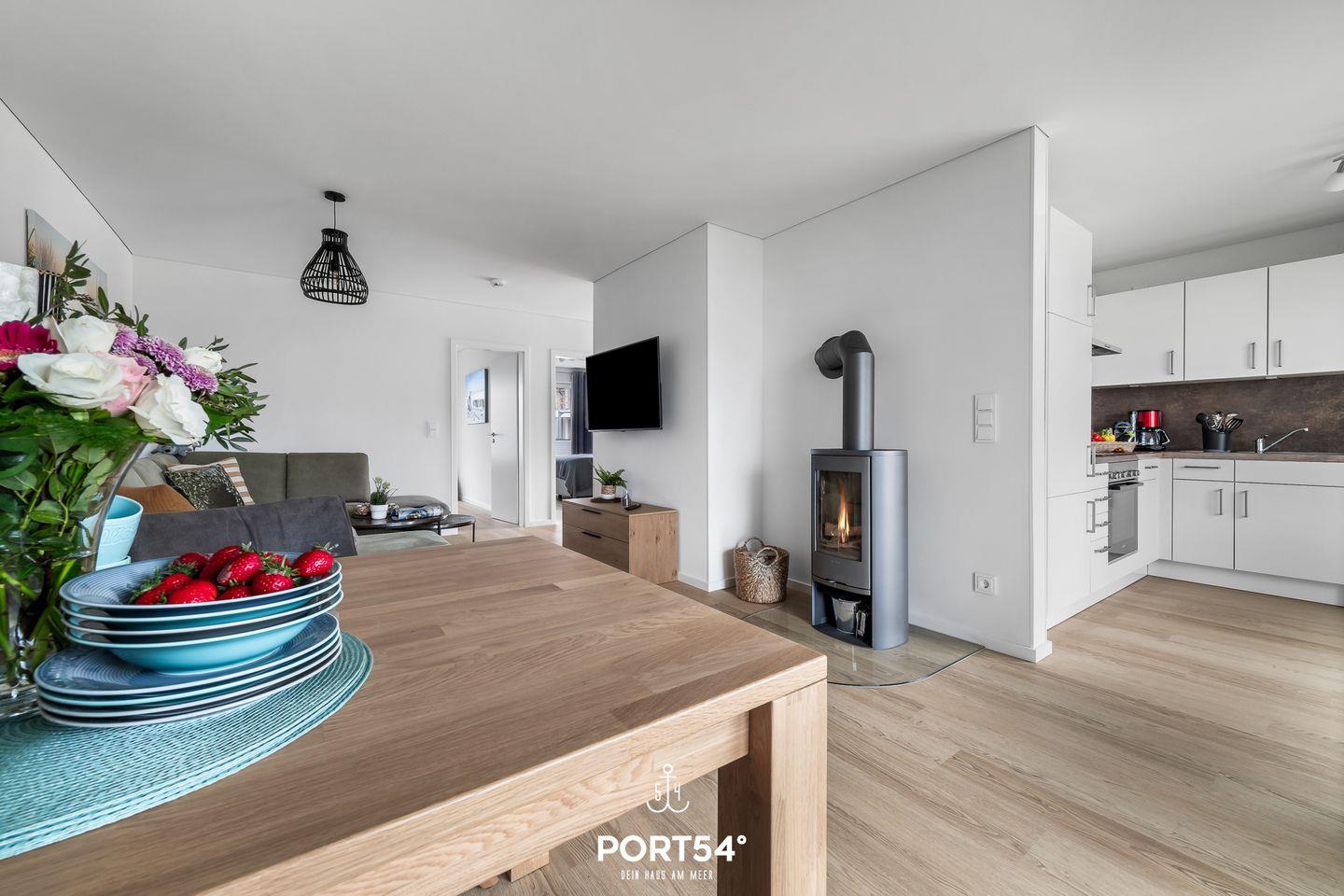 Die Ferienwohnung bietet alles für einen unvergesslichen Urlaub an der Ostsee mit 2 Terrassen! Die "Binsenoase" teilt sich auf in einen offenen Wohn- und Essbereich mit Küche, zwei Schlafzimmer, ein Badezimmer und eine Terrasse. In der vollausgestatteten Küche können Sie sich leckere Gerichte zaubern und im Wohnzimmer anschließend auf dem Ecksofa mit Canape auf dem Flachbild-TV ihre Lieblingsserie schauen, während der Kamin für eine angenehme und wohlige Wärme sorgt. Die Schlafzimmer verfügen jeweils über ein gemütliches Boxspring-Doppelbett (180x200cm), Verdunkelungsmöglichkeiten und Insektengitter. Ein Schlafzimmer bietet zusätzlich einen Flachbild-TV fürs nächtliche Entertainment. Im Badezimmer finden Sie eine ebenerdige Dusche, einen Handtuchtrockner, ein WC, sowie einen Föhn. Das absolute Highlight: die Infrarotsauna, in der Sie sich nach langen Spaziergängen aufwärmen und entspannen können. Die gesamte Ferienwohnung ist barrierearm eingerichtet. Für unsere kleinen Gäste sind ein Kinderreisebett und ein Tripp-Trapp-Kinderhochstuhl für 2 bis 5 Jährige vorhanden. Dieses Domizil ist für Allergiker geeignet und hundefrei. Für Ihre Fahrräder ist eine abschließbare Abstellmöglichkeit im hauseigenen Abstellschuppen direkt am Objekt vorhanden.