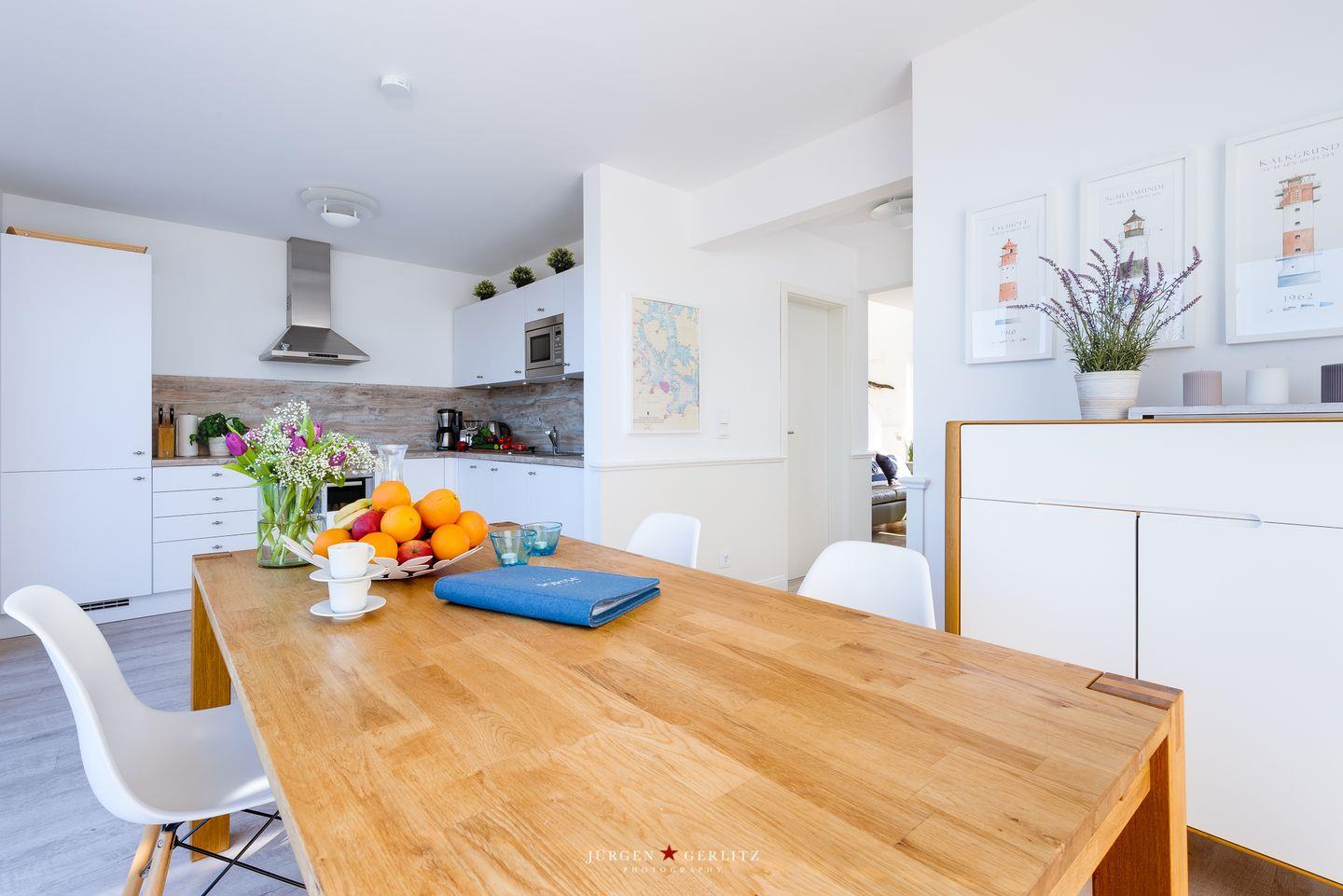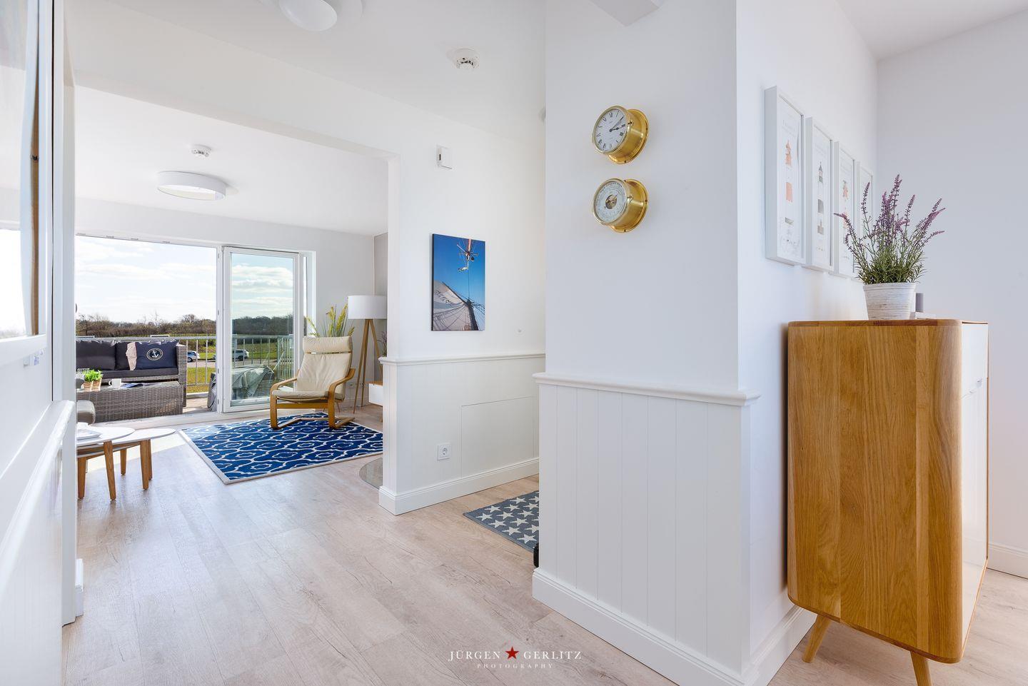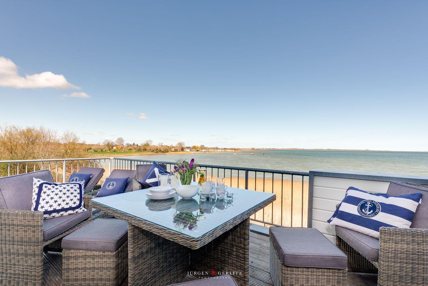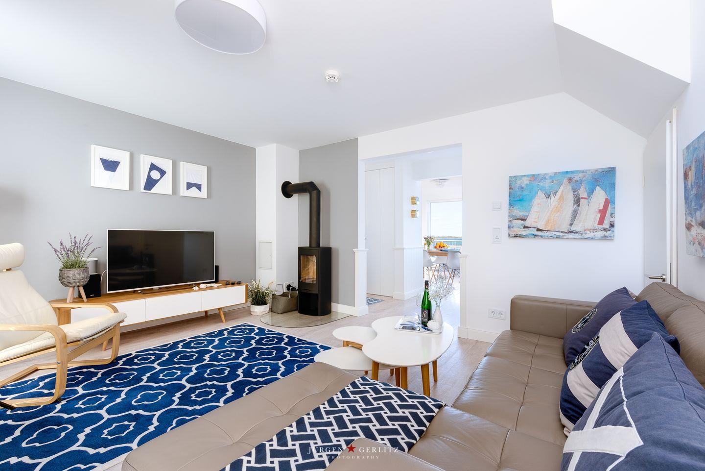 Herzlich willkommen in dieser exklusiven Ferienwohnung im OstseeResort Olpenitz, nur 20 Meter vom Wasser entfernt, direkt am Ufer des Ostseearms Schlei. Die Wohnung erstreckt sich über zwei Etagen (1. und 2. Obergeschoss) und wurde mit ausgewählten Luxusmöbeln im skandinavischen Stil ausgestattet. Bereits beim Betreten werden Sie von einer einladenden Atmosphäre empfangen. Die Panoramafenster im Essbereich, im Schlafzimmer und im großzügigen Badezimmer eröffnen Ihnen einen atemberaubenden Panoramablick auf vorbeiziehende Segelboote und die malerische Schleimündung. Die großartige Terrasse bietet den perfekten Ort, um sich zu entspannen und den Blick auf das Wasser zu genießen. Auch aus den Panoramafenstern des Wohnzimmers erleben Sie die Schönheit der Umgebung. Ein Kamin verleiht dem Wohnbereich nicht nur Gemütlichkeit, sondern sorgt auch für eine warme und einladende Atmosphäre. Zusätzlich steht Ihnen ein zweiter Balkon zur Verfügung, der einen Blick ins Grüne ermöglicht. Im Dachgeschoss erwartet Sie das absolute Highlight dieser Wohnung: Ein Wellnessbad, das mit Whirlpool, Regendusche und einer privaten finnischen Glas-Sauna mit Blick auf das Wasser beeindruckt. Hier können Sie sich nach einem ereignisreichen Tag perfekt entspannen und den Alltag hinter sich lassen. Auf derselben Etage befinden sich auch die beiden Schlafzimmer, die mit komfortablen Doppelbetten, großzügigem Stauraum und traumhaften Ausblicken aufs Wasser oder ins Grüne punkten.