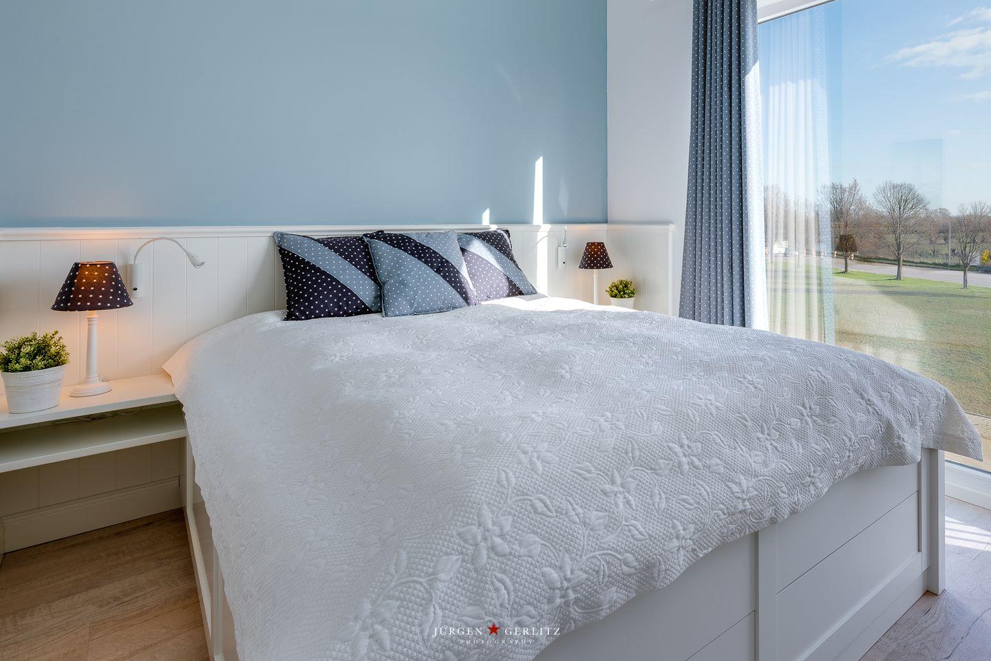 Die Wohnung befindet sich 20 Meter vom Wasser entfernt und bietet alles für einen Traumurlaub! Das Wohnzimmer mit Kamin und Zugang zu einem Balkon, gewährt einen wunderschönen Blick ins Grüne. Auf der Etage befindet sich auch das eine Duschbad. Das Bad im DG beeindruckt mit Whirlpool, Regendusche und einer finnischen Glas-Sauna mit Blick auf das Wasser - Wellness pur! Die beiden Schlafzimmer mit den Doppelbetten bietet Platz für bis zu 4 Personen. Ein Stellplatz ist vorhanden.