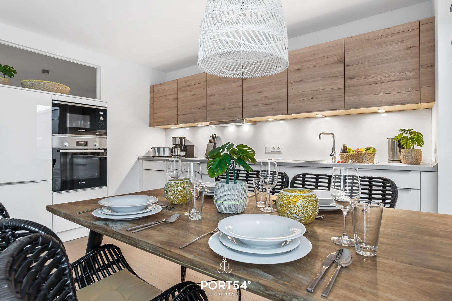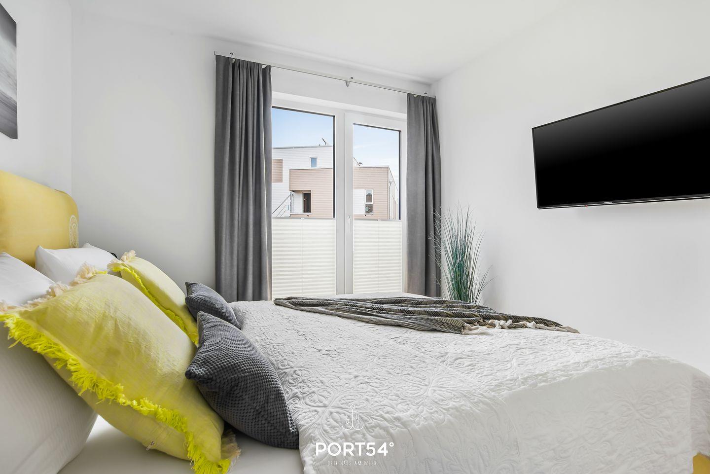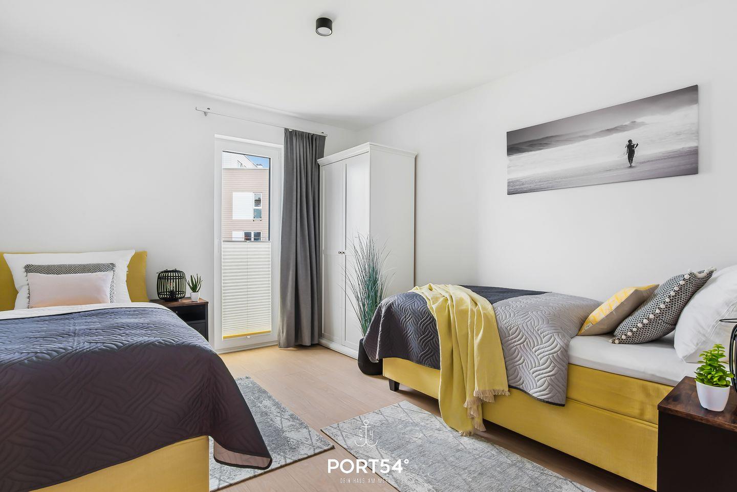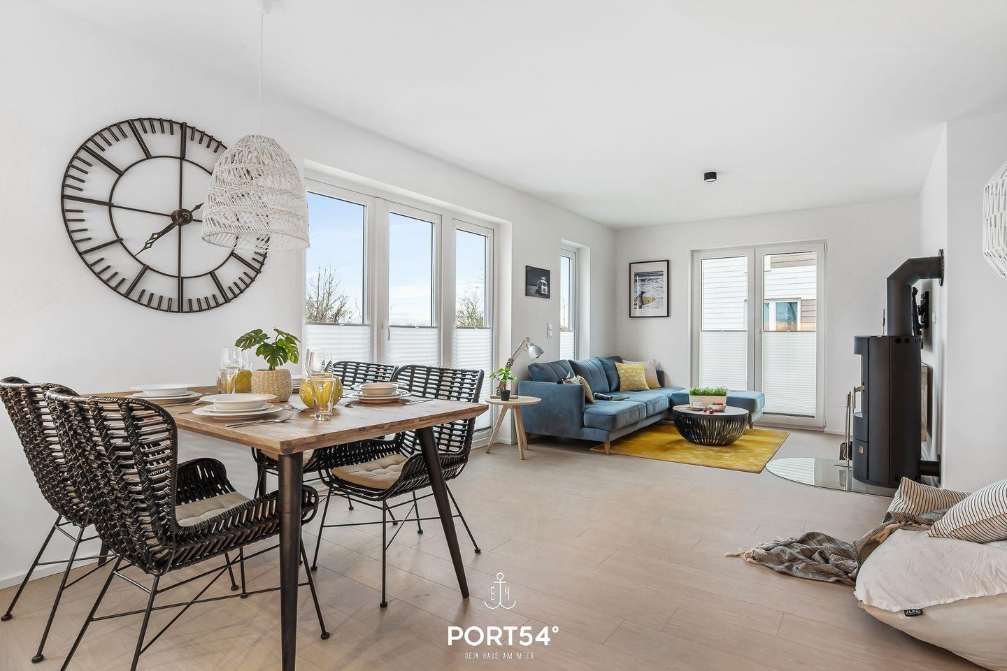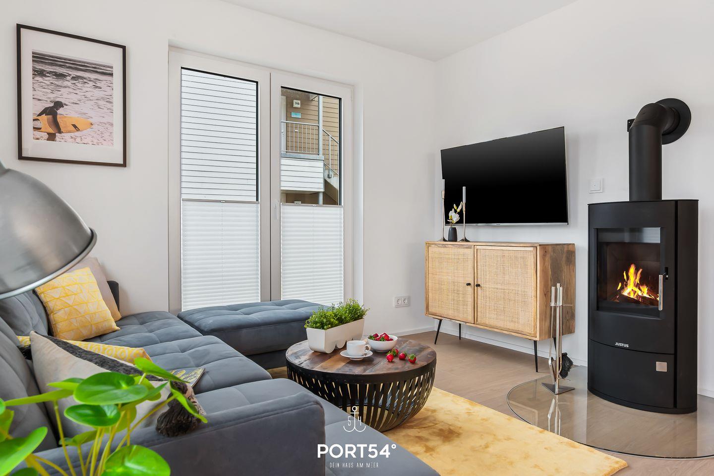 Die Ferienwohnung bietet eine gemütliche Atmosphäre. Das Wohnzimmer mit Kamin lädt zum Entspannen ein. Die offene Küche ist modern & voll ausgestattet. Beide Schlafzimmer sind hochwertig eingerichtet, eins mit einem Doppelbett & das zweite mit zwei Einzelbetten. Im Badezimmer finden Sie neben der ebenerdigen Dusche auch eine Infrarot-Sauna vor. Bitte beachten Sie, dass der Aufbau des OstseeResort Olpenitz noch nicht abgeschlossen ist und es in der Nähe zu Bautätigkeiten kommen kann.