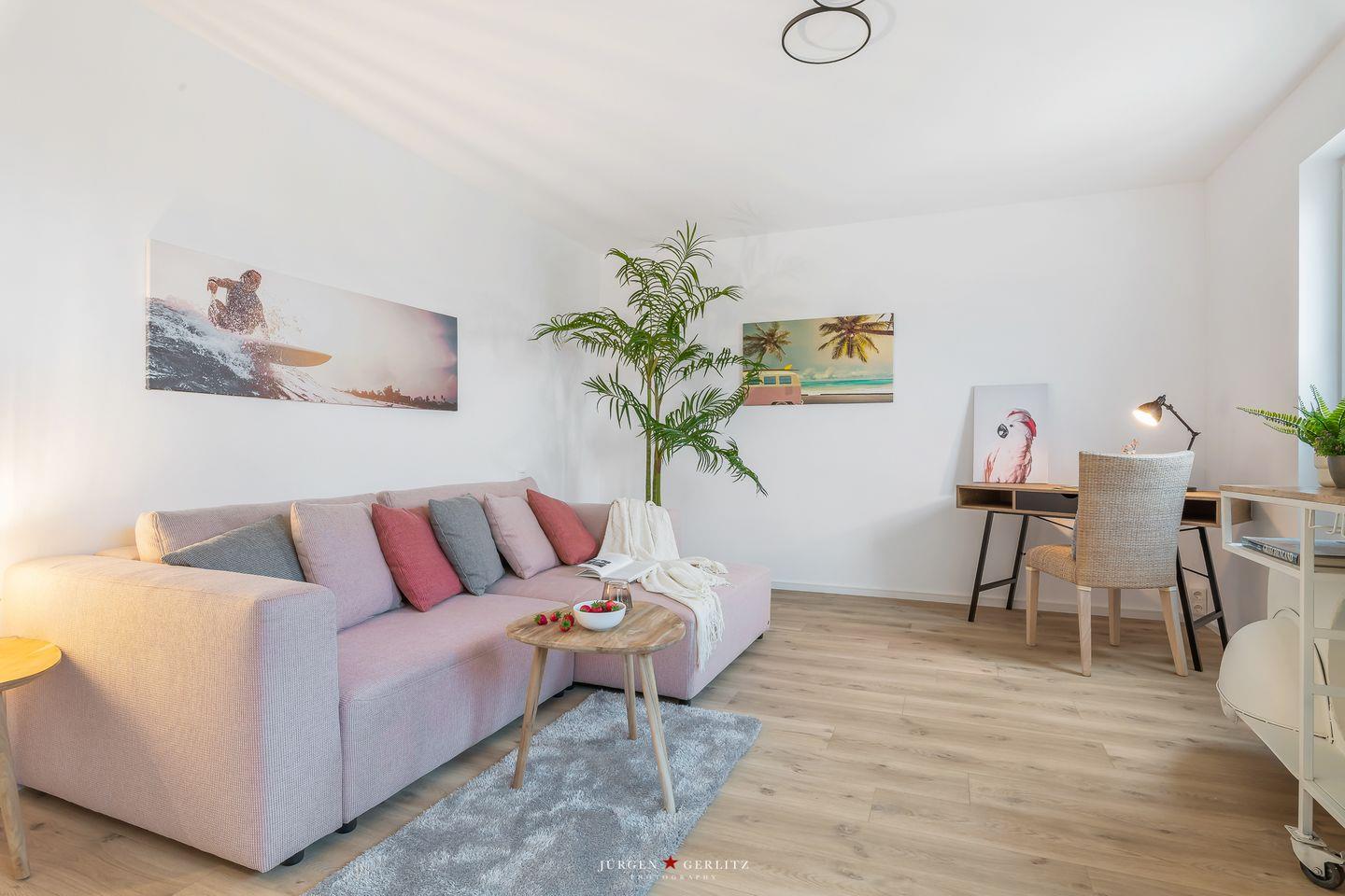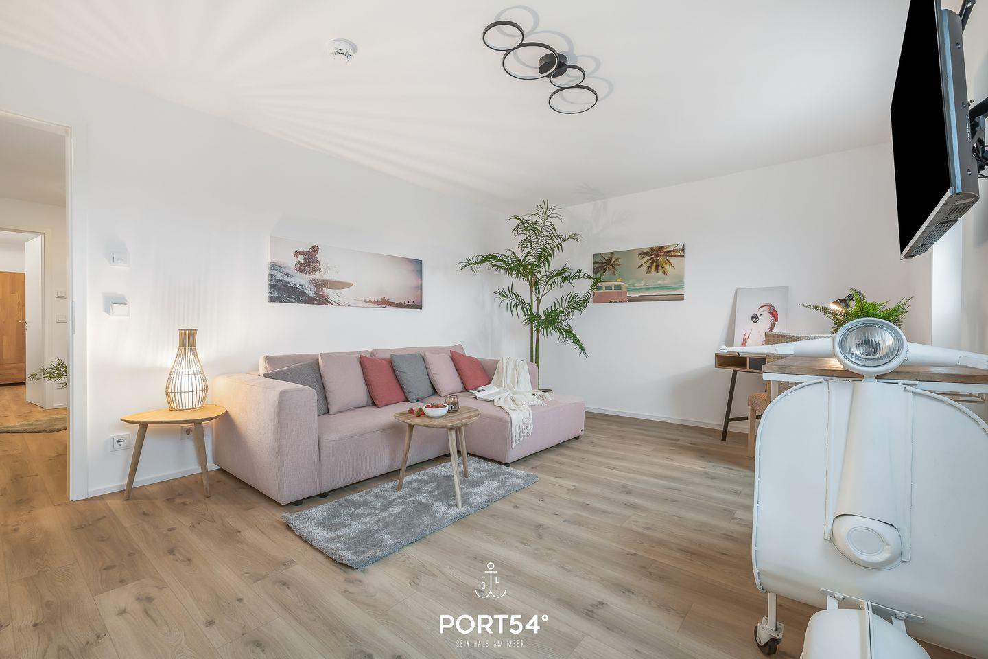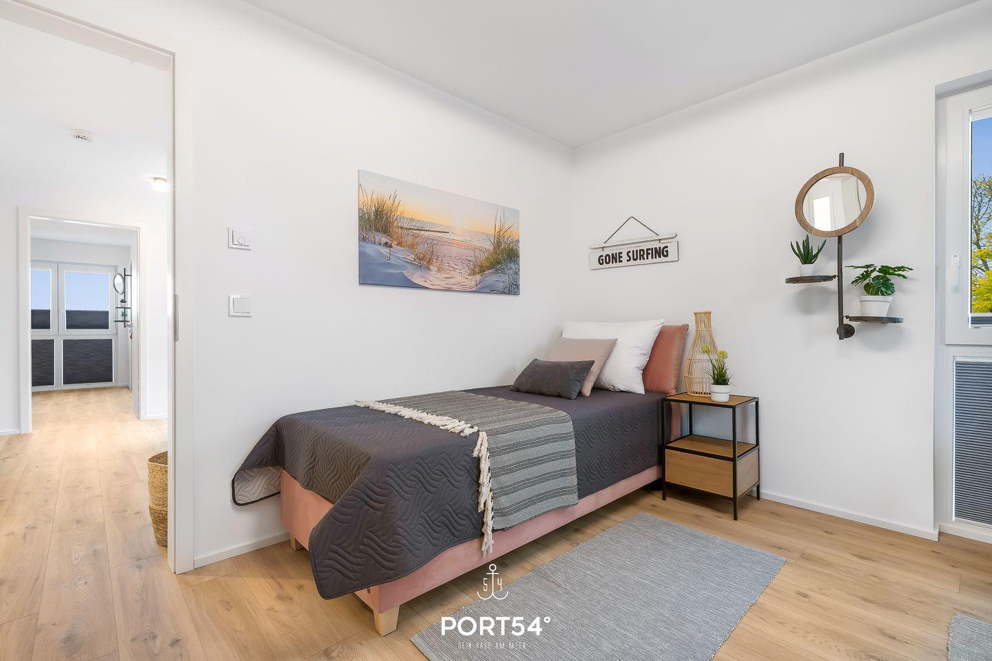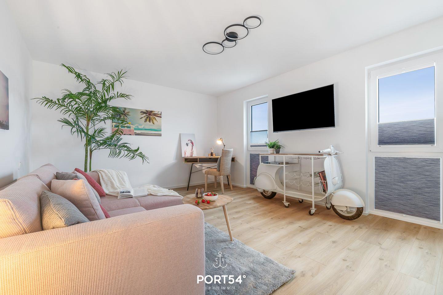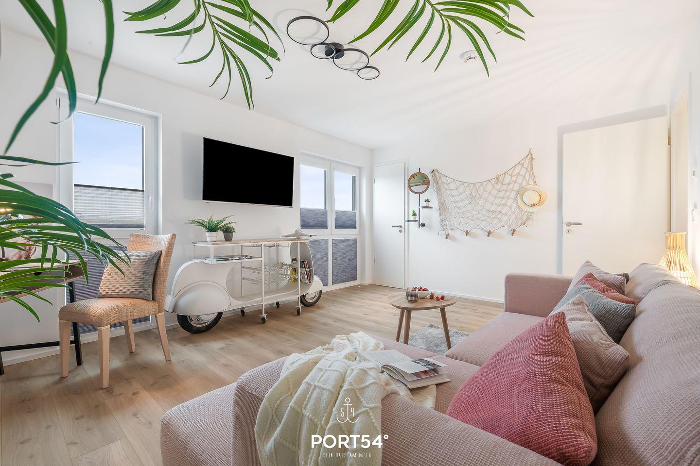 Die Maisonette-Wohnung mit 130m² bietet Platz für bis zu 6 Personen. Sie hat eine voll ausgestattete Küche, einen Kamin & eine große Dachterrasse. Es gibt 2 Schlafzimmer, eines hiervon mit einem Doppelbett & das andere verfügt über zwei Einzelbetten. Ein Bad hat eine ebenerdige Dusche & eine Infrarot-Sauna, das zweite hat eine Badewanne. Bitte beachten Sie, dass der Aufbau des OstseeResort Olpenitz noch nicht abgeschlossen ist und es in der Nähe zu Bautätigkeiten kommen kann.