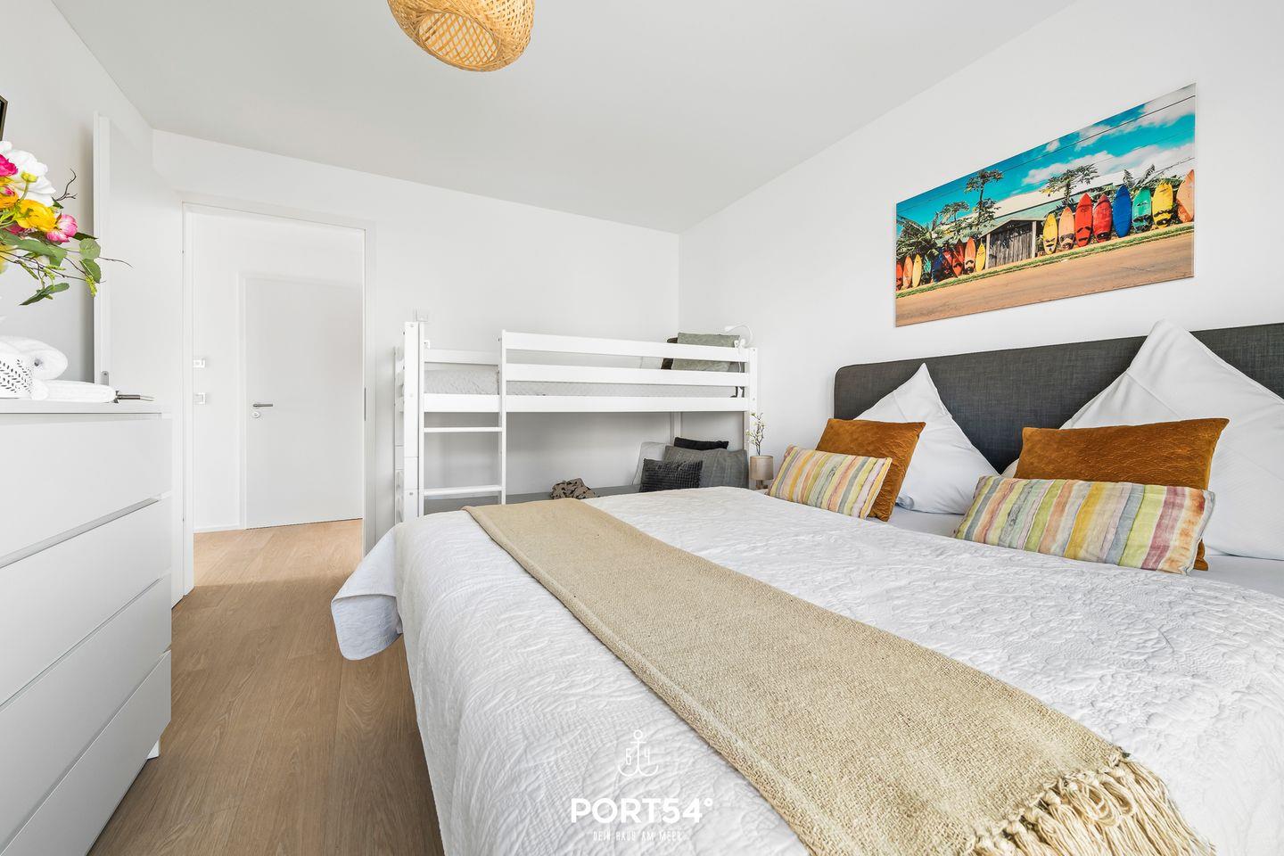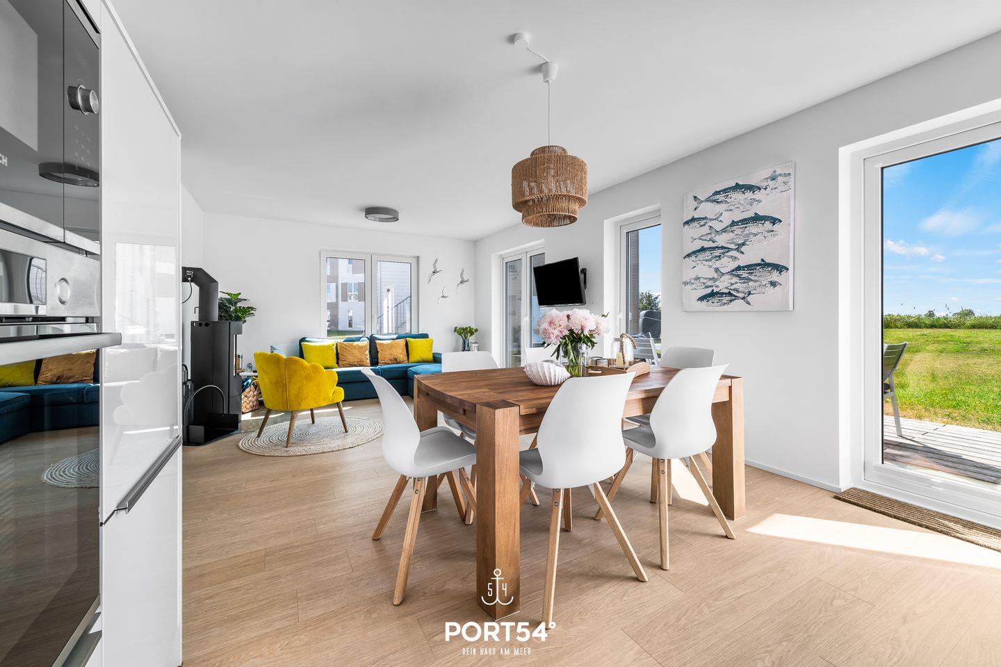 Willkommen in der "Casa Natura Baltica"! Die Ferienwohnung liegt im Erdgeschoss und verfügt über einen offenen Wohn- und Essbereich mit Küche, zwei Schlafzimmer und ein Badezimmer. Im Wohnbereich können Sie Ihre Urlaubstage auf dem Sofa vor dem Flachbild-TV ausklingen lassen. Für wohlige Wärme und eine gemütliche Atmosphäre sorgt der Kamin. Die Küche bietet alles, was Sie für einen geselligen Kochabend mit der Familie benötigen. Für die Kleinen stehen ein Hochstuhl und ein Kinderreisebett bereit. Die gesamte Ferienwohnung verfügt über eine Fußbodenheizung. Die "Casa Natura Baltica" verfügt über zwei Schlafzimmer. In dem einen finden Sie ein gemütliches Doppelbett (180×200cm), sowie einen Flachbild-TV vor. In dem anderen gibt es ein kleines Doppelbett (160×200cm), ein Etagenbett und ebenfalls einen Flachbild-TV für das nächtliche Entertainment. Beide Schlafzimmer verfügen über Verdunklungsmöglichkeiten für erholsame Nächte. Das Badezimmer bietet eine ebenerdige Dusche und das Highlight: eine Infrarot-Sauna. Hier können Sie sich nach langen Strandspaziergängen aufwärmen und entspannen. Von dem Wohn- und Essbereich aus, gelangen Sie auf die möblierte Terrasse. An Sommertagen können Sie auf den Sonnenliegen entspannen und Grillabende, dank des Elektrogrills, mit der Familie veranstalten. Von der Terrasse aus haben Sie direkten Blick ins Grüne und können dort Ihren morgendlichen Kaffee an der Ostseeluft genießen. Vor dem Haus ist ein Stellplatz für Ihr Auto reserviert.
