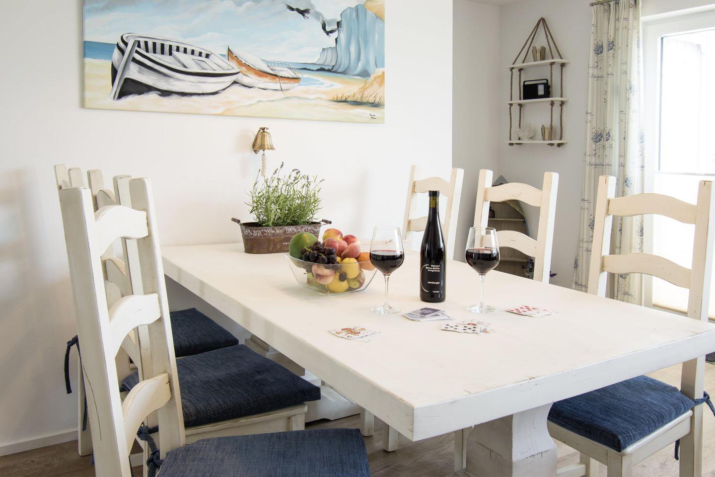 Herzlich willkommen in dieser luxuriösen Doppelhaushälfte direkt am Hafenbecken im OstseeResort Olpenitz – Ihrem exklusiven Rückzugsort für unvergessliche Urlaubsmomente! Schon beim Betreten werden Sie vom lichtdurchfluteten Wohn- und Essbereich mit einem einladenden Kaminofen empfangen. Die bodentiefen Panoramafenster gewähren Ihnen einen atemberaubenden Ausblick auf die malerische Marina des Resorts, und die großzügige Terrasse lädt dazu ein, Ihr Frühstück mit einem Panoramablick auf den Hafen zu genießen. Die gut ausgestattete Küche steht Ihnen bereit, um leckere Köstlichkeiten für Ihre Liebsten zu zaubern. Im Gäste-WC finden Sie eine Waschmaschine, sodass längeren Aufenthalten nichts im Wege steht. Das 1. Obergeschoss beherbergt zwei gemütliche Schlafzimmer. Das eine Zimmer verfügt über ein einladendes Doppelbett, während das andere mit zwei Einzelbetten aufwartet, die auch problemlos zu einem Doppelbett arrangiert werden können. Ein weiteres Highlight erwartet Sie im großzügigen Badezimmer, das mit einer verlockenden Whirlwanne, einer erfrischenden Dusche und einem Doppelwaschbecken ausgestattet ist. Im Dachgeschoss erwartet Sie ein Studio, das als weiteres behagliches Wohnzimmer eingerichtet ist. Von hier aus gelangen Sie zur Dachterrasse, die zum Entspannen und Sonne tanken einlädt. Genießen Sie von hier aus einen traumhaften Rundumblick über das gesamte OstseeResort. Doch das ist noch nicht alles – ein weiteres Highlight erwartet Sie in Form einer eigenen Sauna mit angrenzender Dusche, die Ihr Urlaubsdomizil in eine absolute Wohlfühloase verwandelt. Für Ihren Komfort stehen zwei kostenfreie Parkplätze direkt vor Ihrer Unterkunft zur Verfügung.