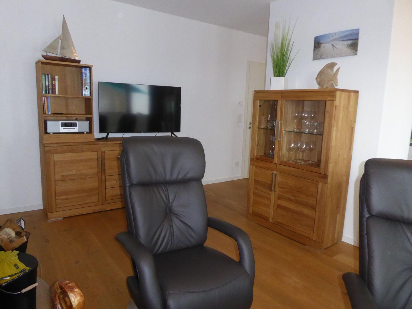 Vom Wohn-/Essbereich hat man direkten Zugang auf den Balkon mit Strandkorb und seitlichem Meerblick. Die Küche ist voll ausgestattet. Es erwarten Sie 2 Schlafzimmer mit je einem Doppelbett. Das Bad bietet eine Dusche & einen Waschtrockner. Kinder ab 7 Jahren sind aufgrund der Lage im 2. OG herzlich willkommen. Das Haus verfügt über einen Aufzug. Ihr Auto können Sie in der Tiefgarage (Einfahrt 2m hoch) abstellen. Weitere Informationen zum Haus finden Sie auf der Website www.fewo-sterntaucher.de.