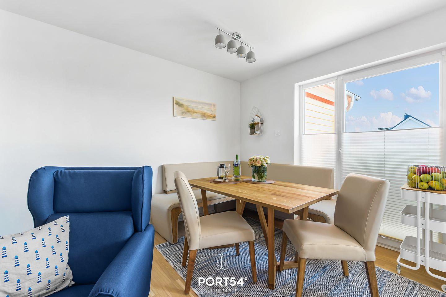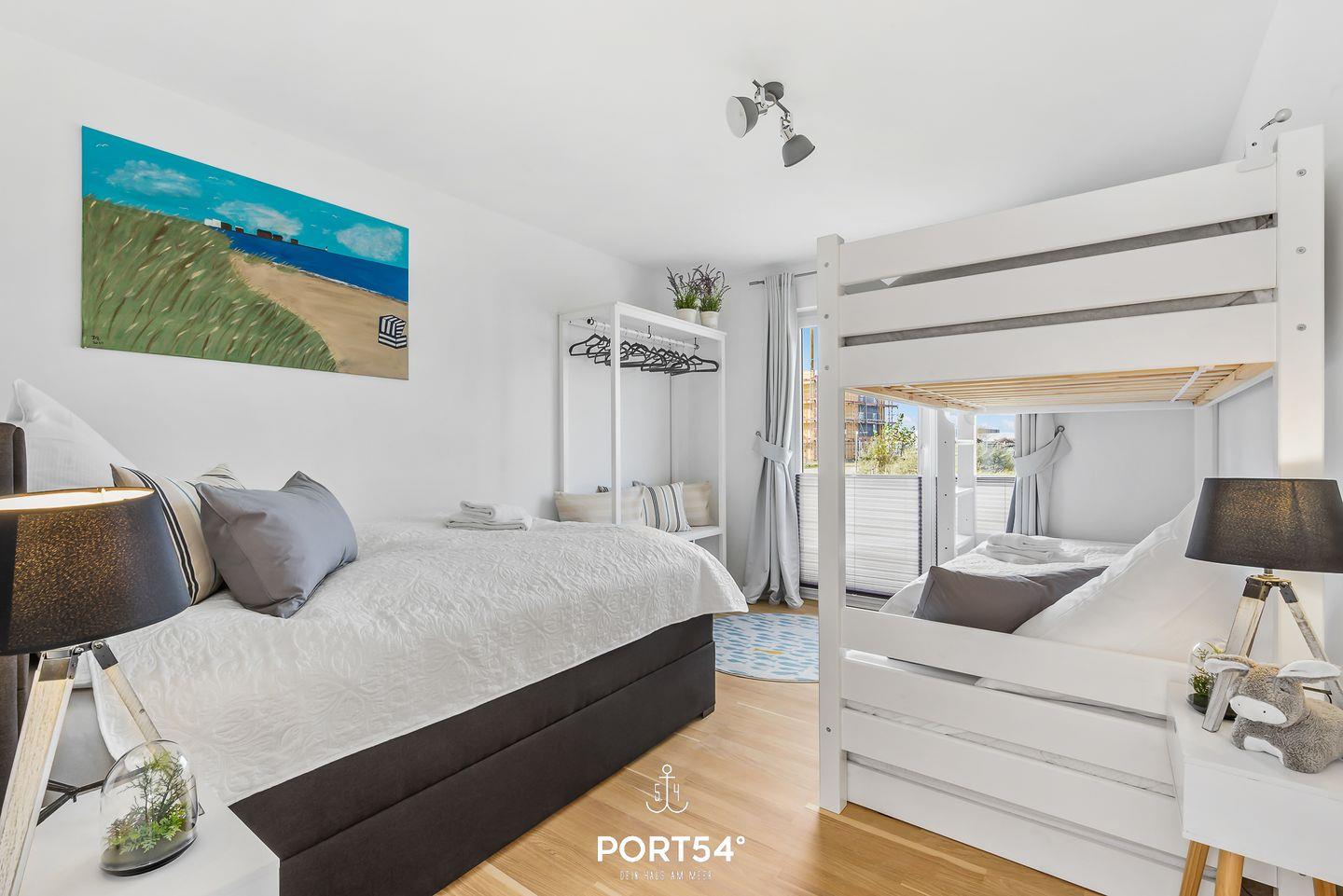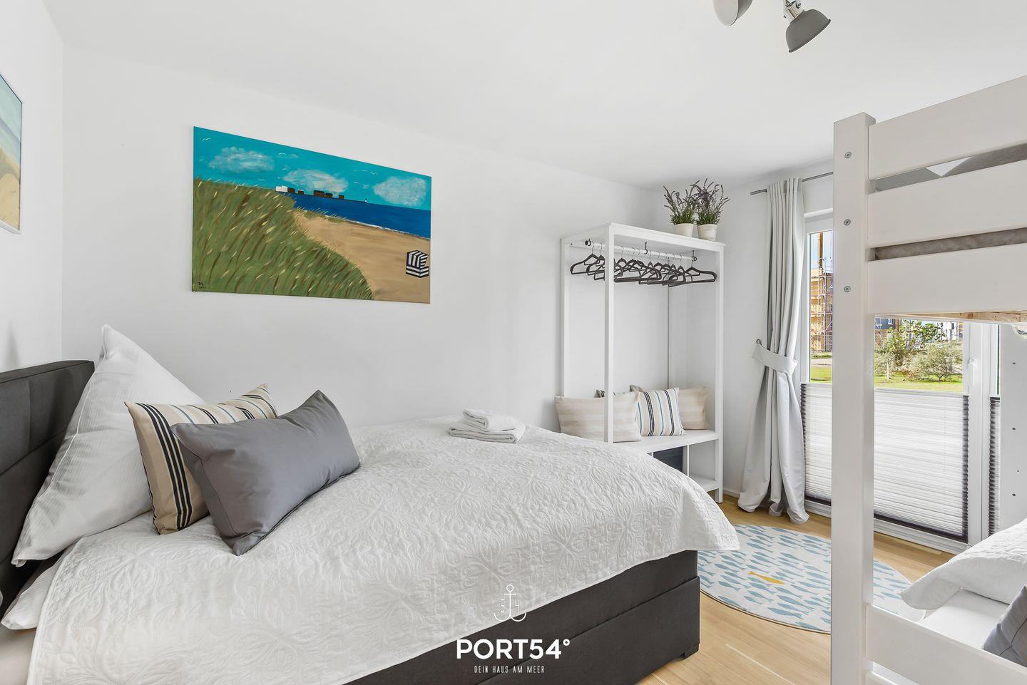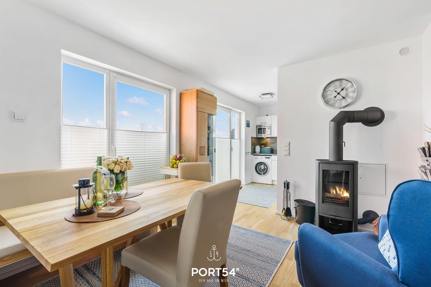 Die "Captainslodge" schafft auf ca. 76m² durch eine helle, moderne und maritime Einrichtung eine absolute Urlaubsatmosphäre. Das Ferienhaus ist aufgeteilt in ein offenes Wohnzimmer mit großem Sofa und Kamin, um gemütliche Abende am wärmenden Feuer ausklingen zu lassen. Dank der Playstation 4 wird es nicht langweilig und Spielspaß ist garantiert! Von dort erreichen Sie ebenfalls die Terrasse, die zu ausgiebigen Sonnenstunden an der frischen Ostseeluft einlädt. Die Wohnküche ist voll ausgestattet und ist zum Wohnraum hin offen, sodass einem geselligen Kochabend nichts im Wege steht. Das Esszimmer verfügt über einen Esstisch für 6 Personen. Im Badezimmer erwartet Sie neben einer ebenerdigen Dusche auch eine Badewanne für die perfekte Erholung während des Urlaubs. Ein Schlafzimmer ist mit einem gemütlichen Doppelboxspringbett eingerichtet und besticht durch bodentiefe Fenster. Das zweite Schlafzimmer eignet sich ideal als Kinderzimmer und bietet neben einem Einzelboxspringbett auch ein zusätzliches Etagenbett. Ein eigener Stellplatz befindet sich vor der Unterkunft. Ihre Fahrräder können sie im abschließbaren Schuppen abstellen.
