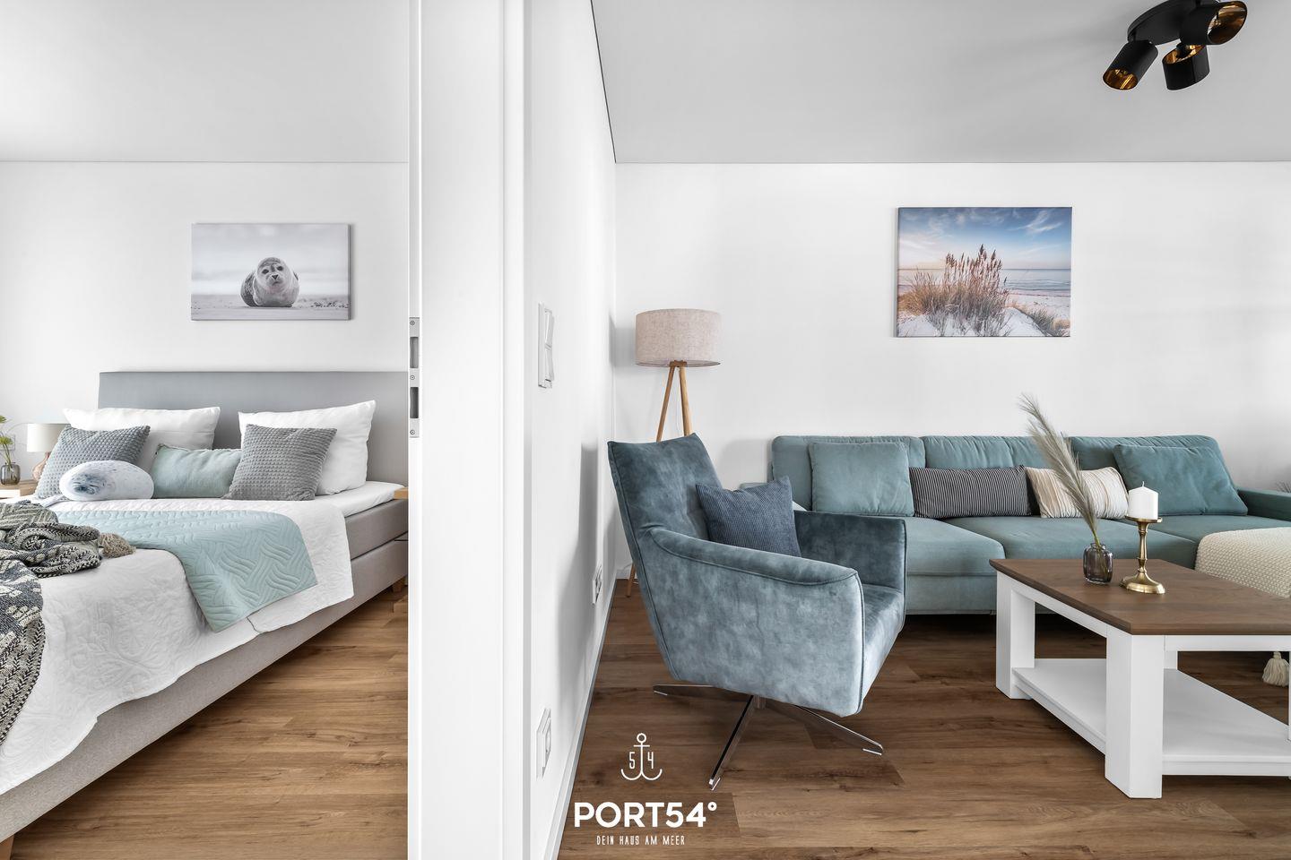 Die Wohnung "Selkie" bietet einen offenen Wohn- und Essbereich mit Kamin & angrenzender voll ausgestatteter Küche. Von hier aus gelangen Sie auf die möblierte Terrasse. Die 2 Schlafzimmer verfügen jeweils über ein Doppelbett. Im Bad erwartet Sie eine Infrarot-Sauna. Es gibt 2 PKW-Stellplätze und ein abschließbarer Fahrradschuppen. Bitte beachten Sie, dass der Aufbau des Ostsee Resort Olpenitz noch nicht abgeschlossen ist und es auch in der Nähe Ihrer Unterkunft zu Bautätigkeiten kommen kann.