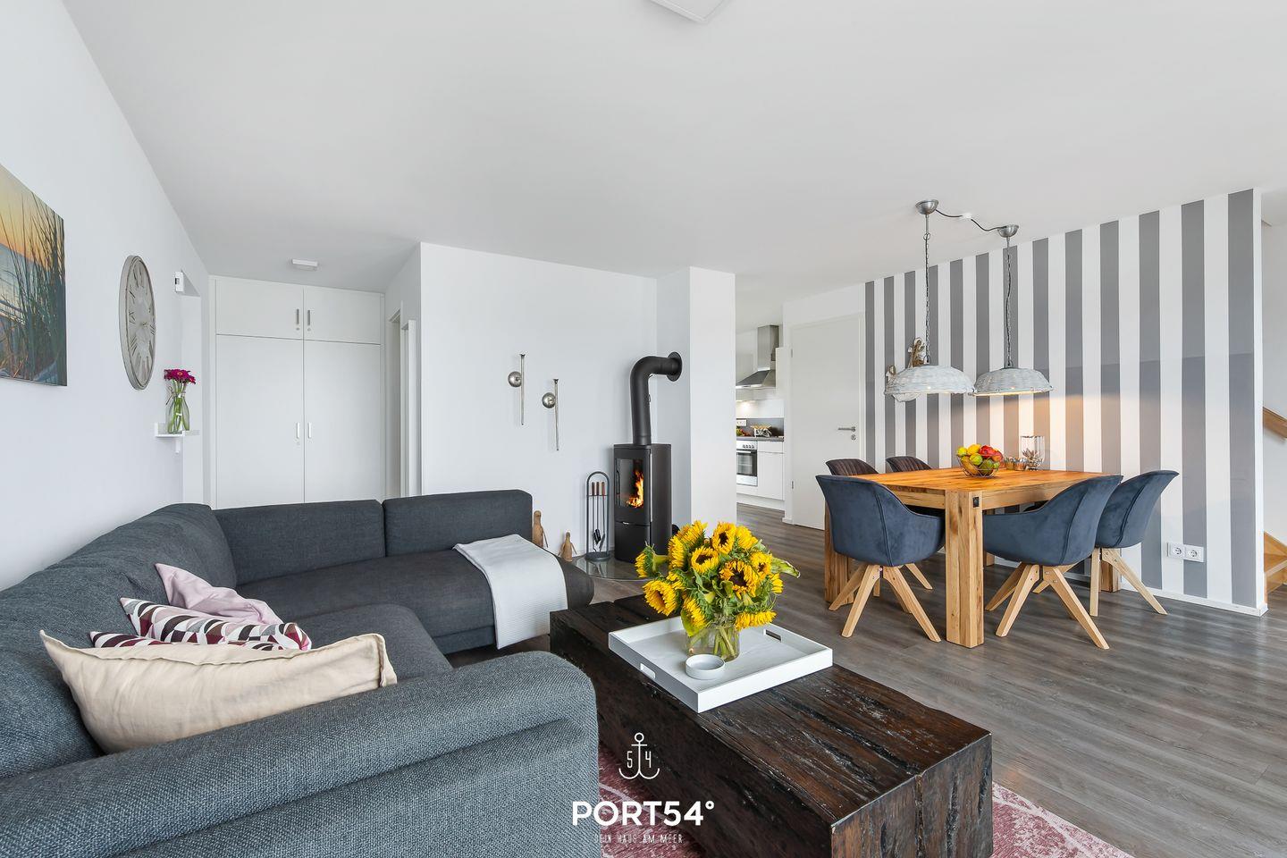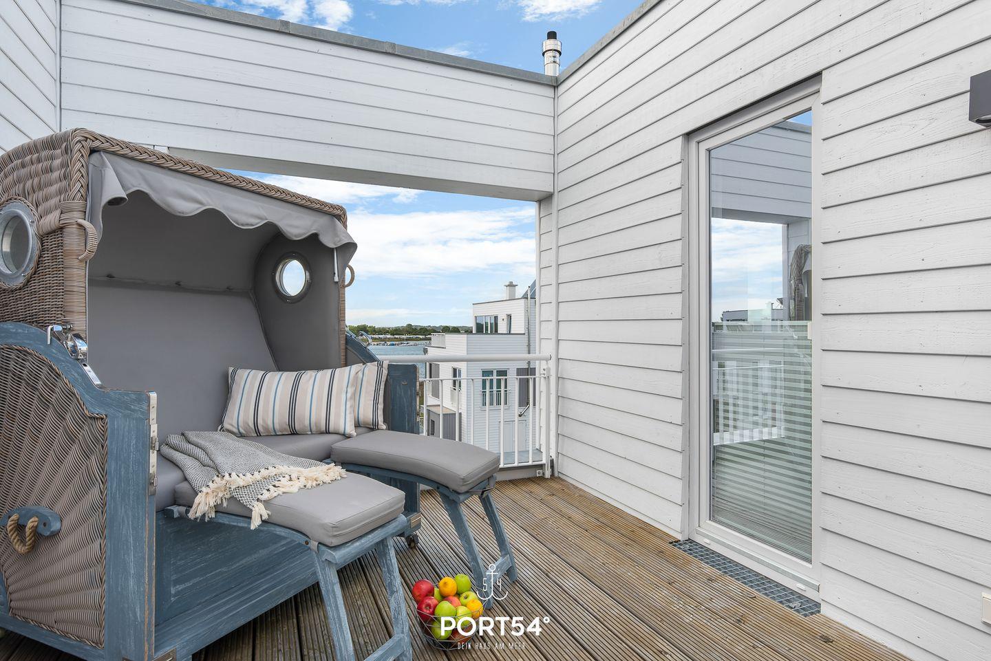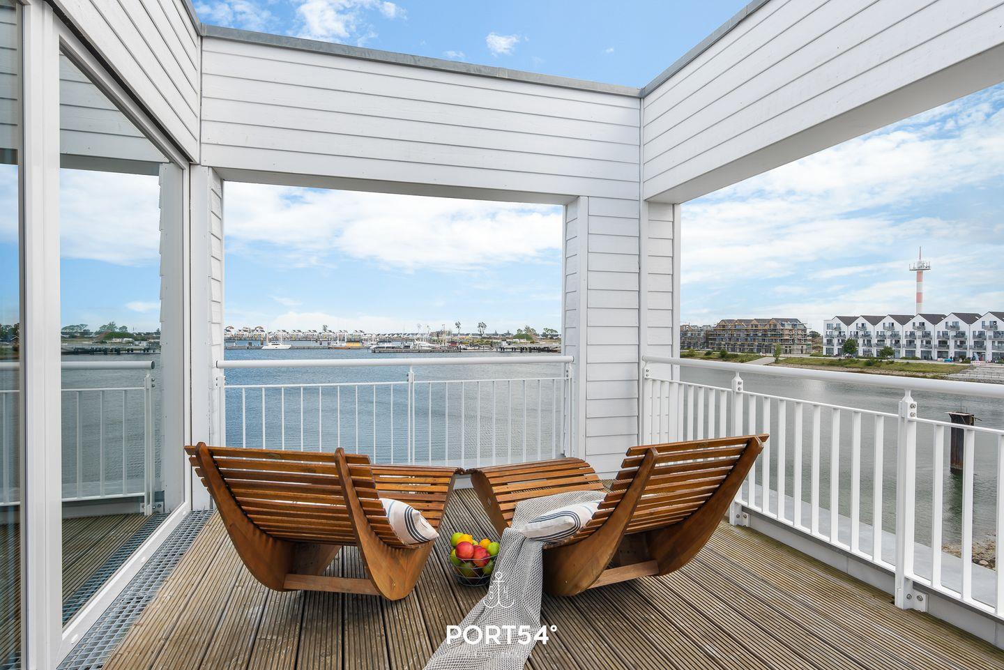 Der Wohn- und Essbereich bietet einen Blick auf den Hafen. Die Küche ist voll ausgestattet. Von den beiden Schlafzimmern haben Sie Wasserblick. Highlight ist das Studio, das mit einer Schlafcouch ausgestattet ist. Vom Studio aus erreichen Sie die Dachterrasse & die Sauna mit Dusche. Die Whirlwanne im Badezimmer verspricht Entspannung pur.