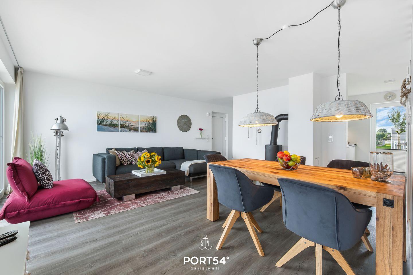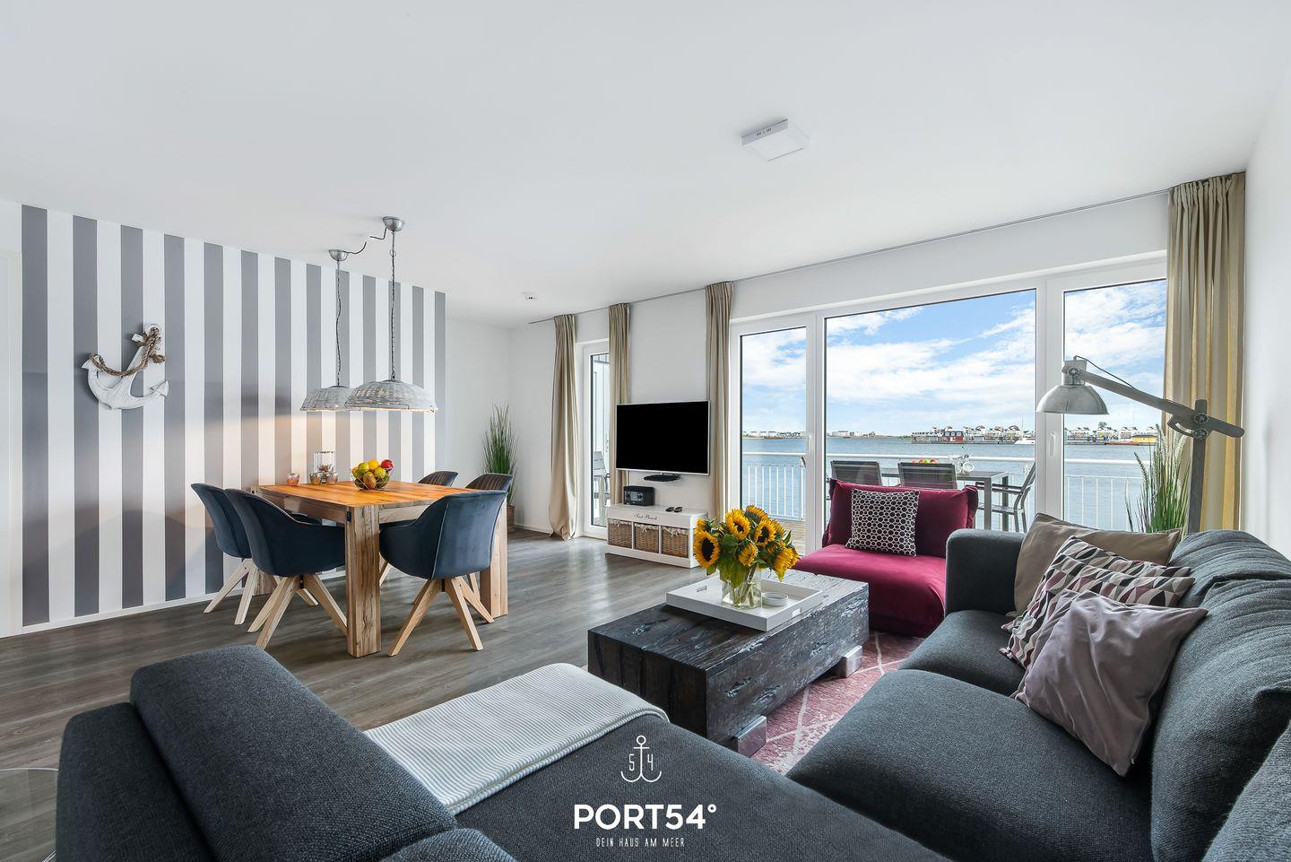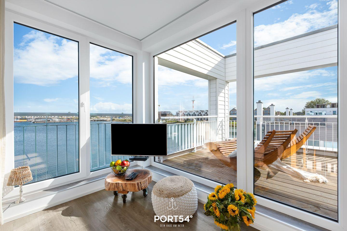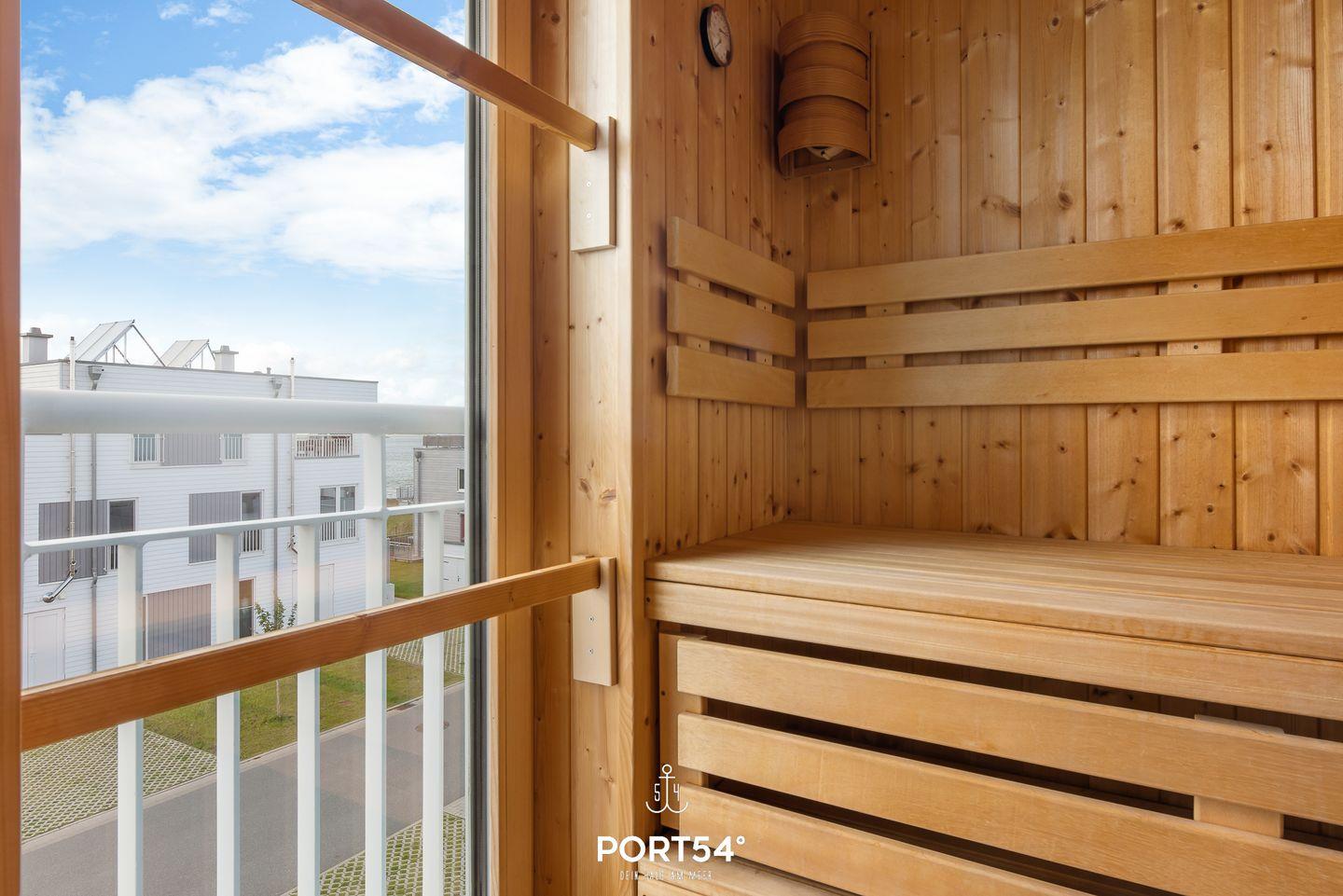 Der Wohn- und Essbereich bietet einen Blick auf den Hafen. Die Küche ist voll ausgestattet. Von den beiden Schlafzimmern haben Sie Wasserblick. Highlight ist das Studio, das mit einer Schlafcouch ausgestattet ist. Vom Studio aus erreichen Sie die Dachterrasse & die Sauna mit Dusche. Die Whirlwanne im Badezimmer verspricht Entspannung pur.