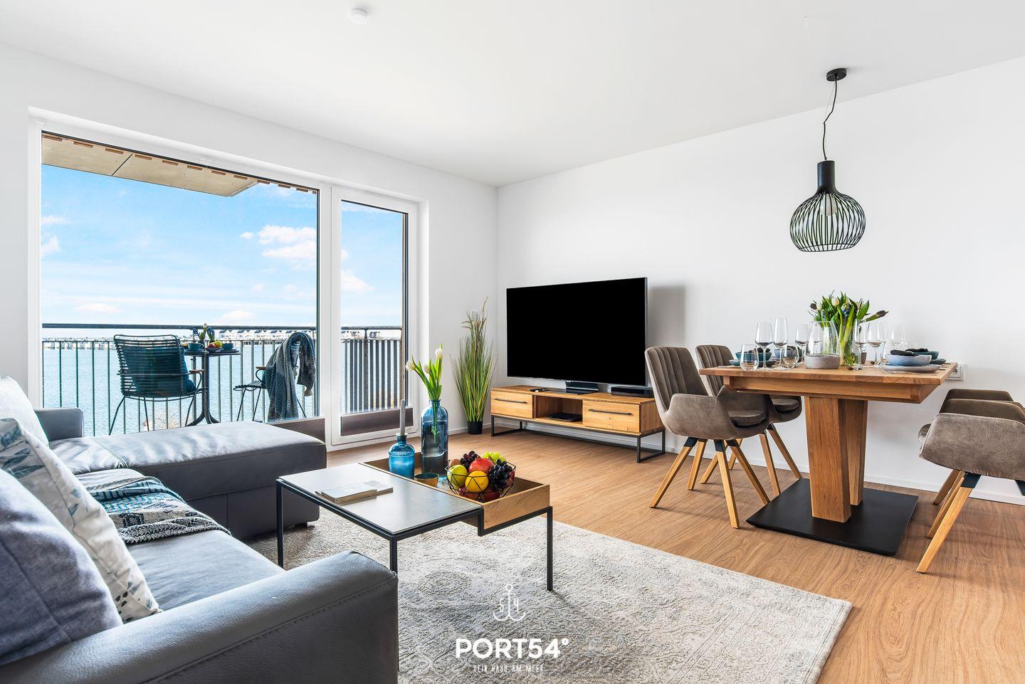 In der modern und hochwertig ausgestatteten Ferienwohnung "Hafenflair" genießen Sie Urlaub der Extraklasse auf rund 54m². Die Ferienwohnung bietet Ihnen ein Schlafzimmer mit Doppelbett, einen offenen Wohn-/Essbereich mit einer Küche, einen TV und ein gemütliches Sofa. Das Duschbad ist hochwertig & modern ausgestattet. Das Highlight ist der Balkon mit Wasserblick, auf dem Sie die Sonnenaufgänge genießen können. Vor dem Haus steht Ihnen ein kostenfreier Parkplatz zur Verfügung.