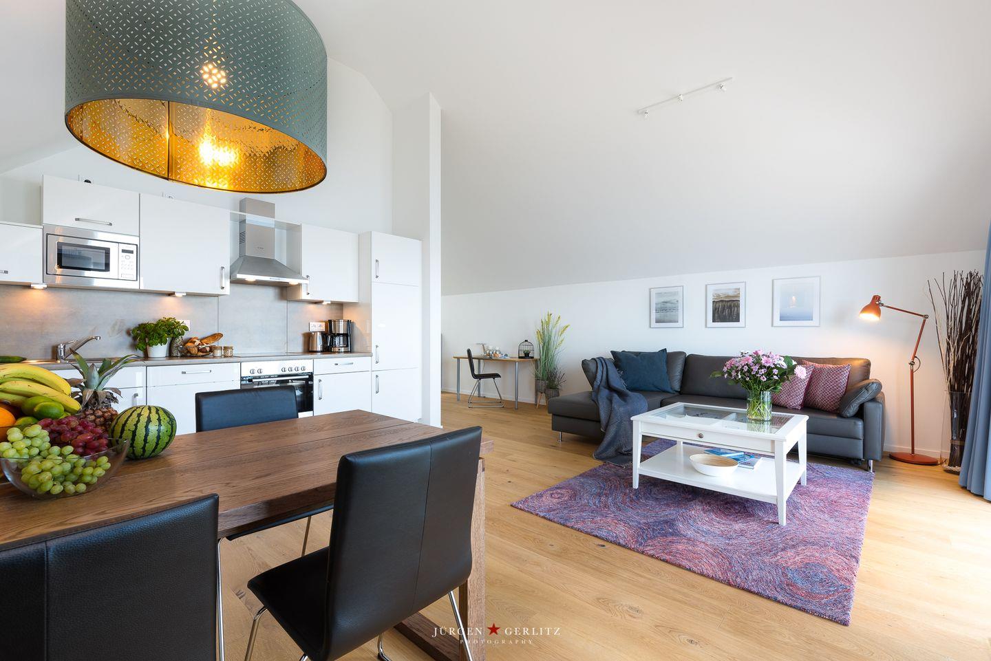 Diese exklusive Ferienwohnung "Mehrblick" liegt nur wenige Meter vom Wasser entfernt. Mit knapp 66m² bietet sie ein Schlafzimmer mit Doppelbett, einen offenen Wohn-/Essbereich mit einer voll ausgestatteten Küche, einen TV, sowie ein Schlafsofa. Das Duschbad ist hochwertig und modern ausgestattet. Das Highlight der Wohnung ist der schöne Balkon mit Wasserblick. Vor dem Haus steht Ihnen ein eigener, kostenfreier Parkplatz zur Verfügung.